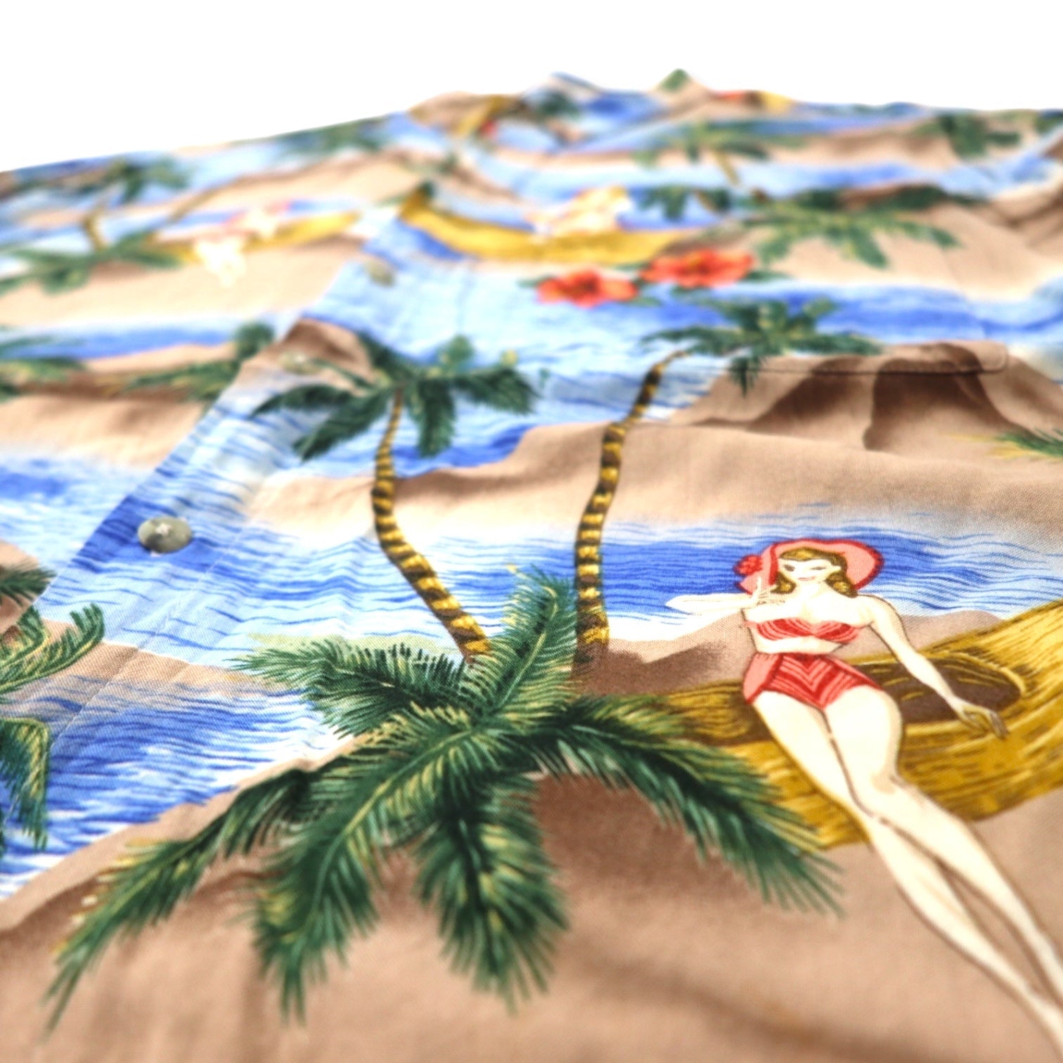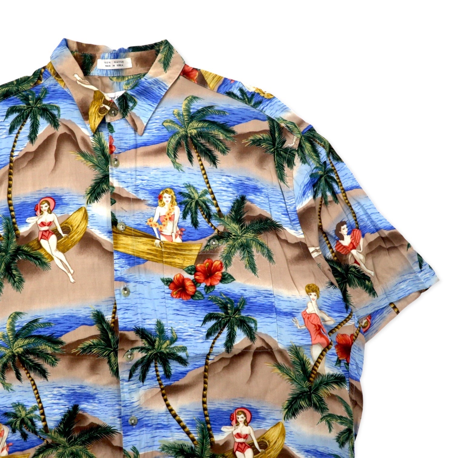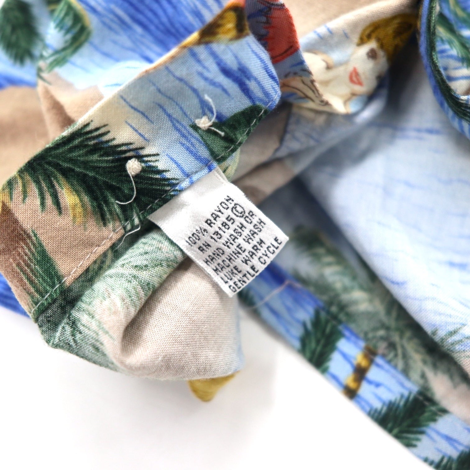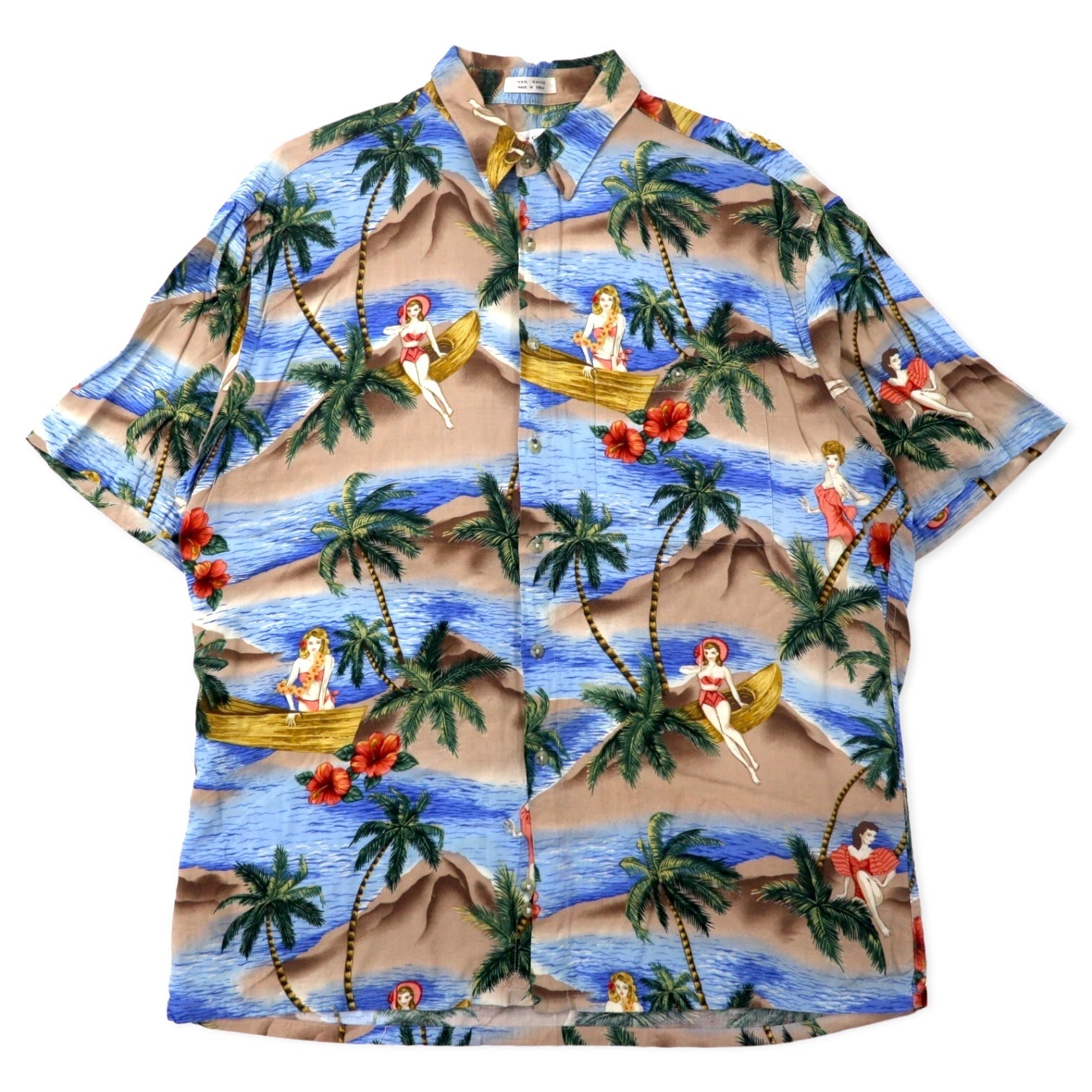 pierre cardin 90年代 アロハシャツ L ブルー レーヨン 総柄 ビーチ ピンナップガール