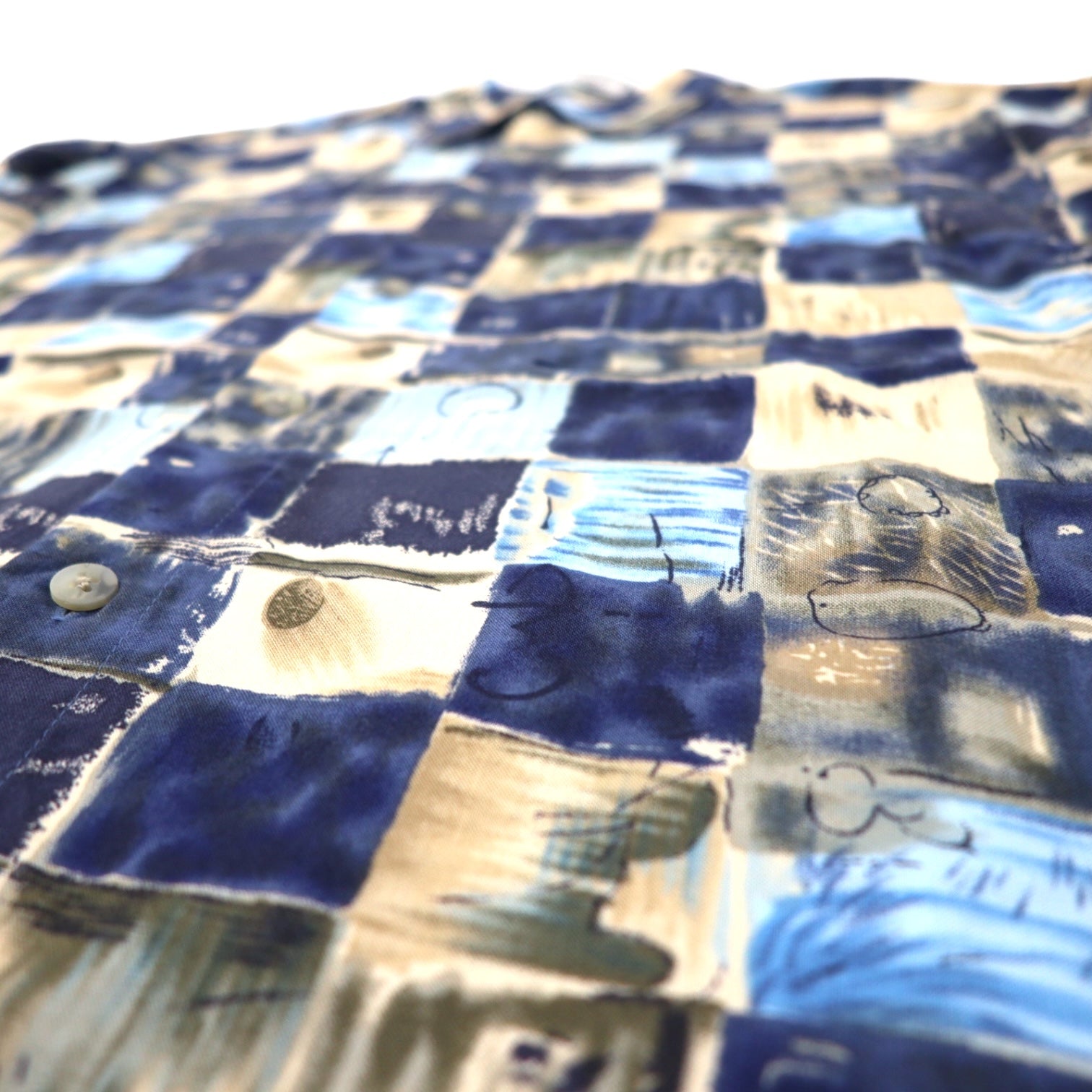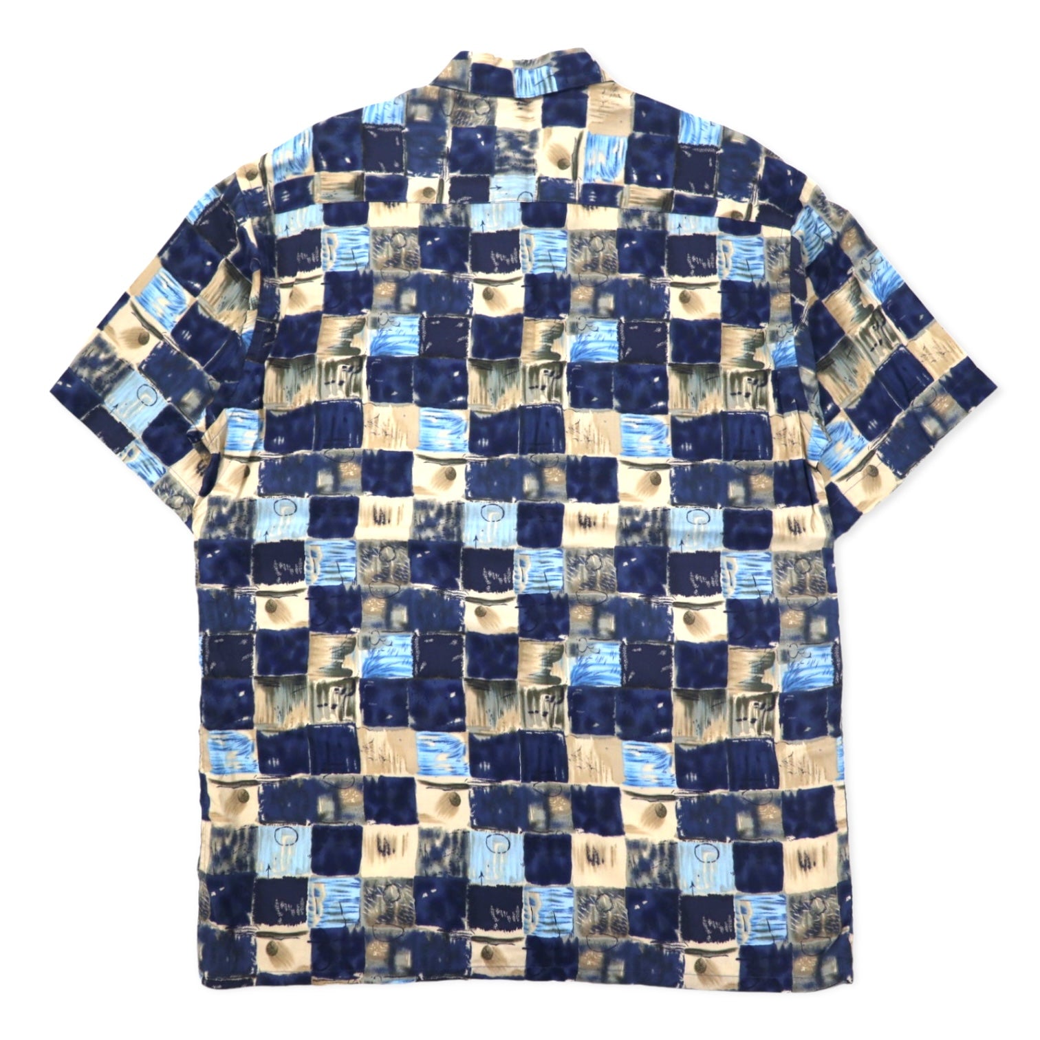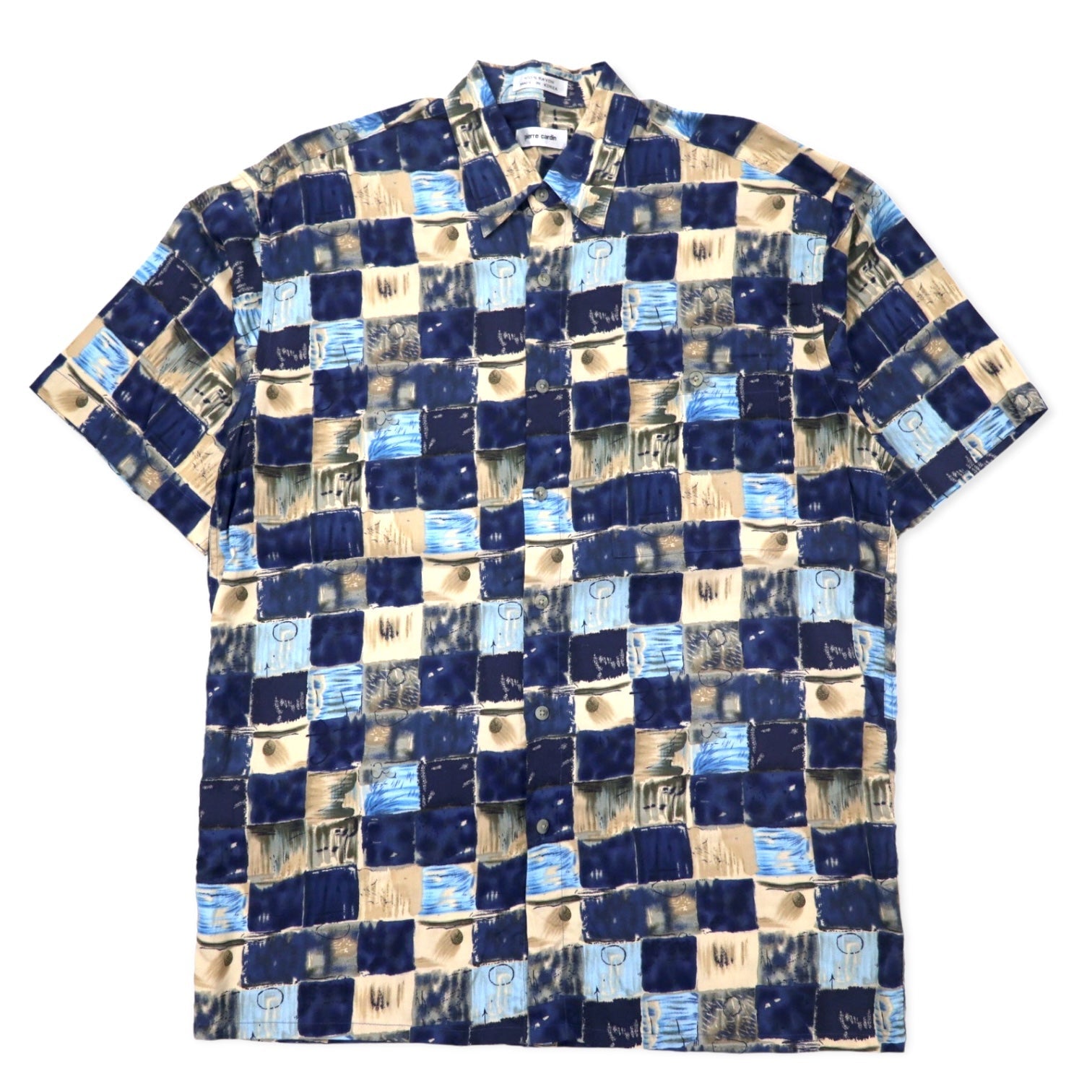 pierre cardin 90年代 アロハシャツ XL ネイビー レーヨン 総柄 レトロ