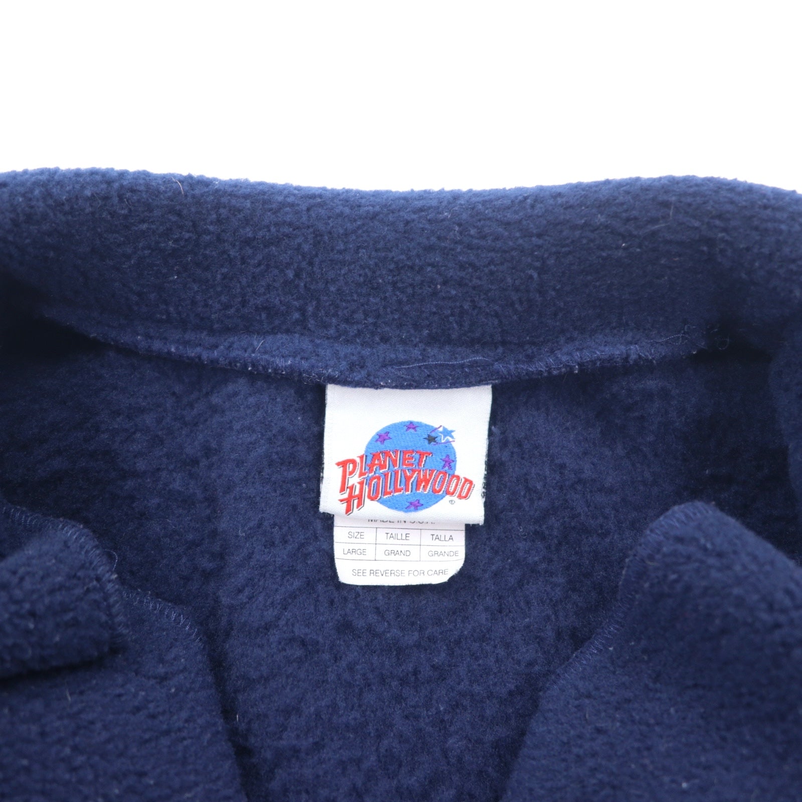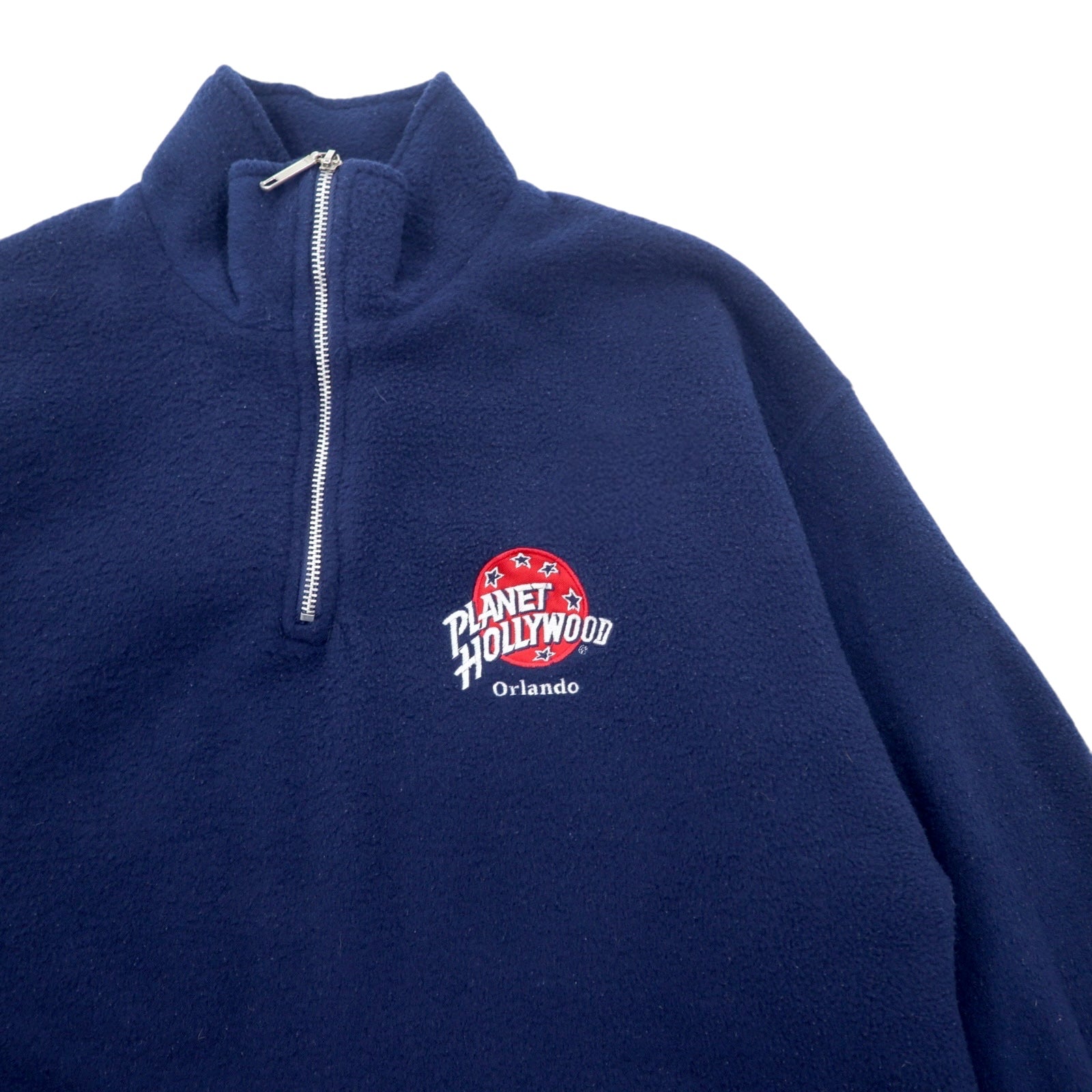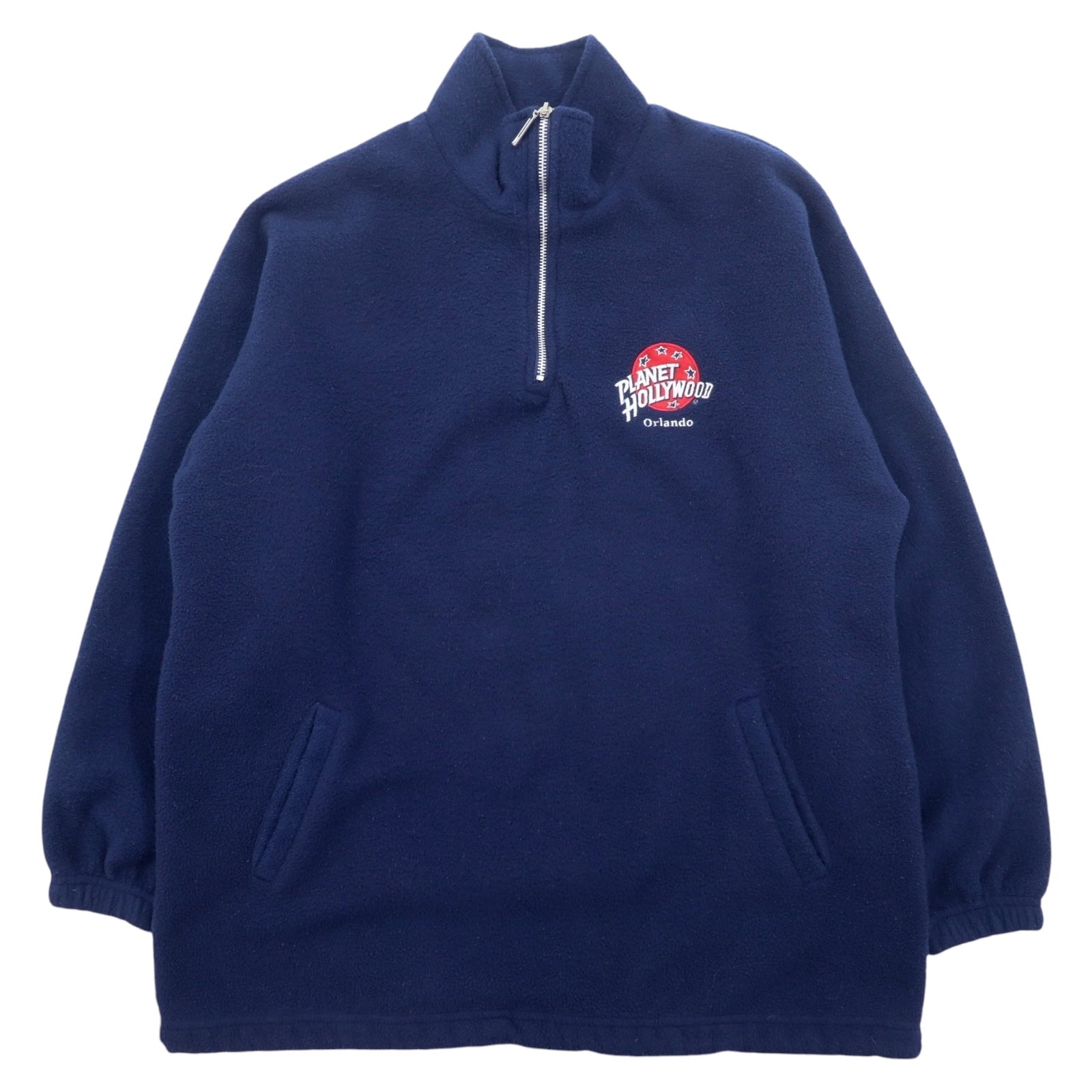 PLANET HOLLYWOOD 90年代 USA製 ハーフジップ フリースジャケット L ネイビー ORLANDO ドローコード