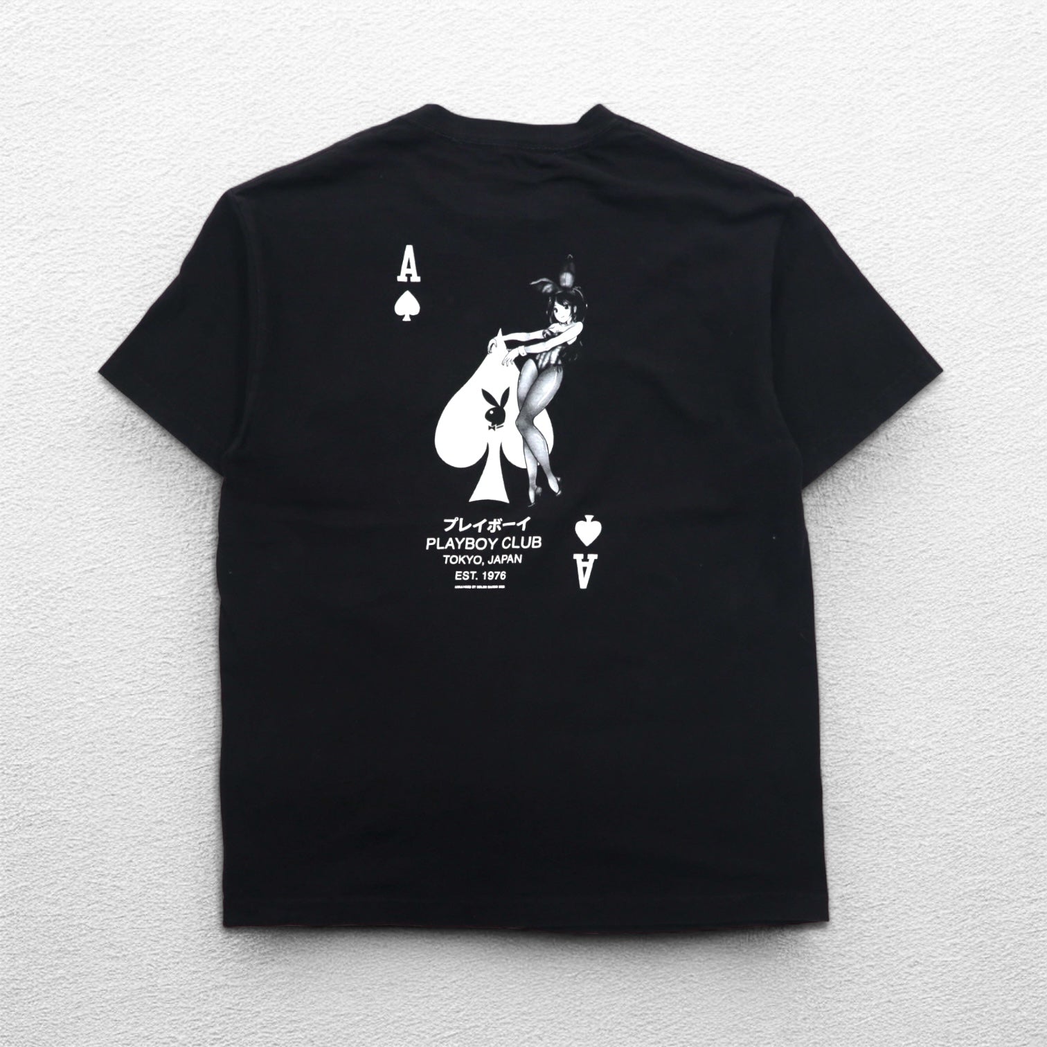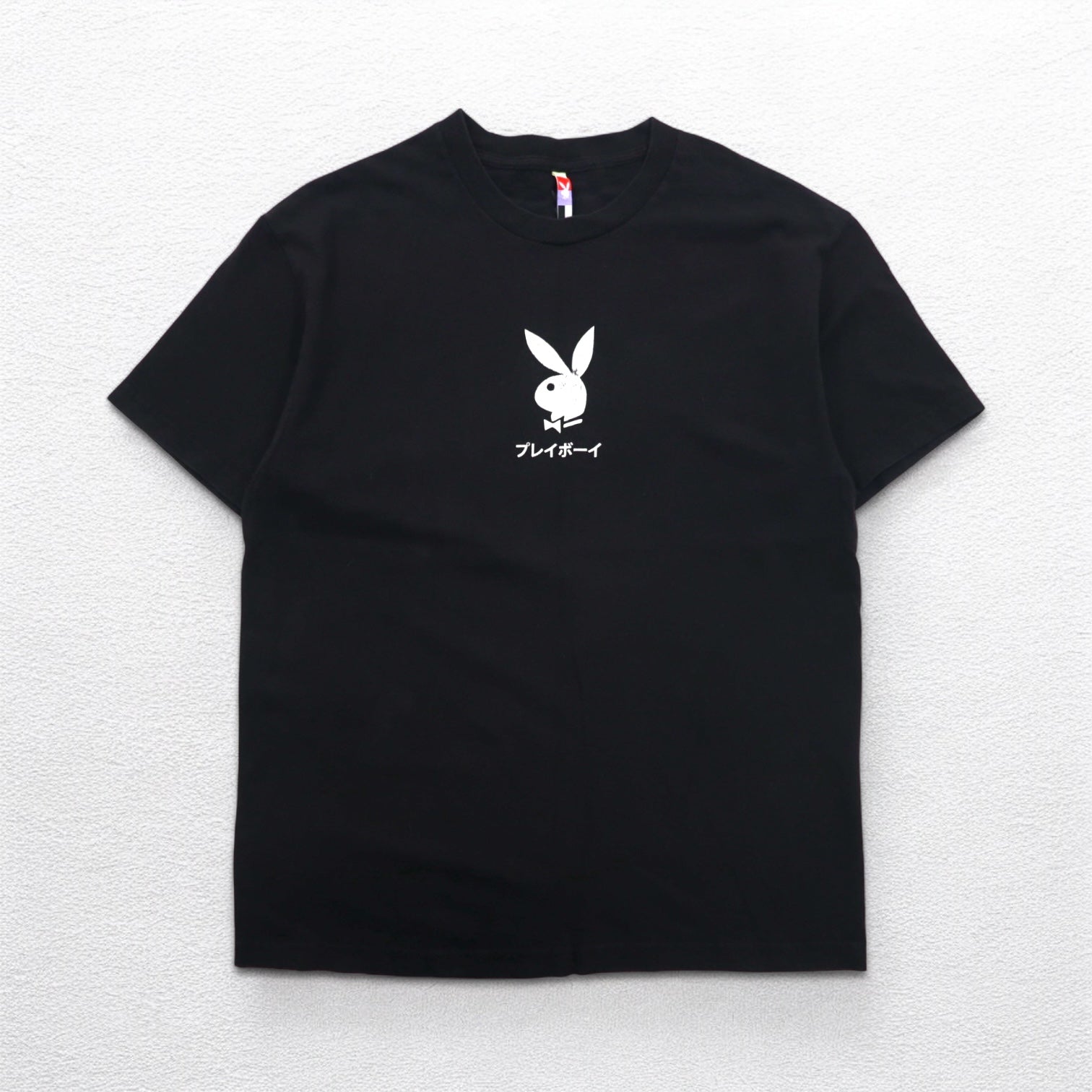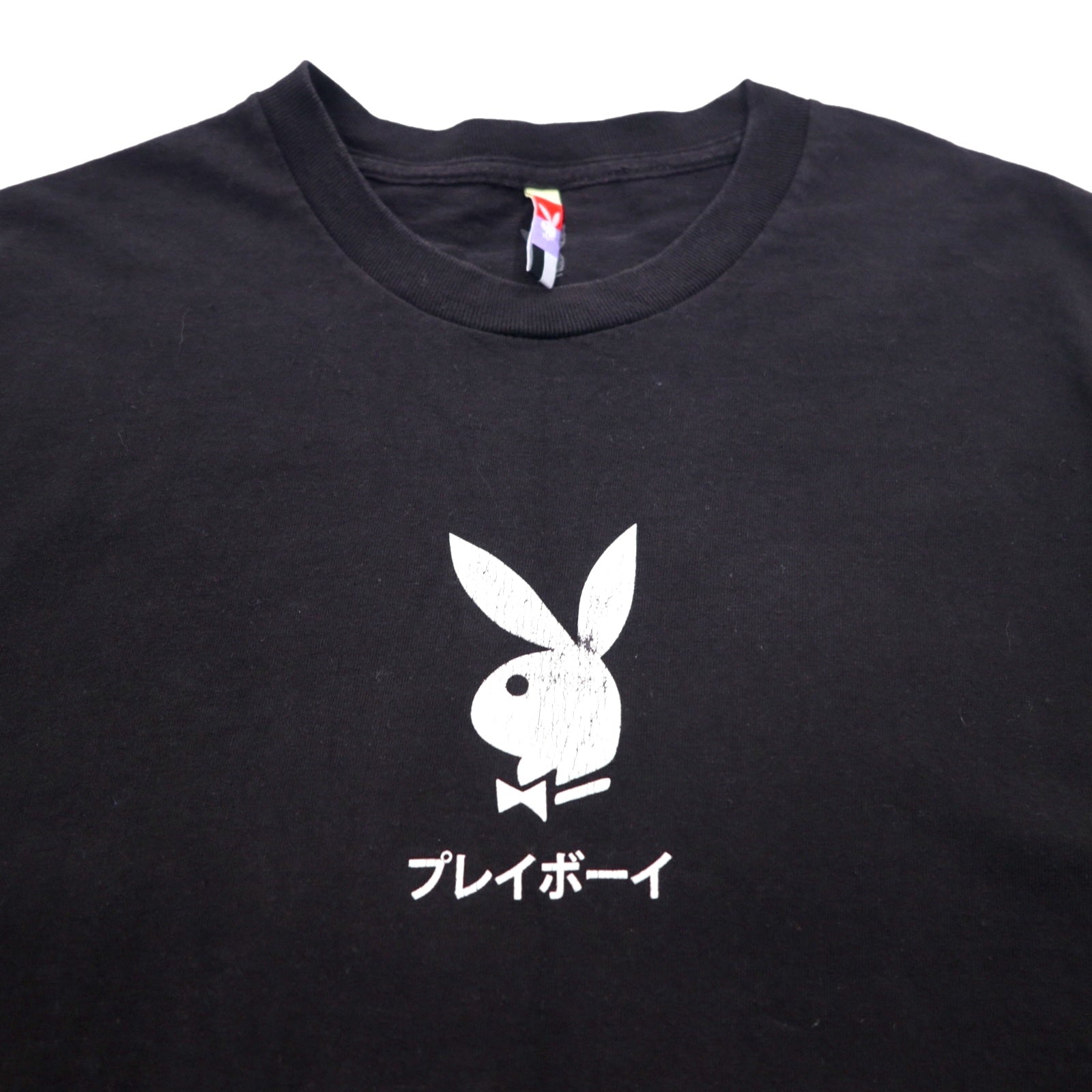PLAYBOY 日本語 カタカナ TOKYO JAPAN アニメ Tシャツ L ブラック コットン バックプリント
