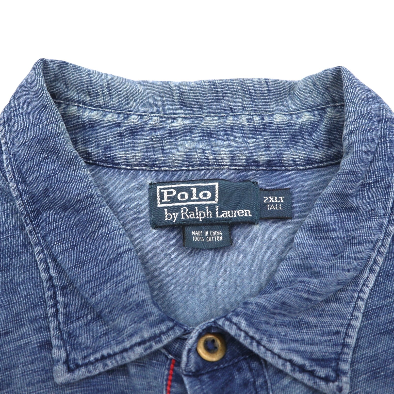 Polo by Ralph Lauren インディゴ ポロシャツ 2XLT ブルー 胸ポケット コンチョボタン