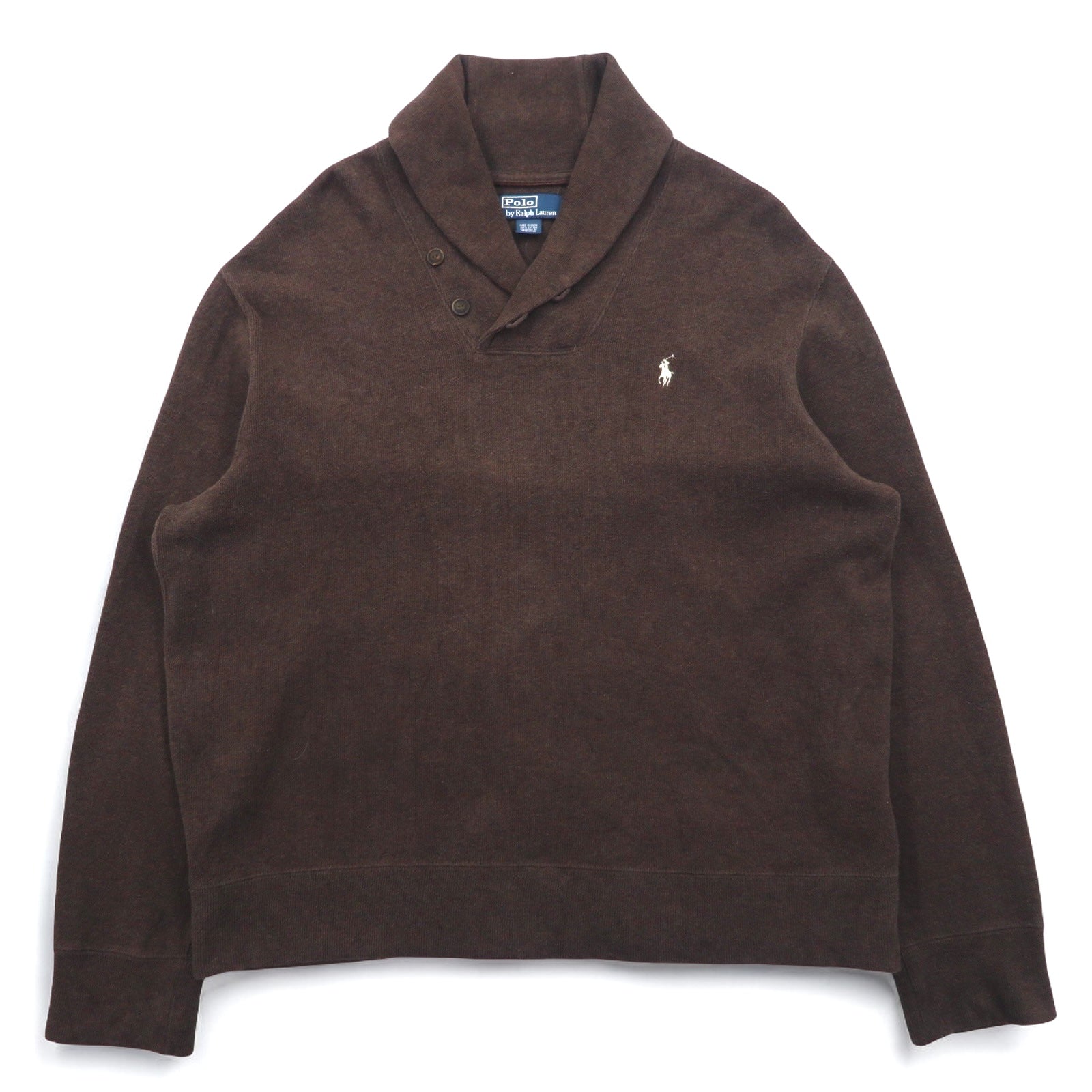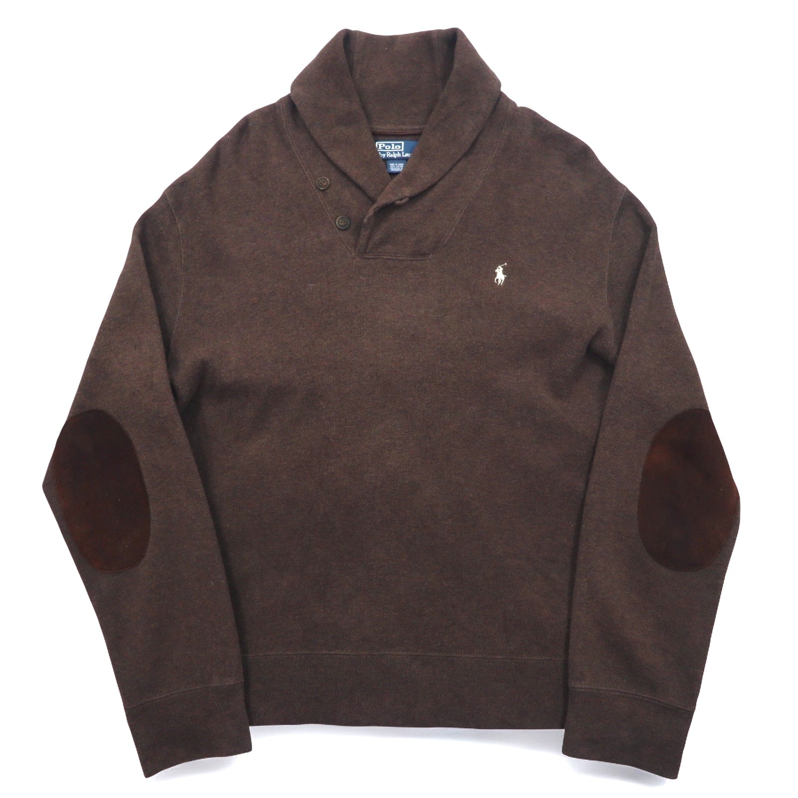 Polo by Ralph Lauren ショールカラー エルボーパッチ ニット XL ブラウン スモールポニー刺繍
