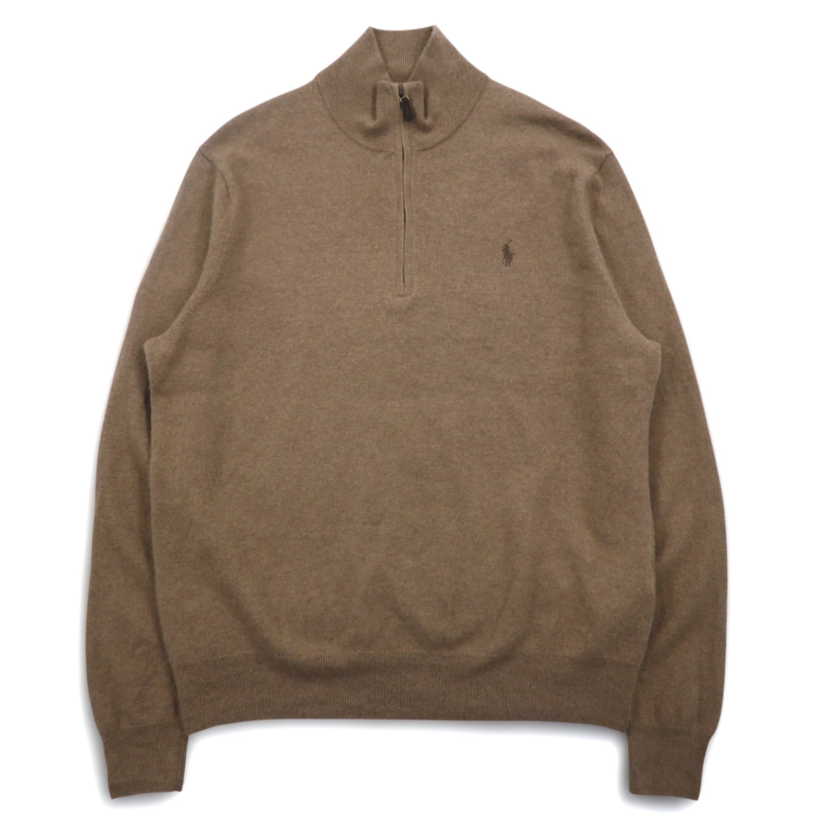 Polo by Ralph Lauren ハーフジップ ラムウール ニット セーター XL ベージュ 羊毛 スモールポニー刺繍