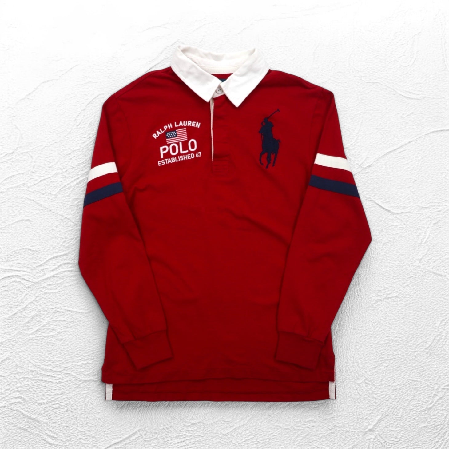Polo by Ralph Lauren ビッグポニー刺繍 ラガーシャツ S レッド コットン 星条旗