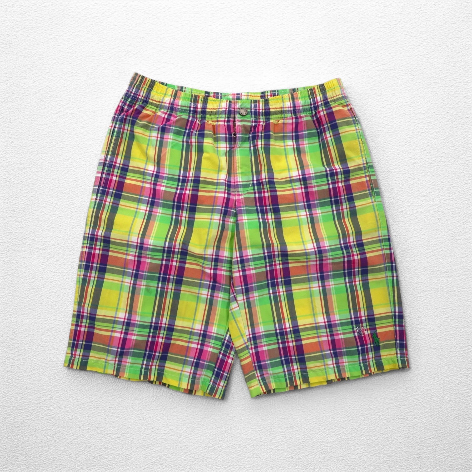 Polo by Ralph Lauren 水陸両用 マドラスチェック ショートパンツ ハーフパンツ L イエロー スモールポニー刺繍