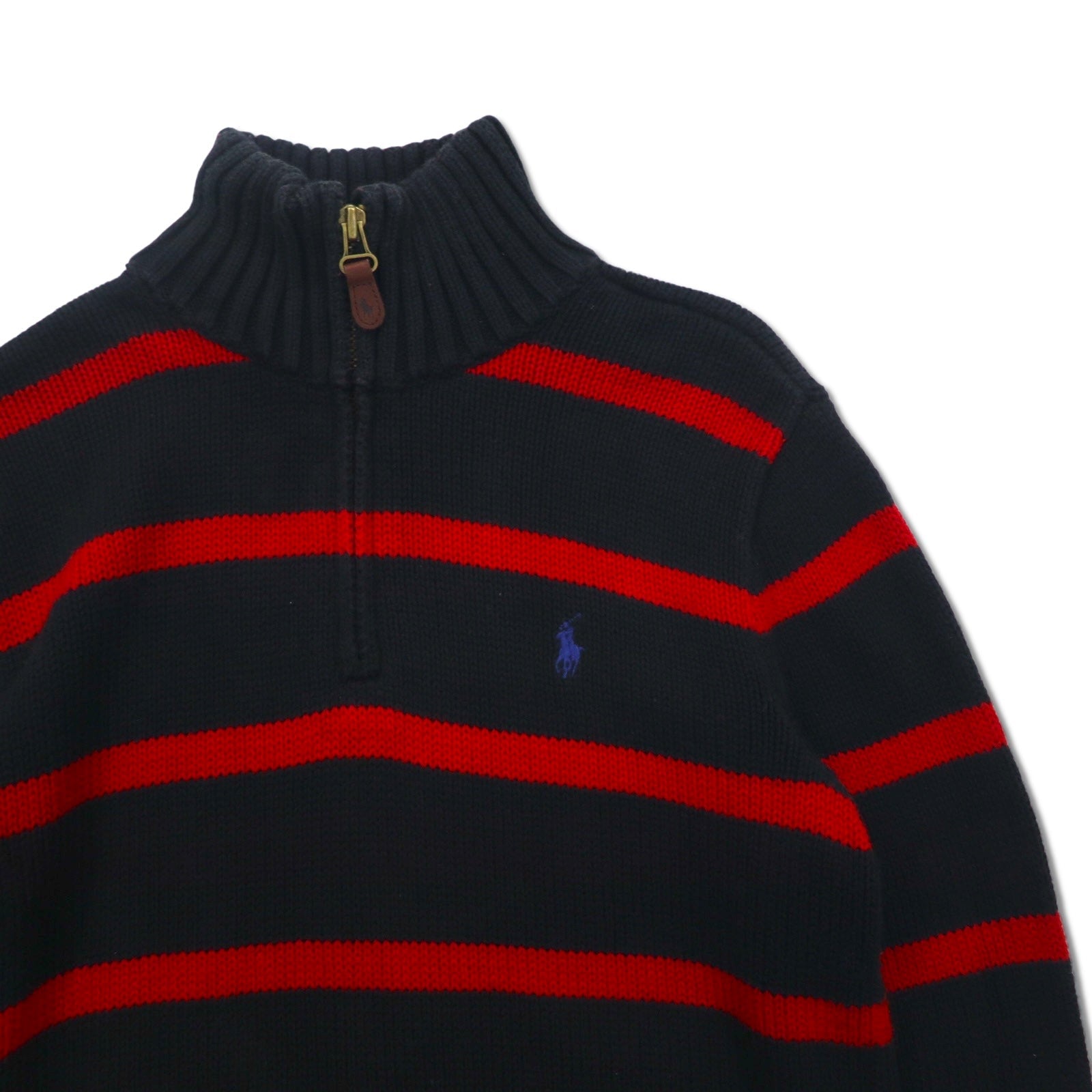 Polo by Ralph Lauren 90年代 ハーフジップ コットンニット セーター M ボーダー ブラック レッド