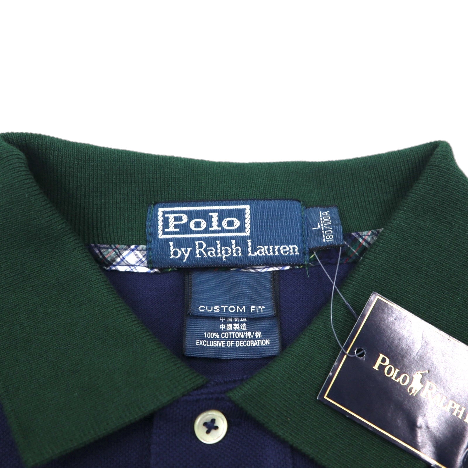 Polo by Ralph Lauren 90年代 ビッグポニー刺繍 ポロシャツ L ネイビー コットン 鹿の子 CUSTOM FIT CLASSICS 未使用品