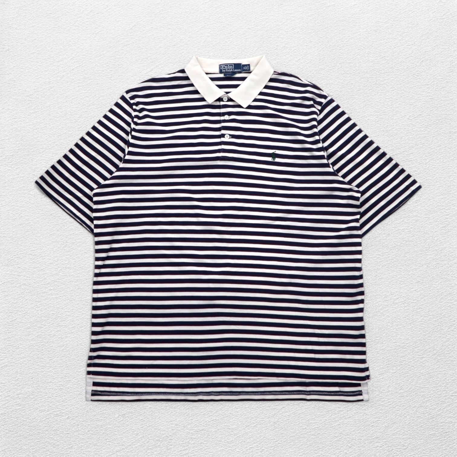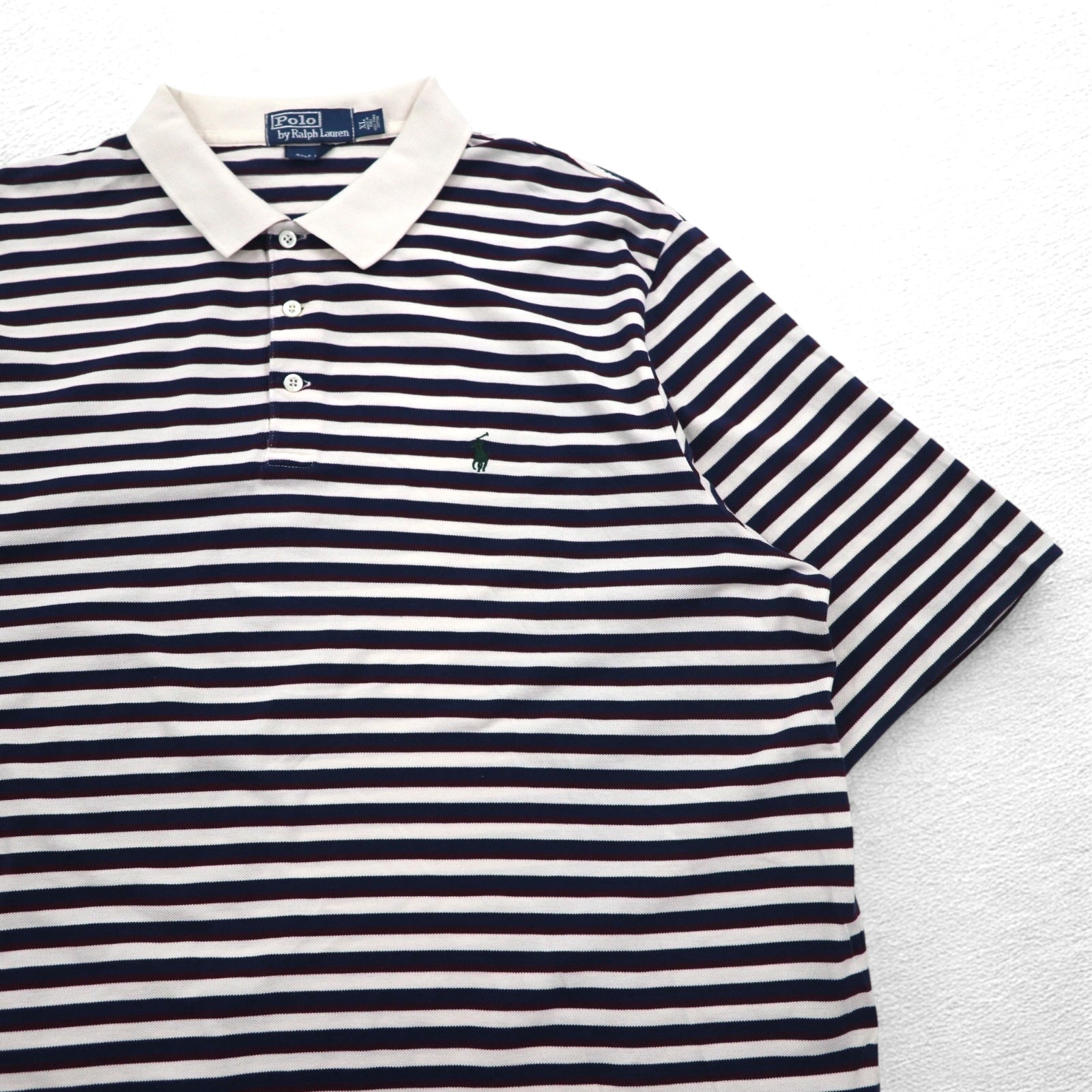 Polo by Ralph Lauren 90年代 ピマコットン ボーダー ポロシャツ XL ホワイト ネイビー スモールポニー刺繍