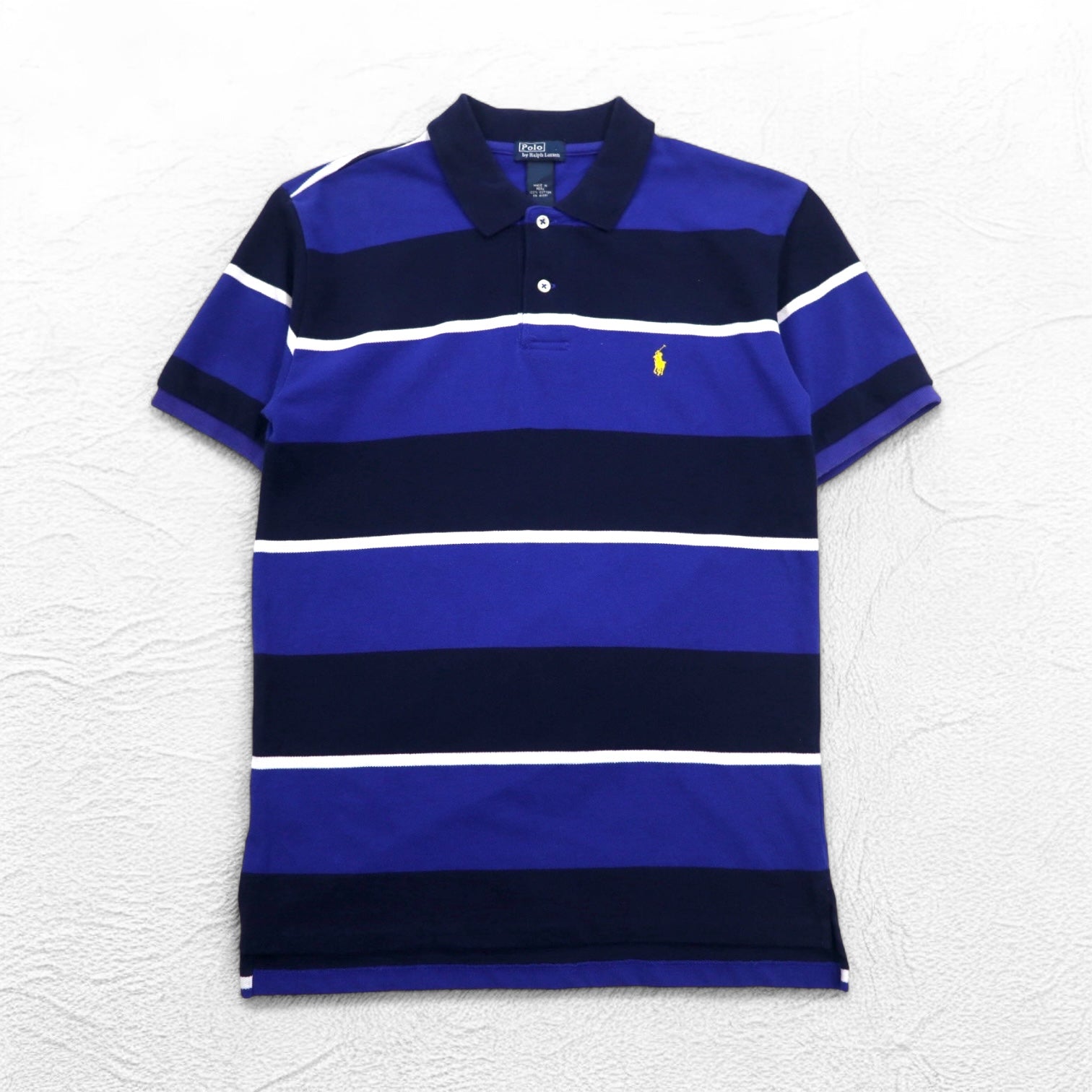 Polo by Ralph Lauren 90年代 ボーダー ポロシャツ M ネイビー ブルー 鹿の子 スモールポニー刺繍 ペルー製