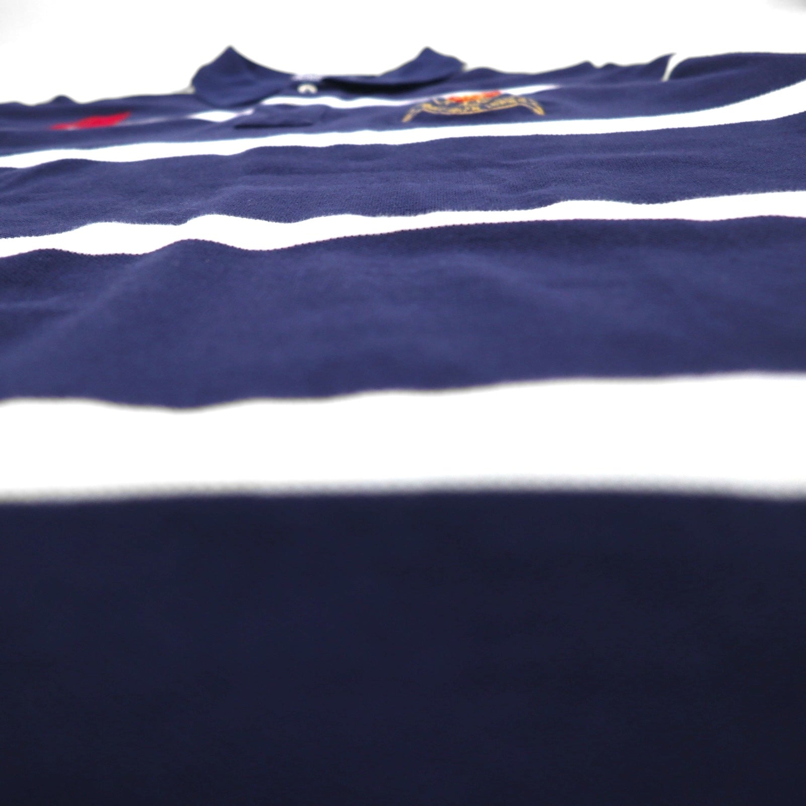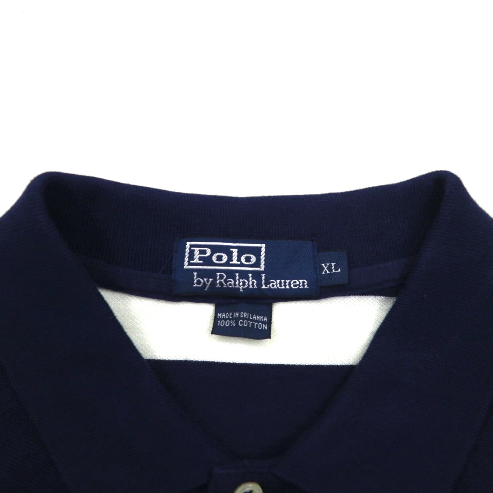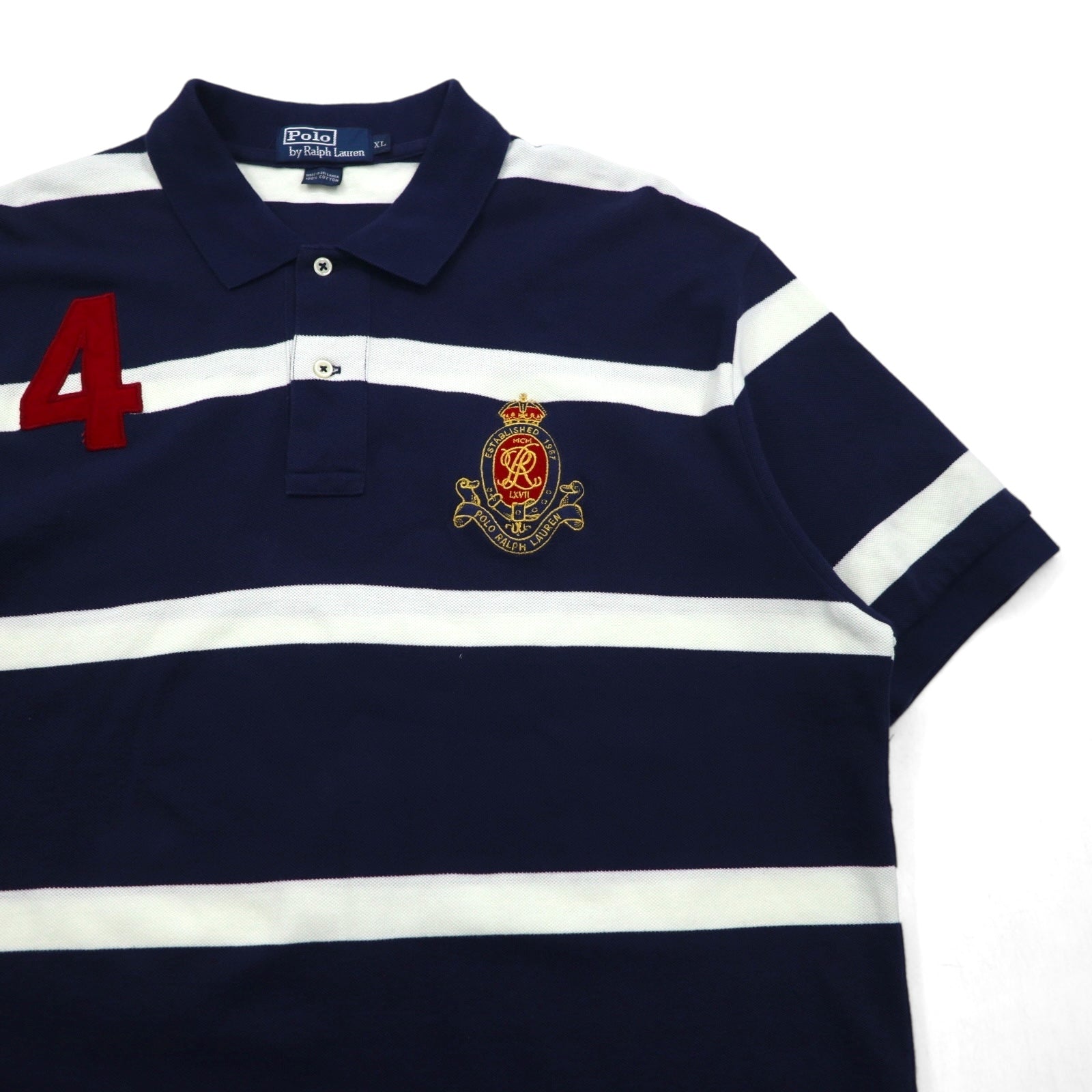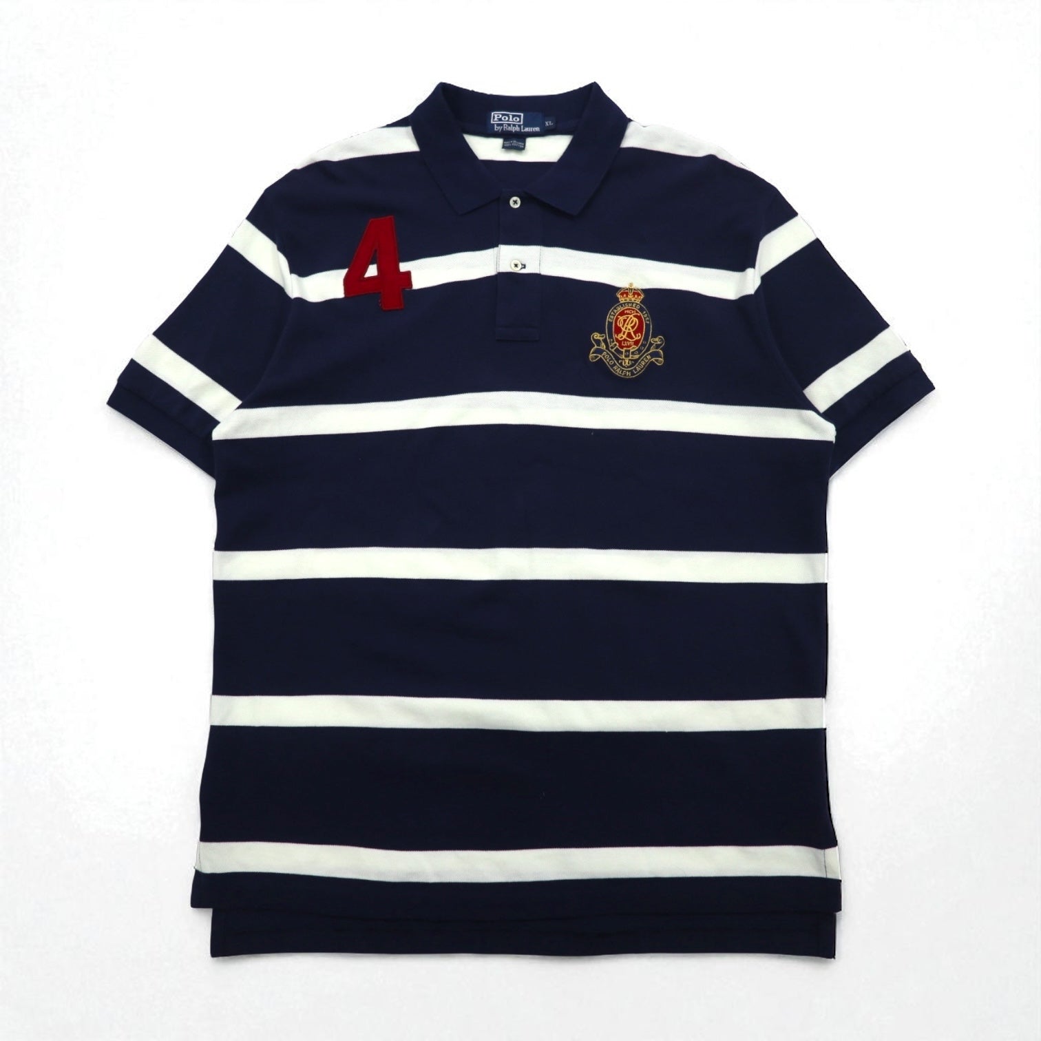 Polo by Ralph Lauren 90年代 ボーダー ポロシャツ XL ネイビー コットン 鹿の子 エンブレムロゴ刺繍