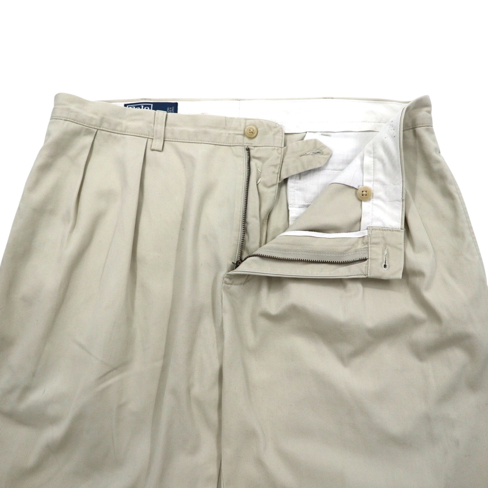 Polo by Ralph Lauren 90年代 ポロチノ タック ワイド チノパンツ 36 ベージュ コットン スモールポニー 刺繍 スリランカ製