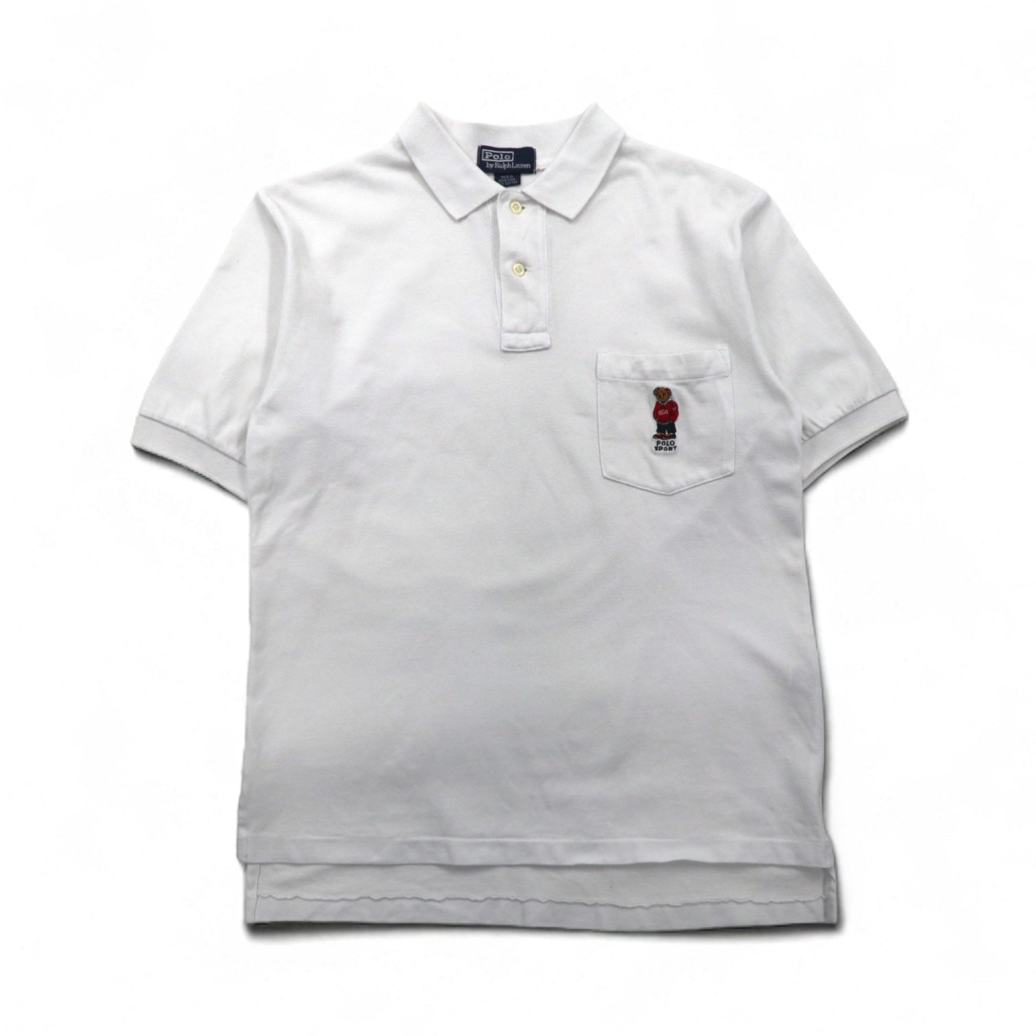 Polo by Ralph Lauren 90年代 ポロベア 胸ポケット ポロシャツ L ホワイト 鹿の子 ワンポイント刺繍