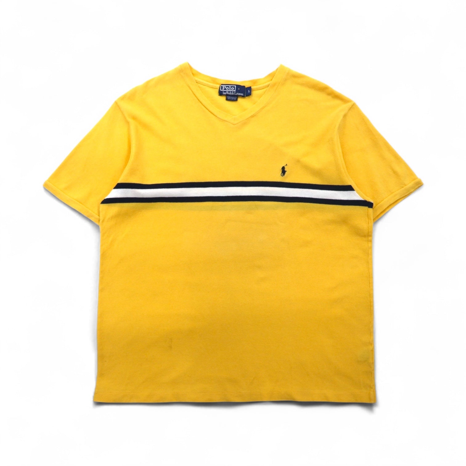 Polo by Ralph Lauren 90年代 ラインデザイン Vネック 鹿の子 Tシャツ L イエロー コットン スモールポニー刺繍