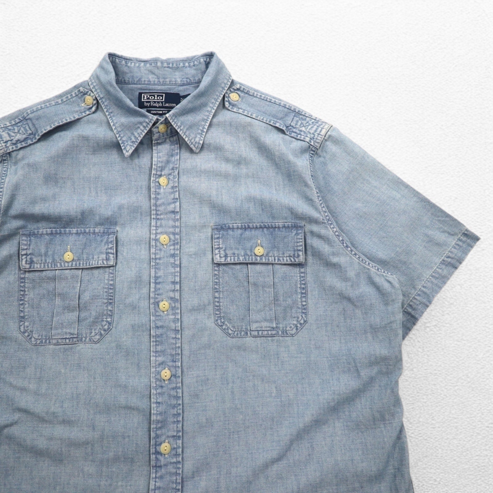 Polo by Ralph Lauren 90年代 半袖 デニムシャツ XL ブルー コットン 胸ポケット