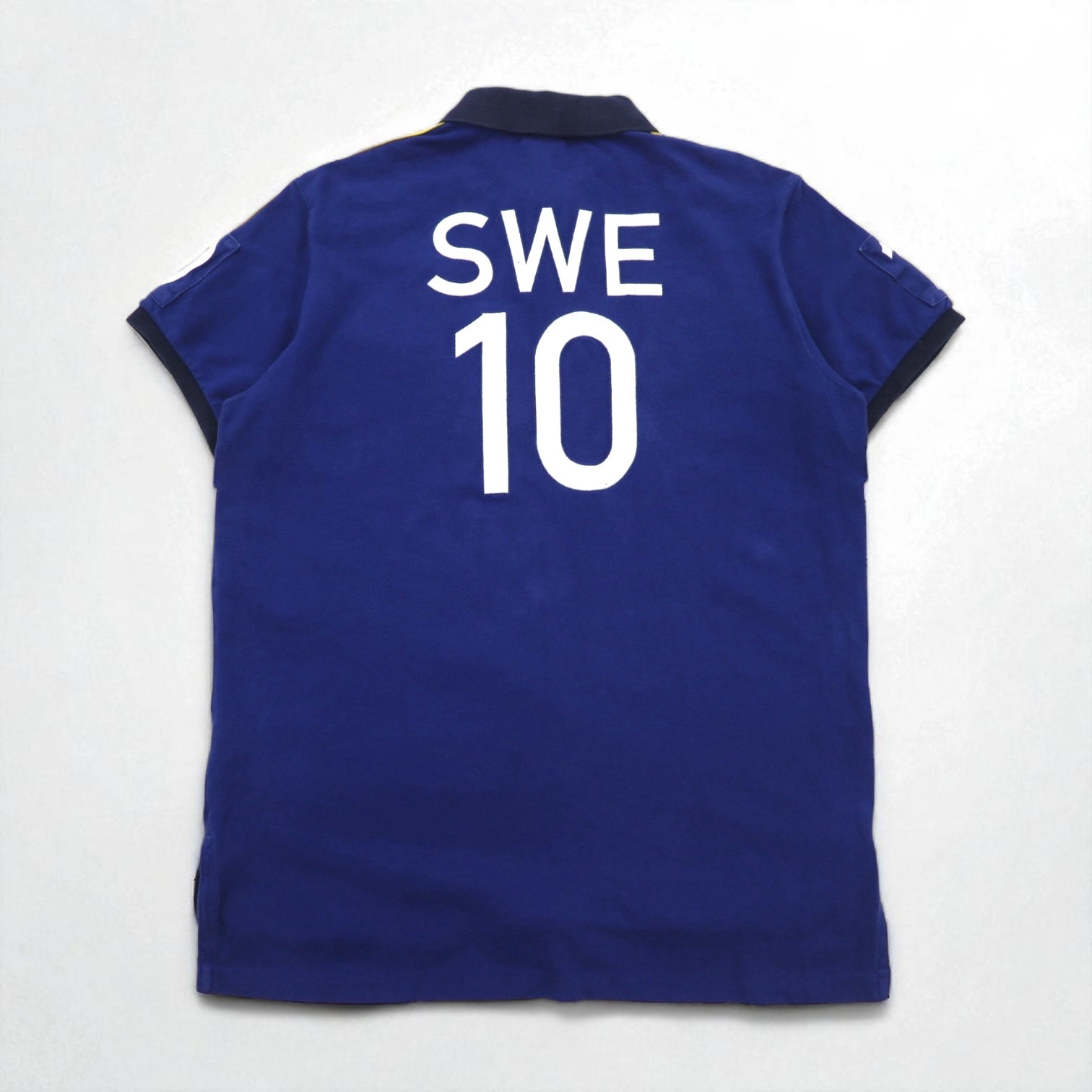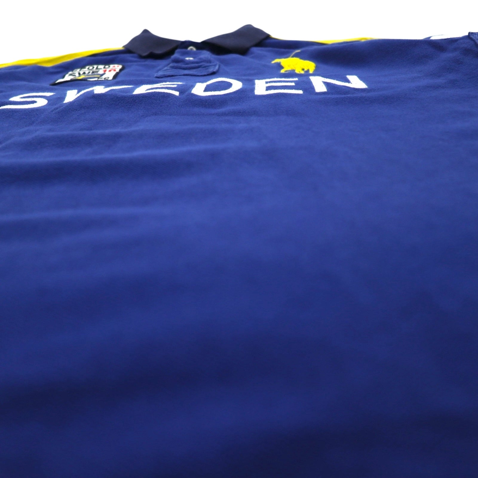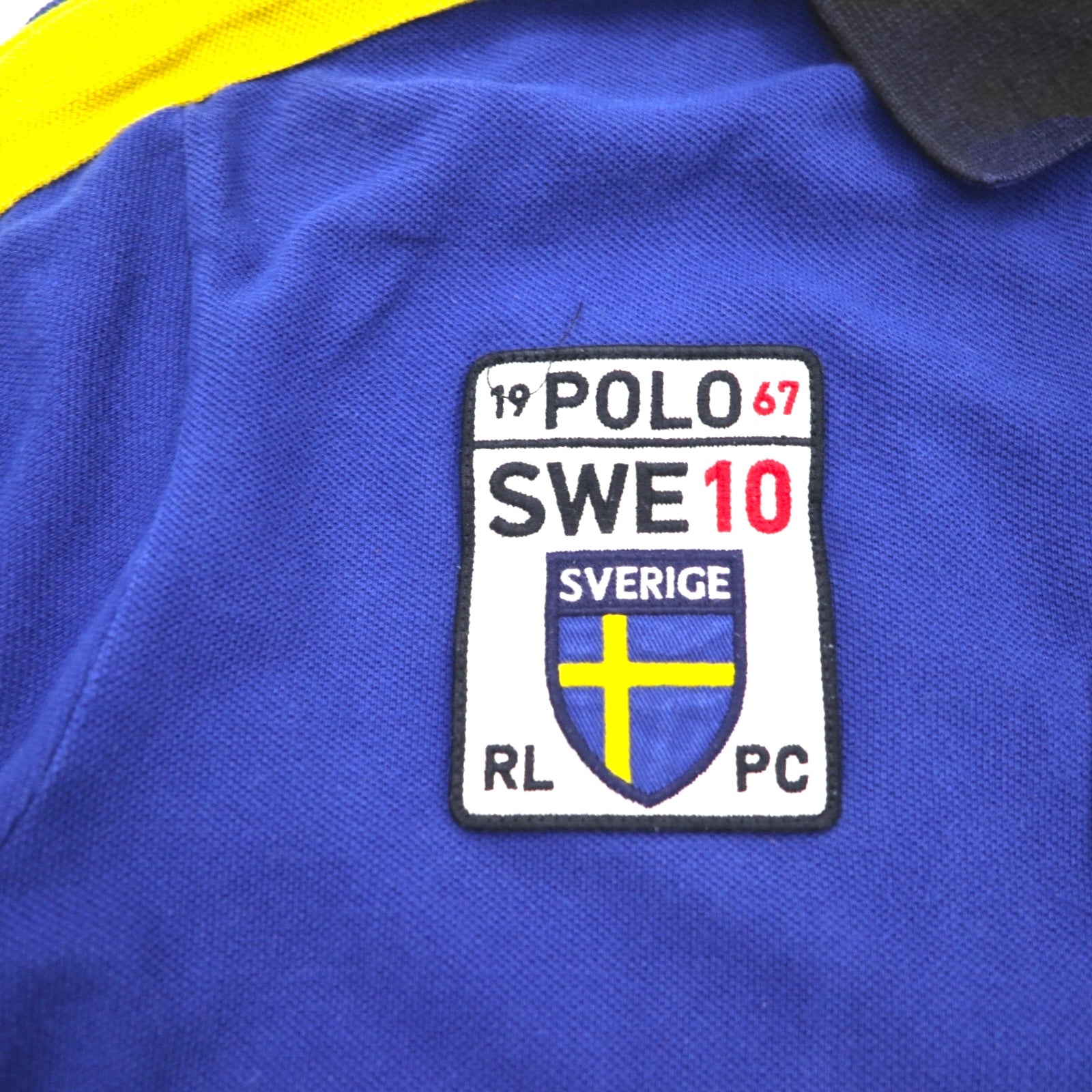 Polo by Ralph Lauren 90年代 SWEDEN ビッグポニー刺繍 ポロシャツ L ブルー コットン 鹿の子 ナンバリング CUSTOM FIT