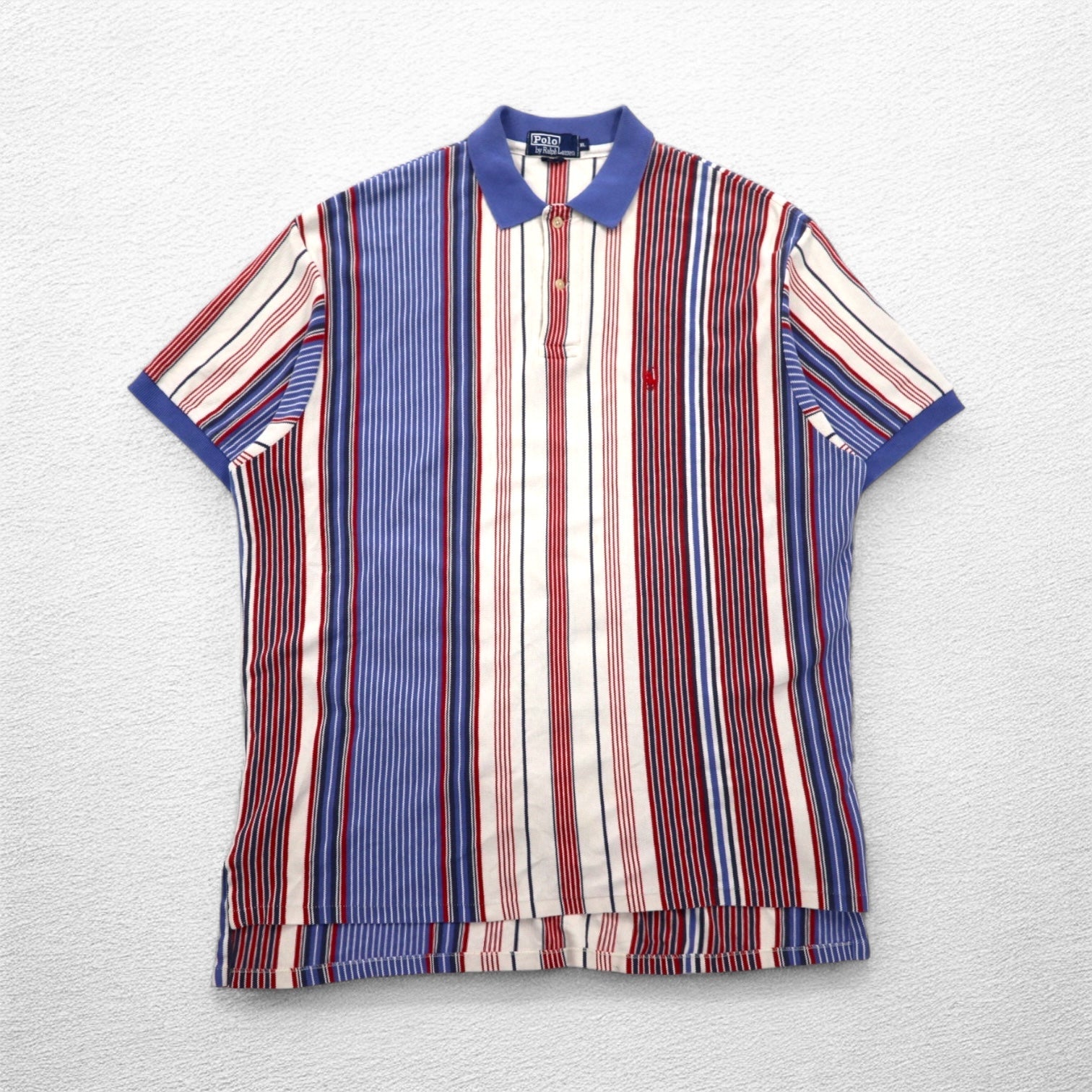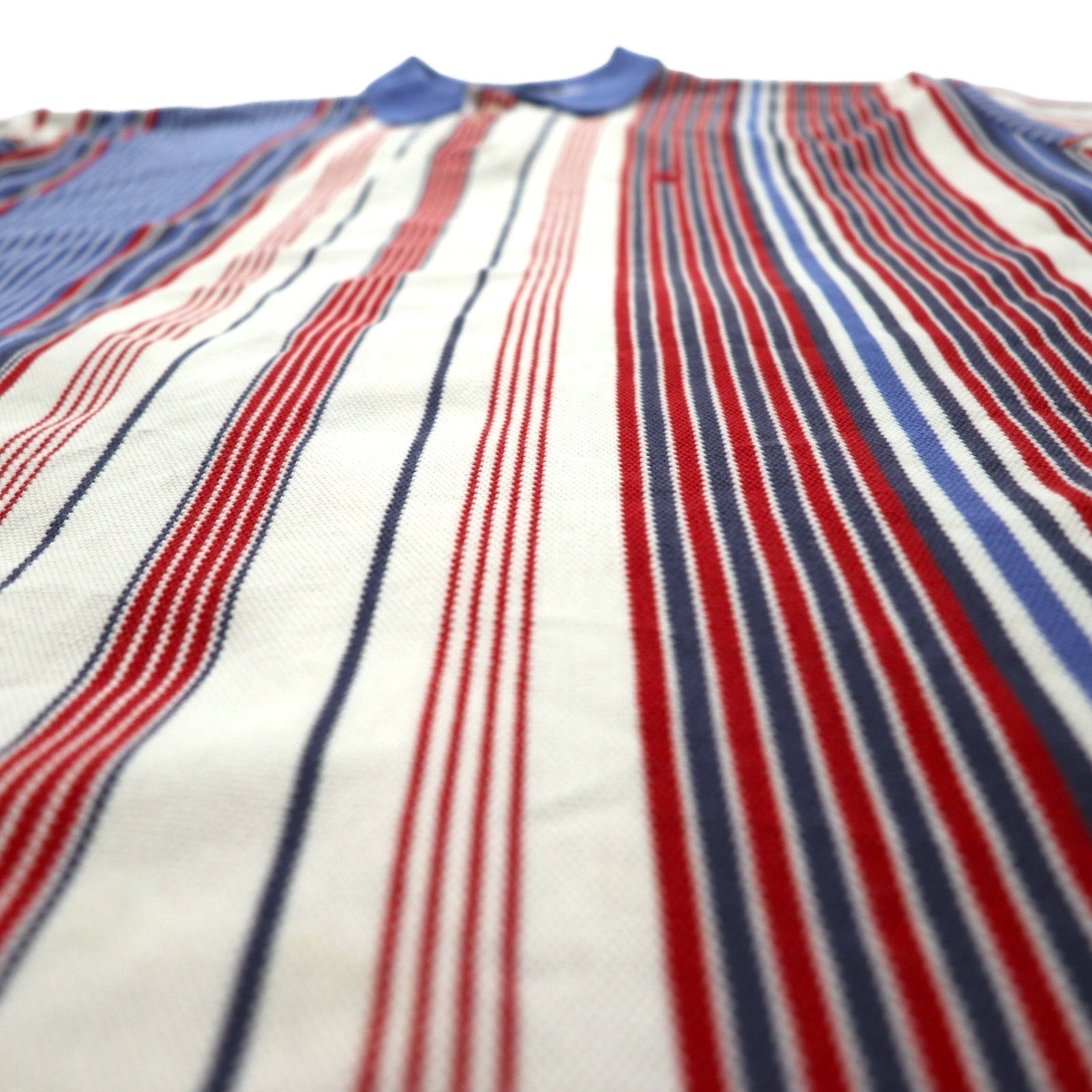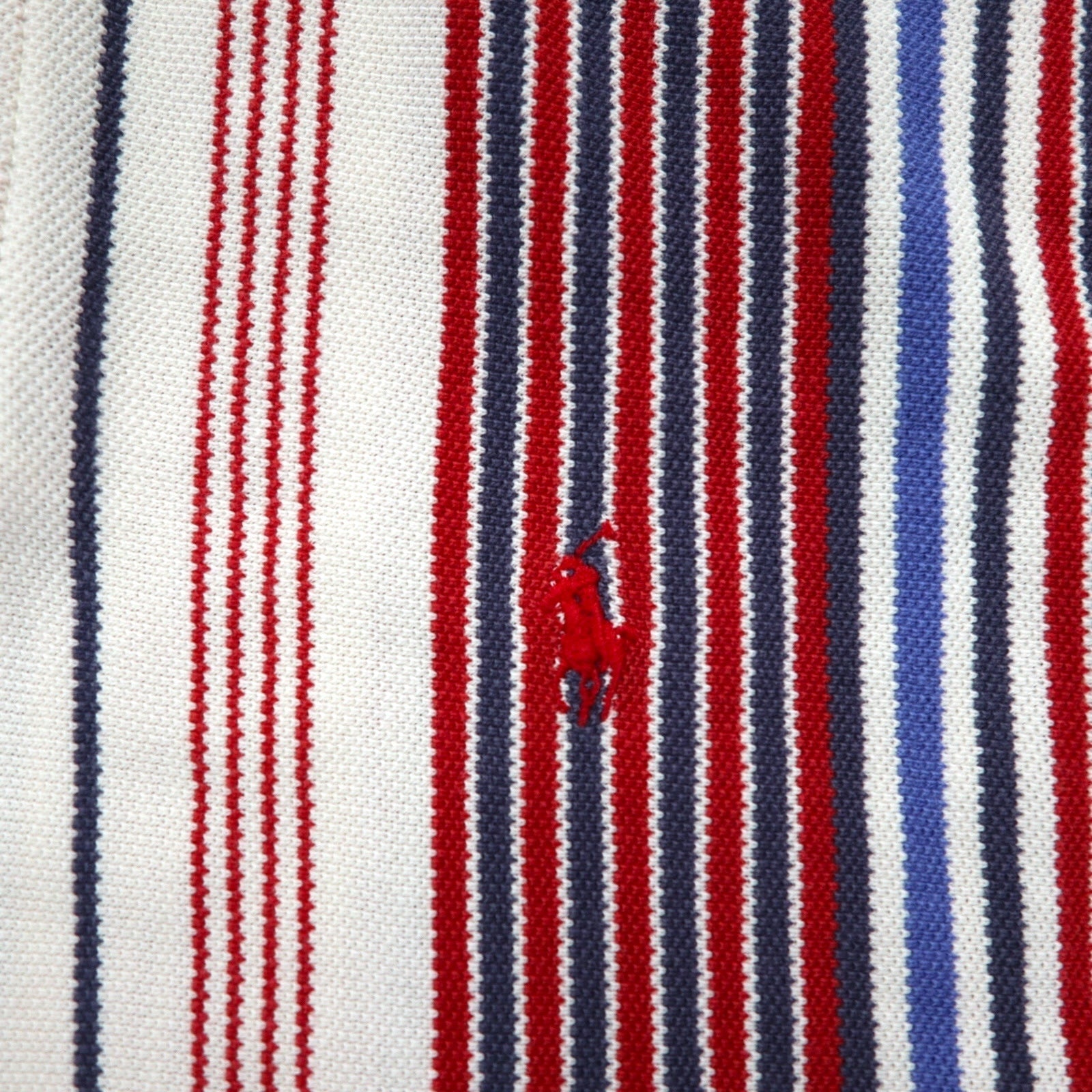 Polo by Ralph Lauren 90年代 USA製 マルチストライプ 鹿の子 ポロシャツ XL ホワイト ブルー レッド スモールポニー刺繍