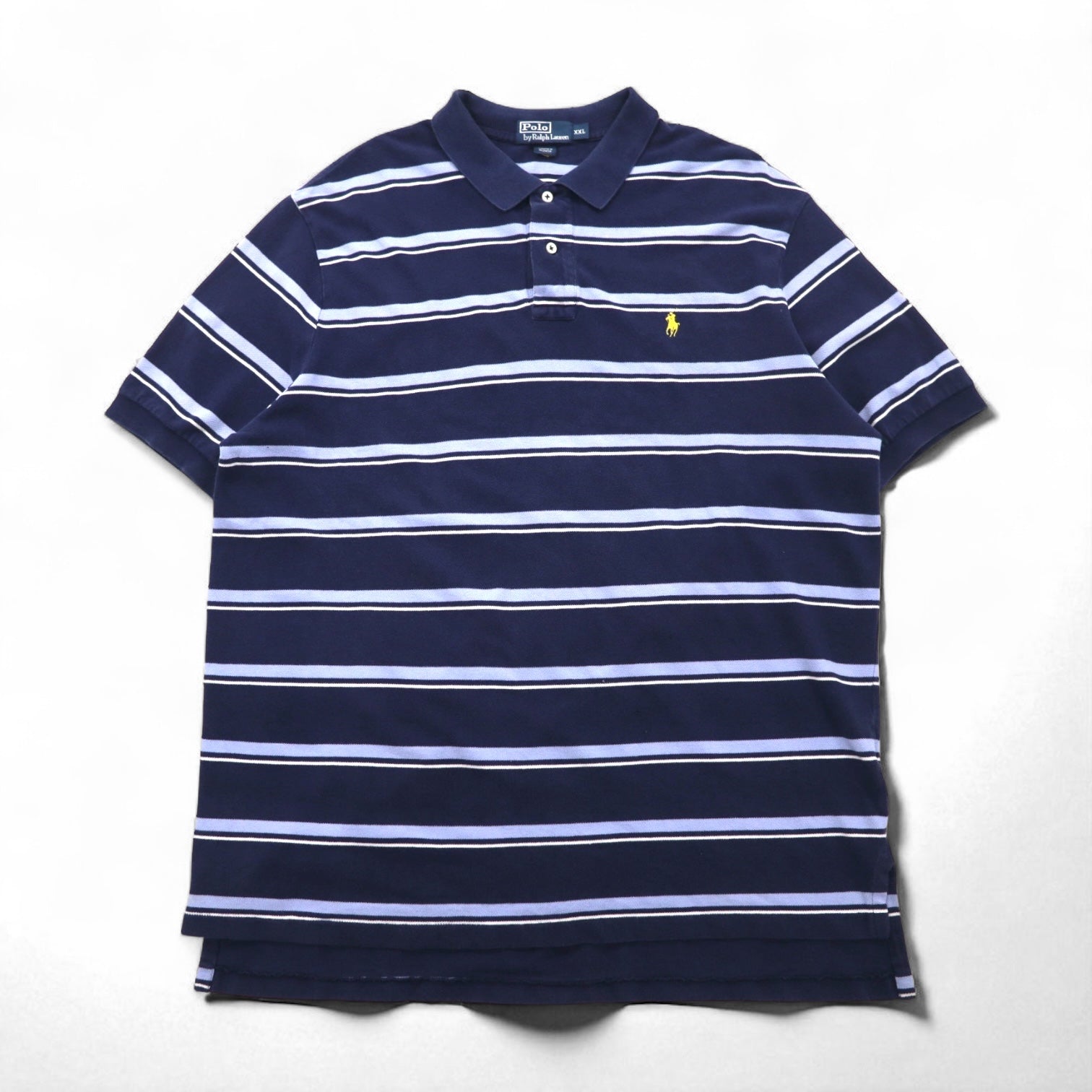 Polo by Ralph Lauren 90年代 ボーダー ポロシャツ 2XL ネイビー ブルー コットン 鹿の子 スモールポニー刺繍