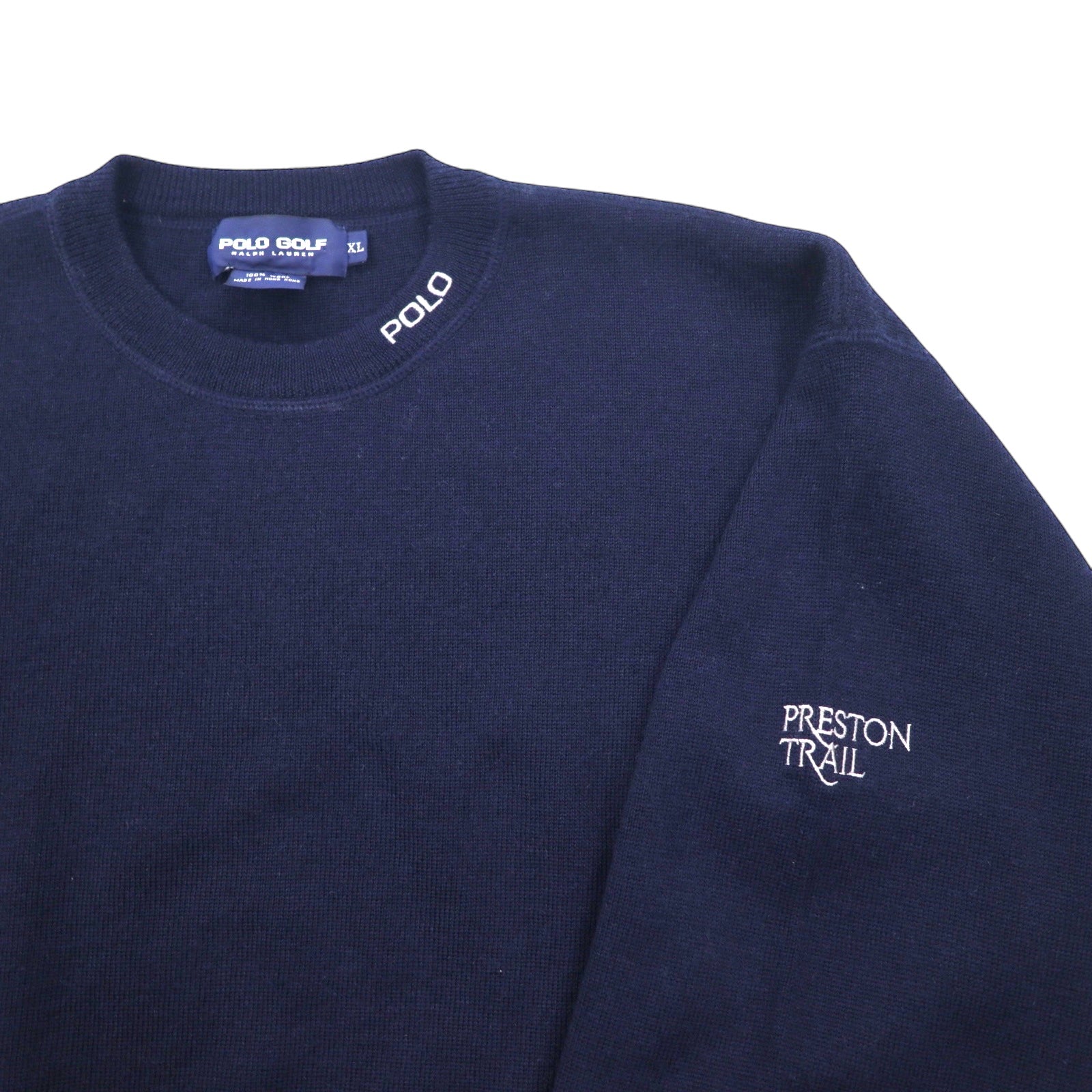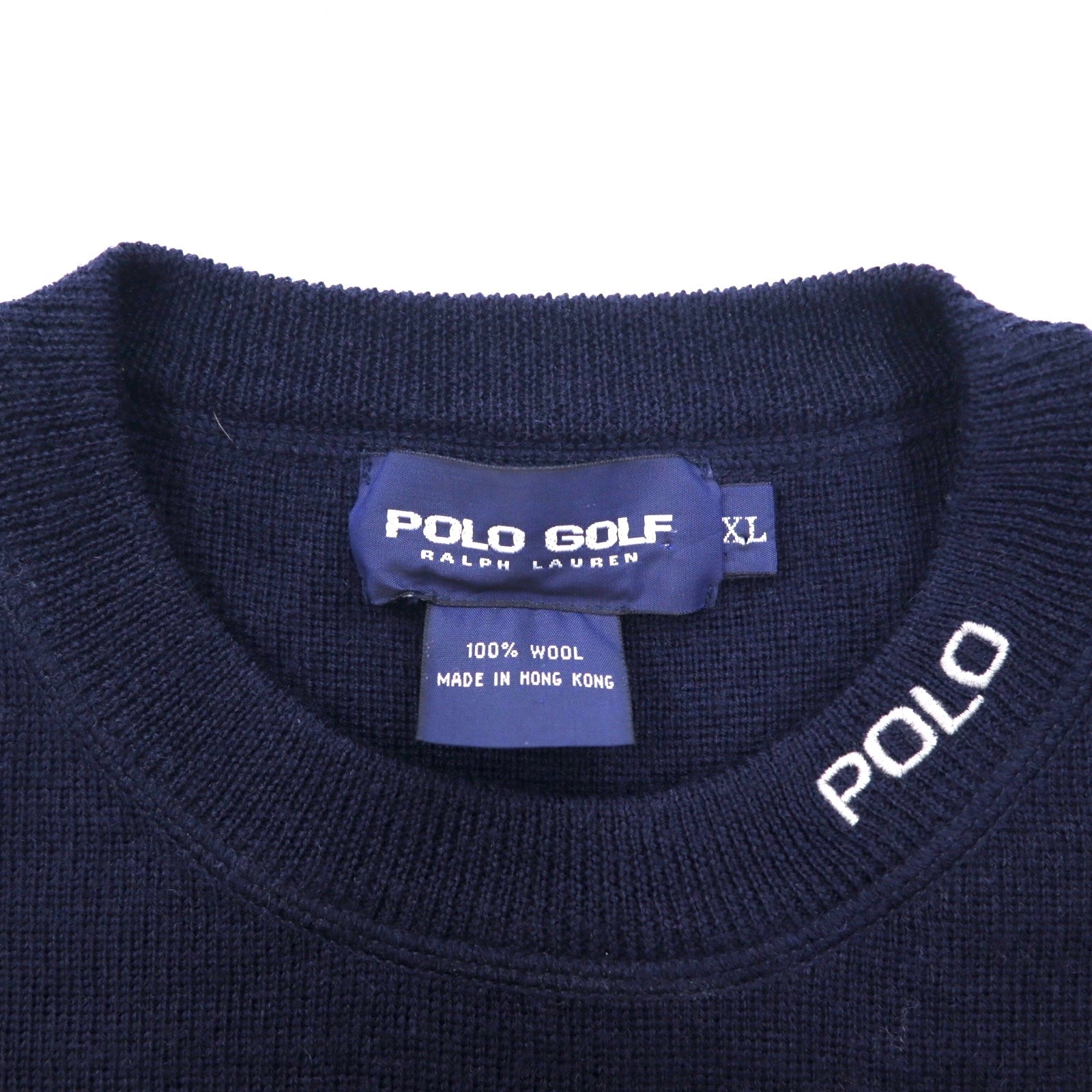 POLO GOLF RALPH LAUREN 90年代 クルーネック ニット セーター XL ネイビー ウール 刺繍