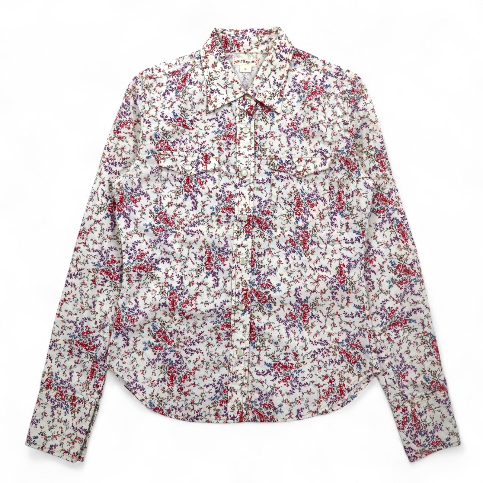 POLO JEANS CO. RALPH LAUREN 花柄 ウエスタンシャツ S ホワイト スナップボタン