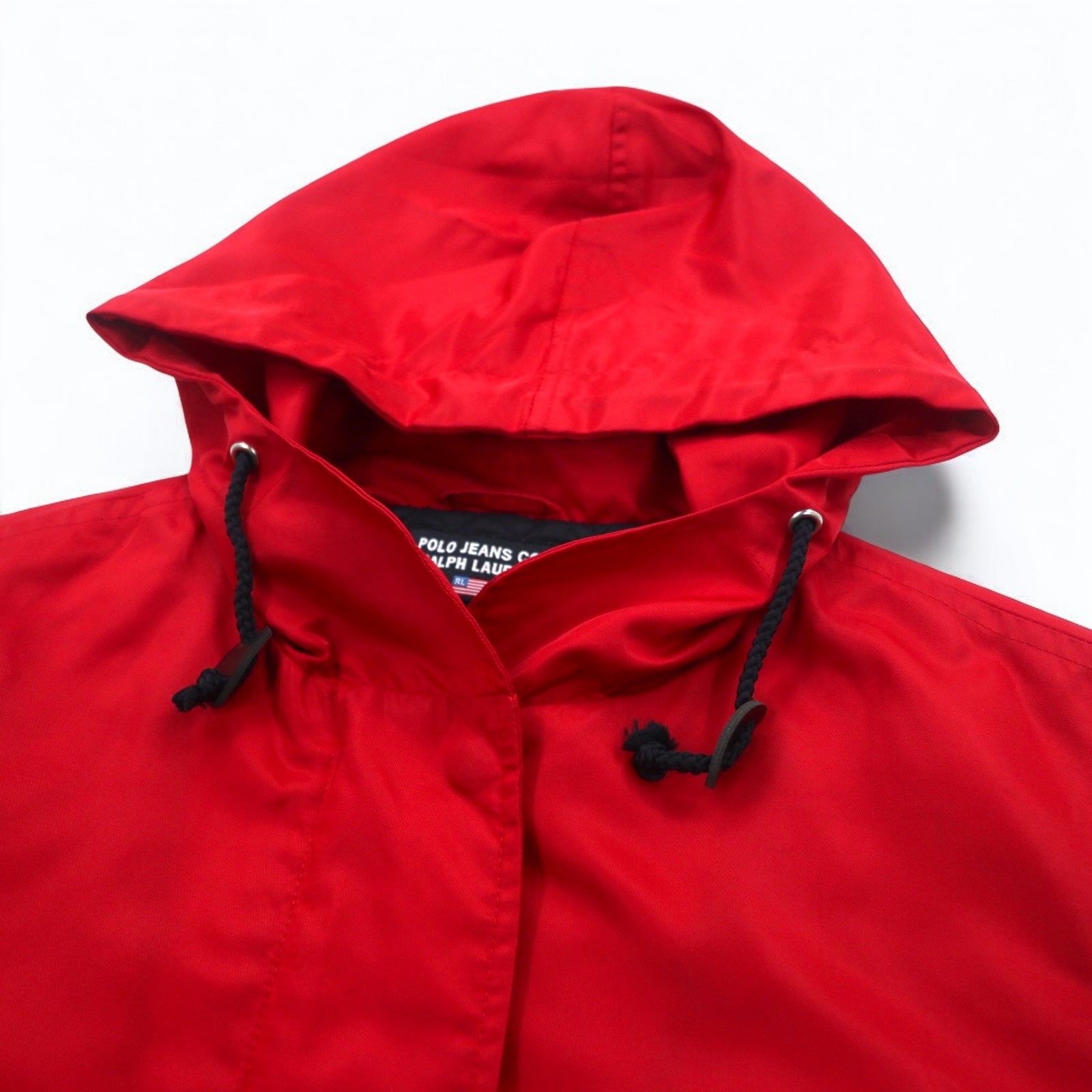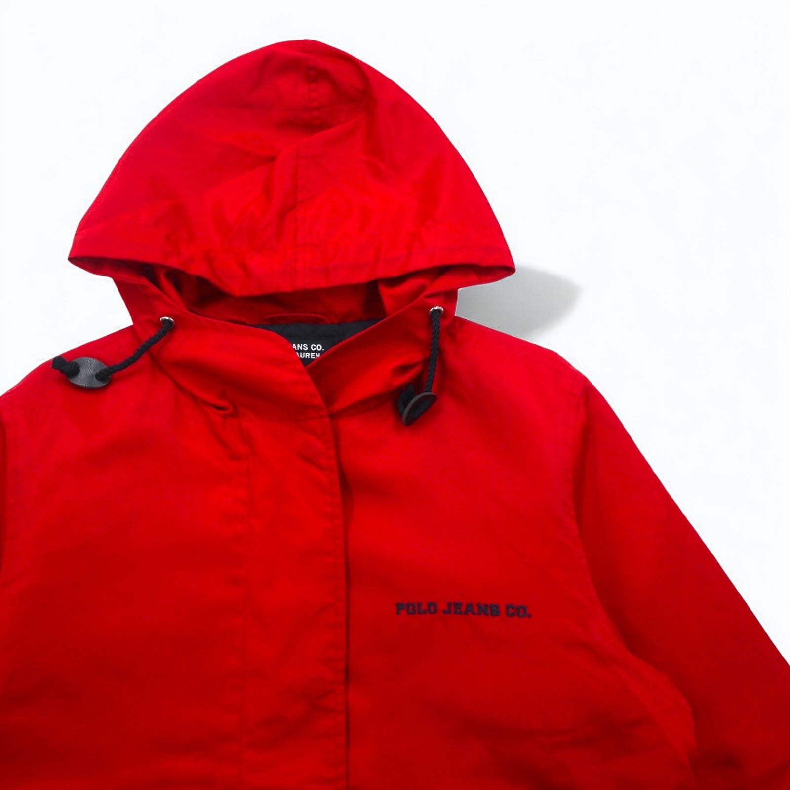 POLO JEANS CO. RALPH LAUREN 90年代 フーデッド ナイロンジャケット S レッド 中綿 キルティングライナー
