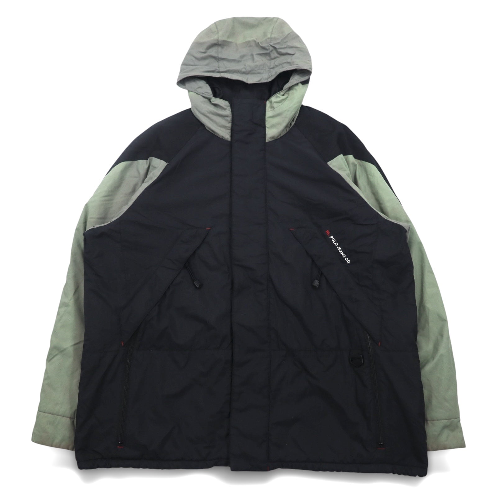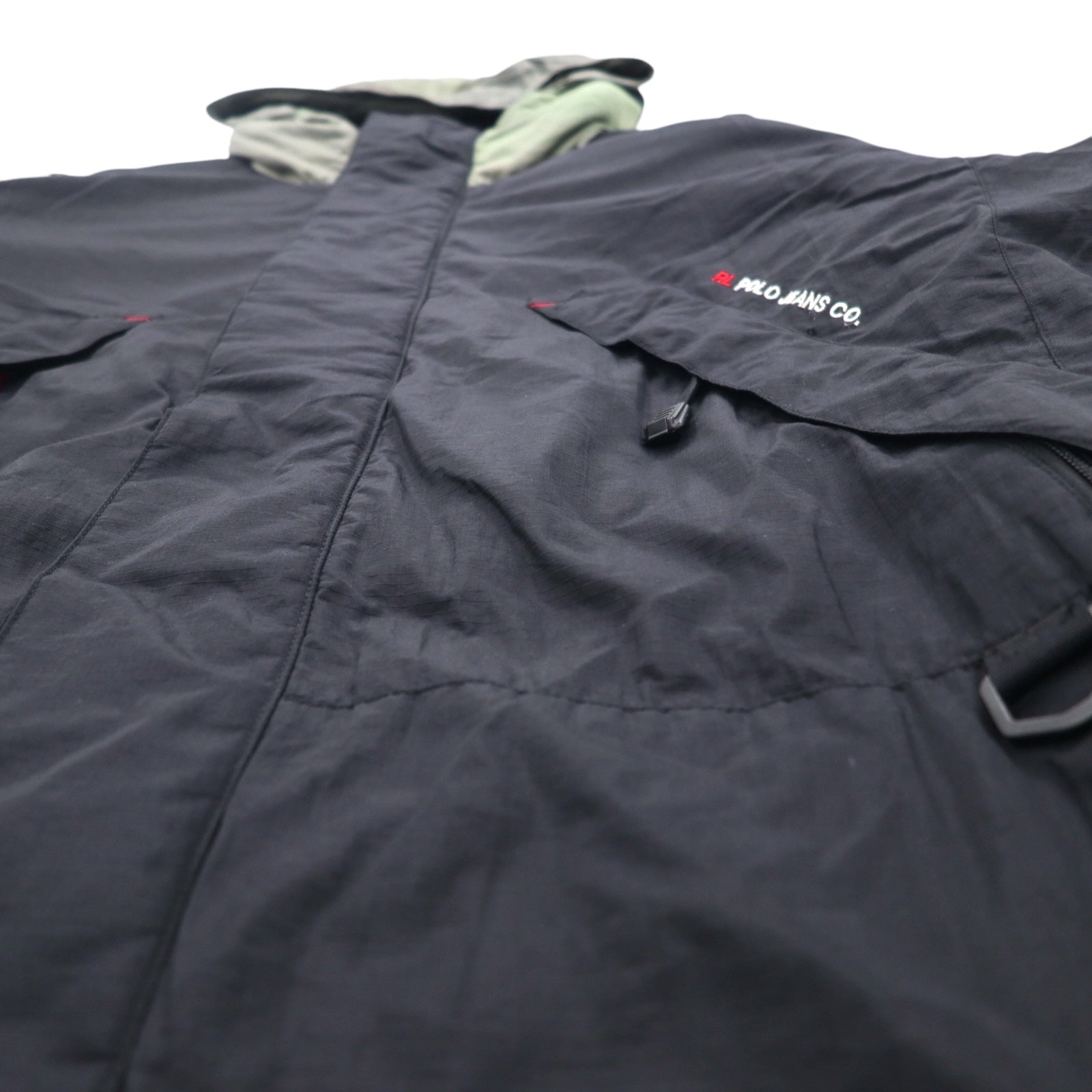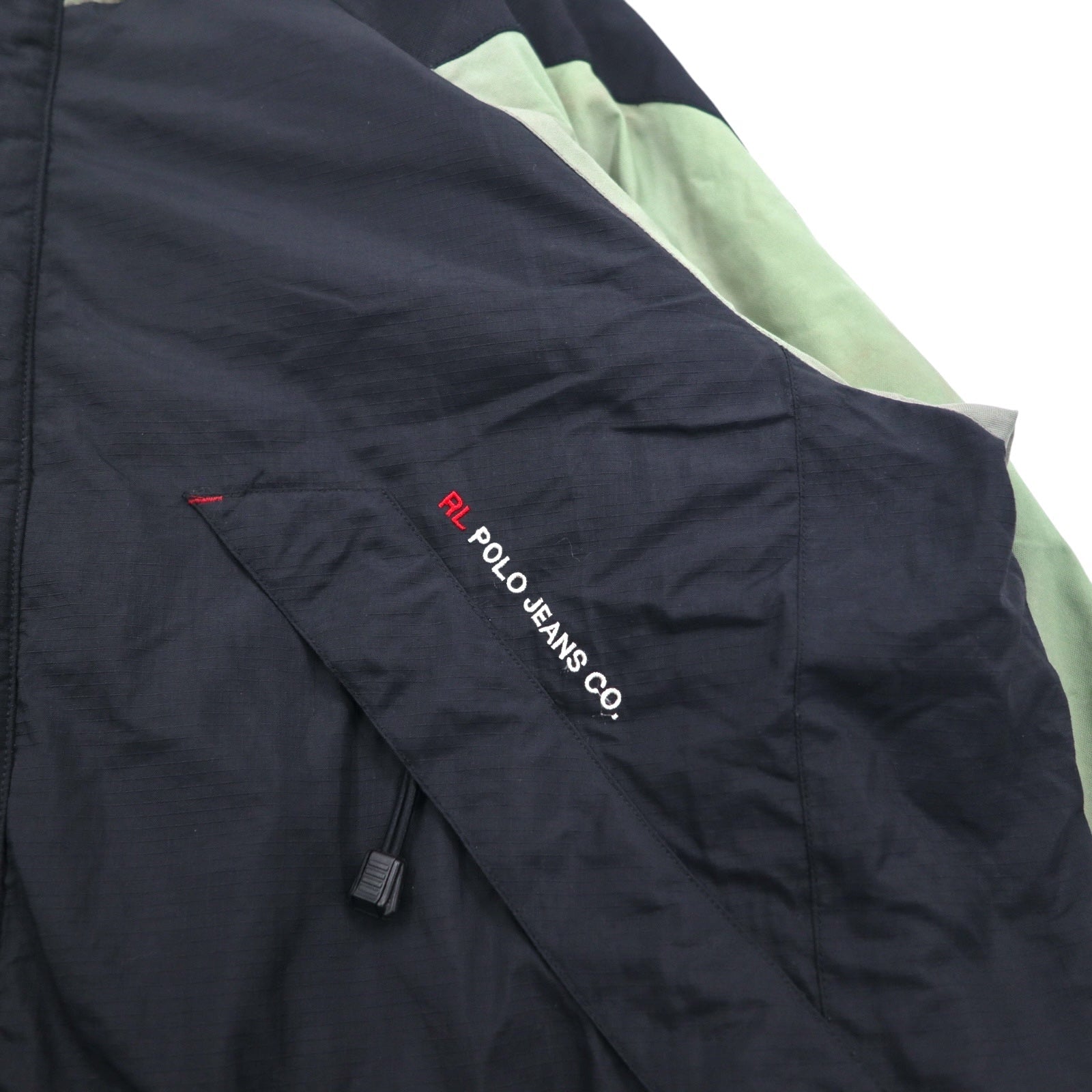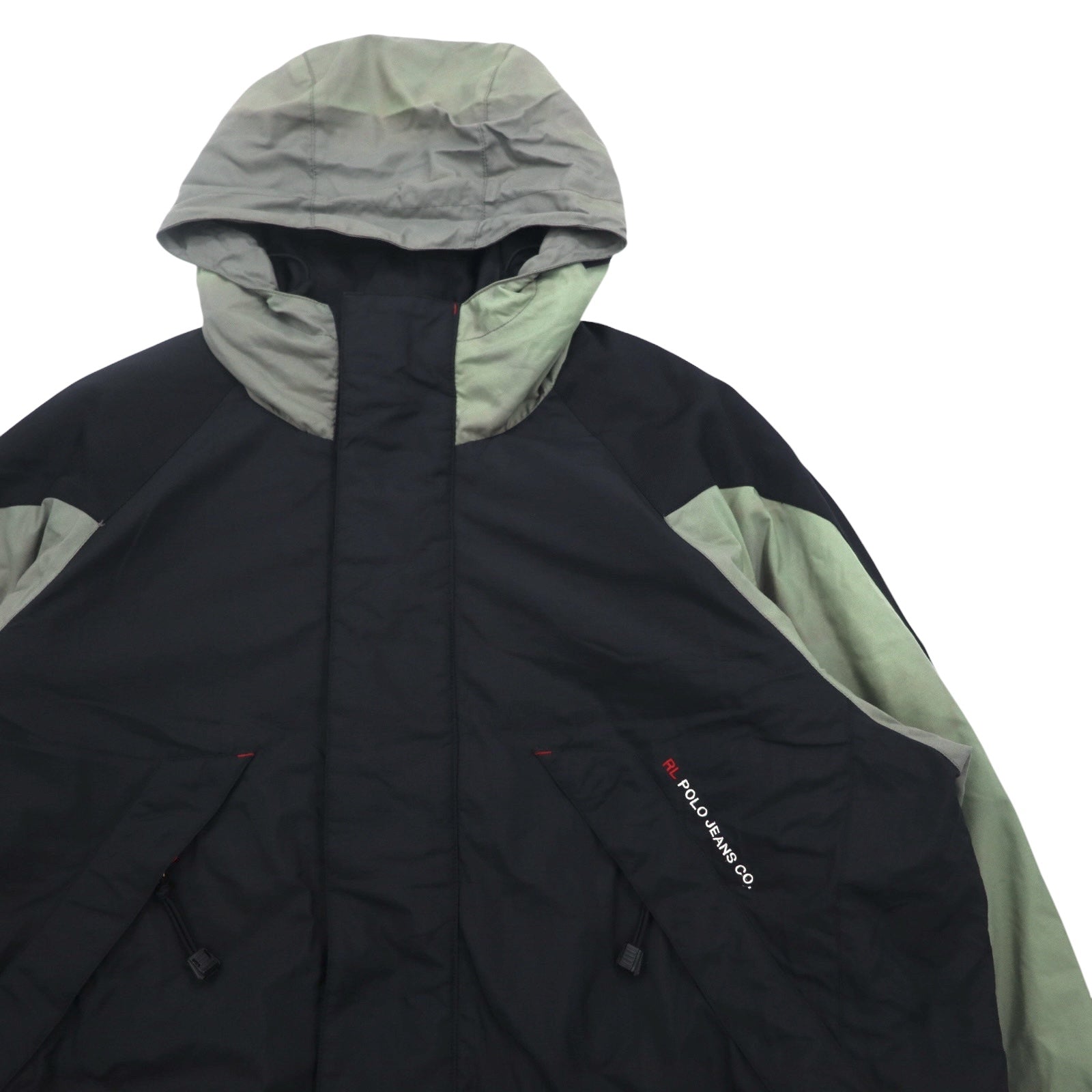 POLO JEANS Co. RALPH LAUREN 90年代 フード収納式 マウンテンパーカー L グリーン ブラック ナイロン リップストップ