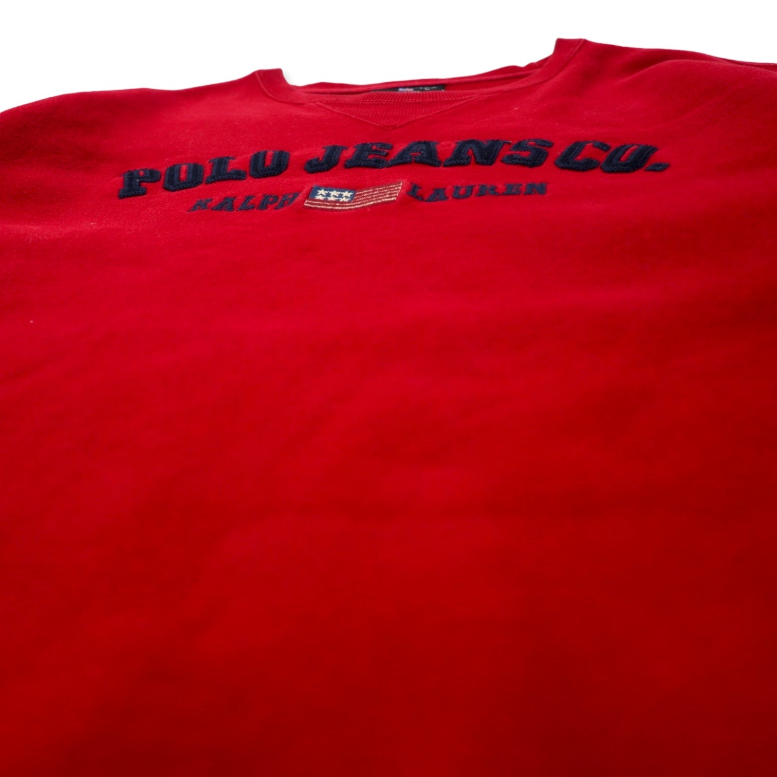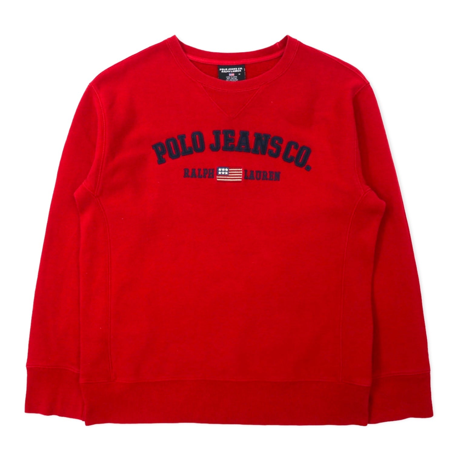 POLO JEANS CO. RALPH LAUREN 90年代 リバースウィーブ ロゴ刺繍 スウェット M レッド コットン 星条旗 前V