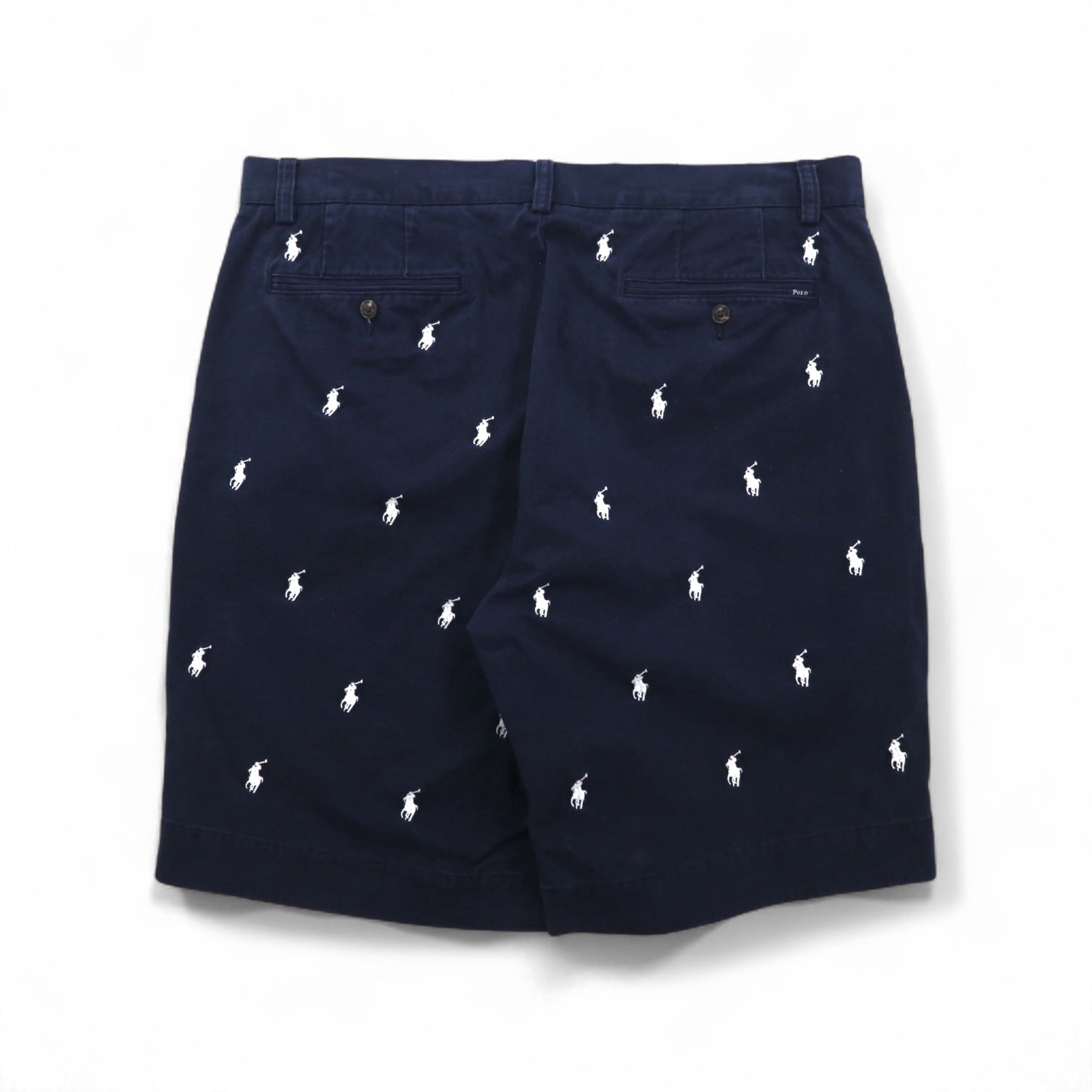 POLO RALPH LAUREN クラシックフィット ショート チノパンツ ハーフパンツ L ネイビー オールオーバーポニー 刺繍