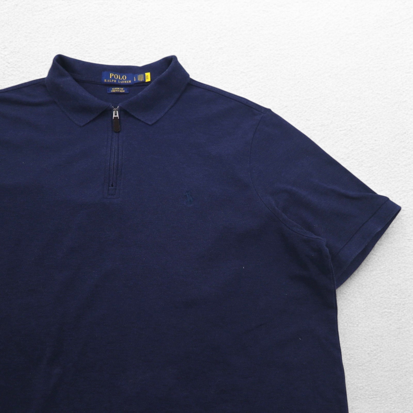 POLO RALPH LAUREN クラシックフィット ストレッチ メッシュ ハーフジップ ポロシャツ L ネイビー コットン スモールポニー刺繍