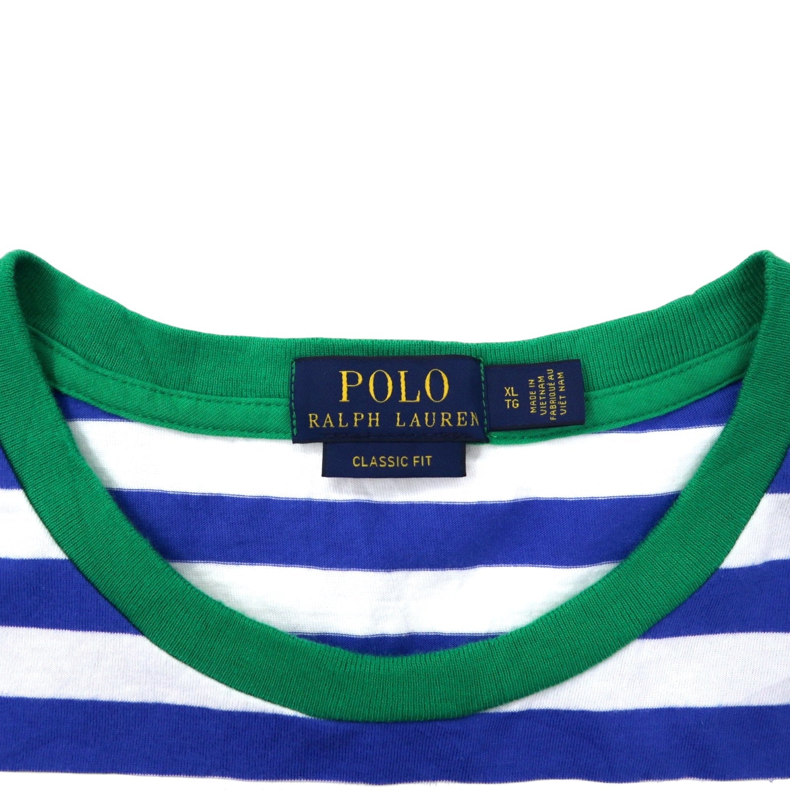 POLO RALPH LAUREN クラシックフィット ボーダー Tシャツ ポケT XL ブルー ホワイト コットン カラーブロック スモールポニー刺繍