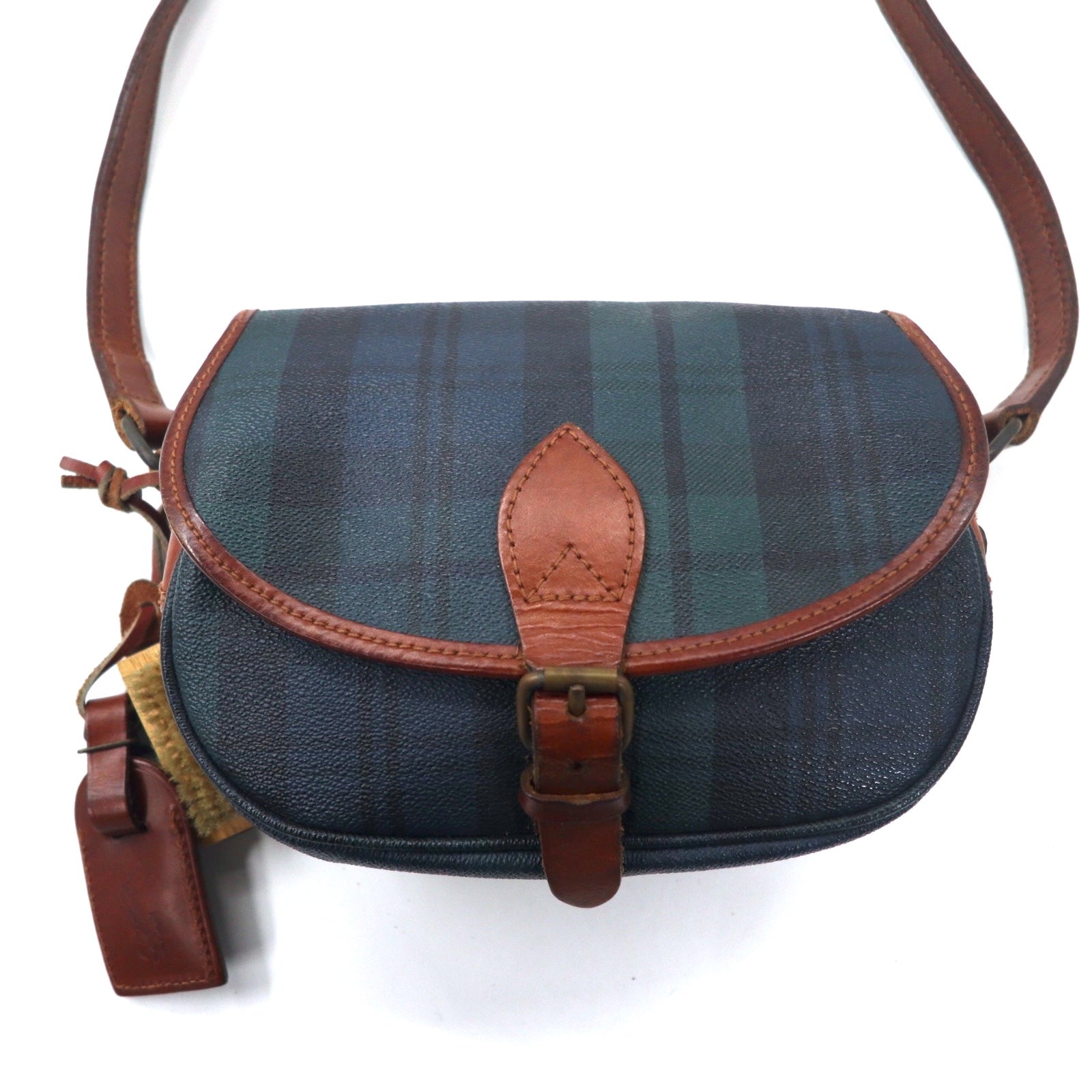 POLO RALPH LAUREN ショルダーバッグ ポシェット グリーン チェック PVC レザー切り替え
