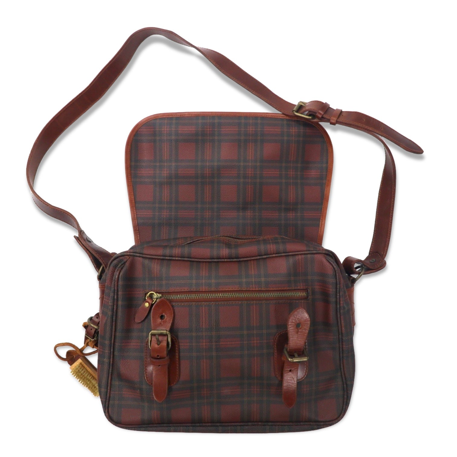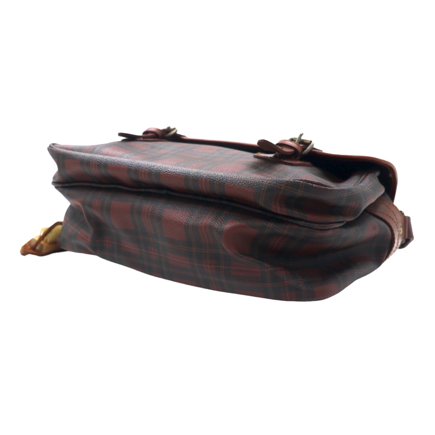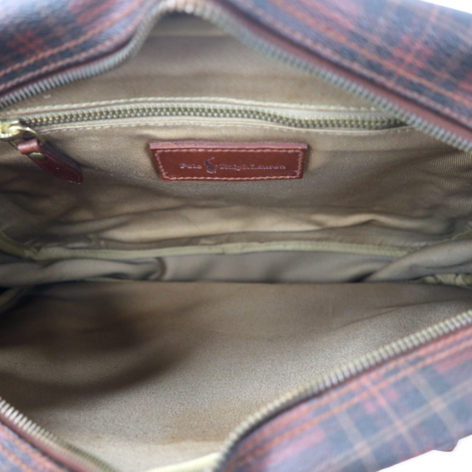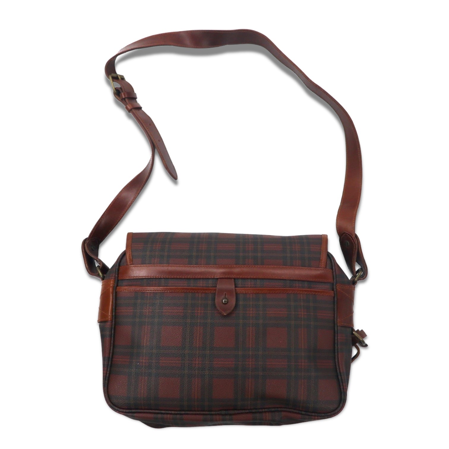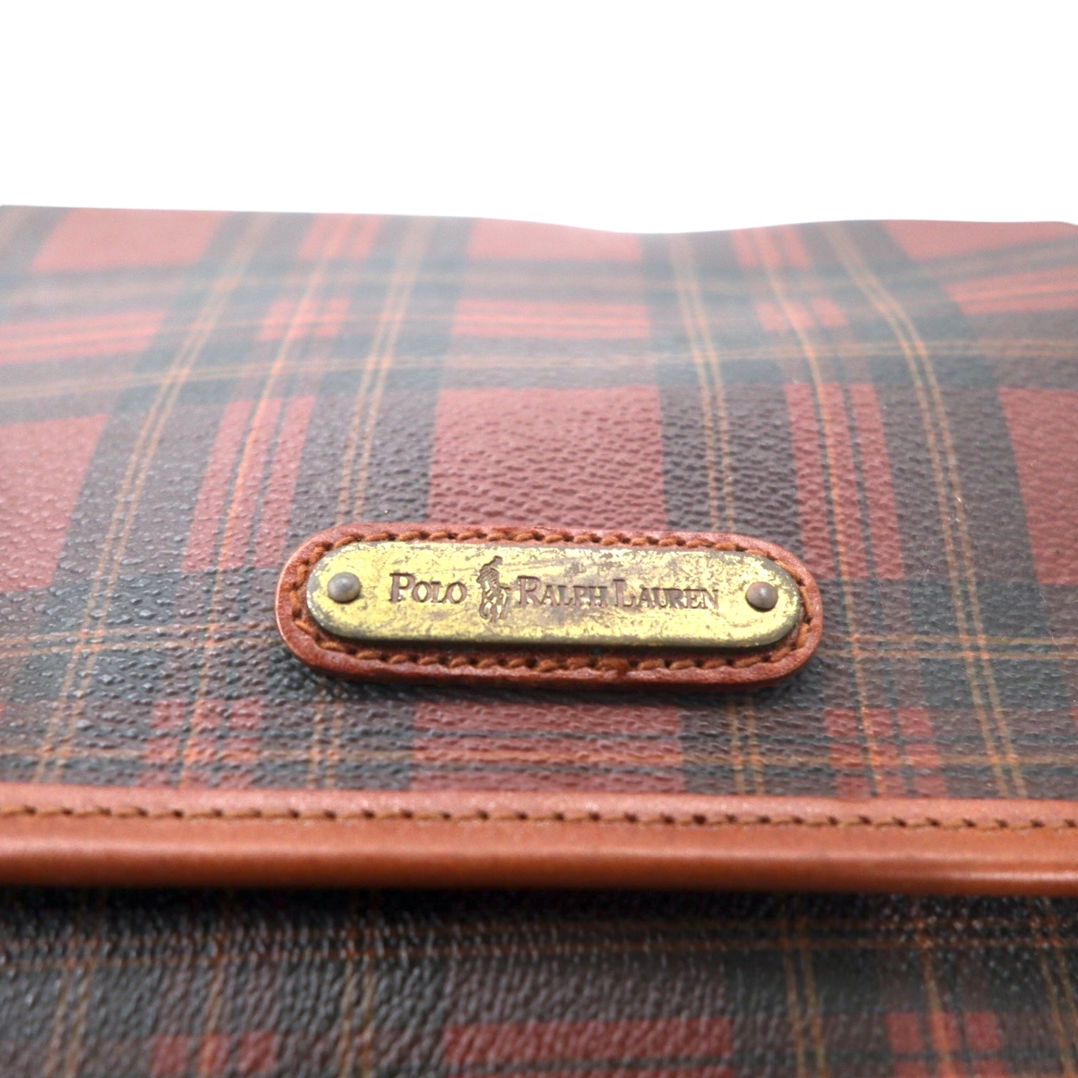 POLO RALPH LAUREN タータンチェック メッセンジャーバッグ ショルダーバッグ レッド ブラウン PVC レザー