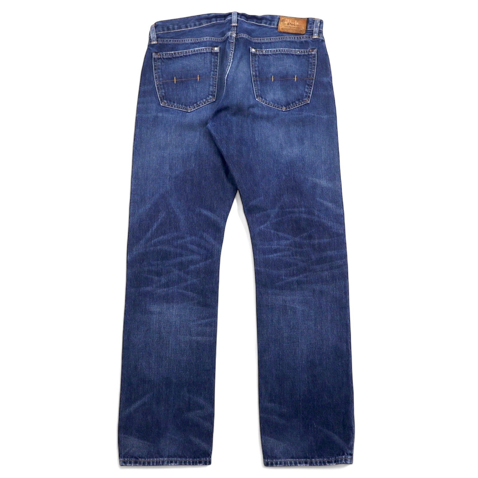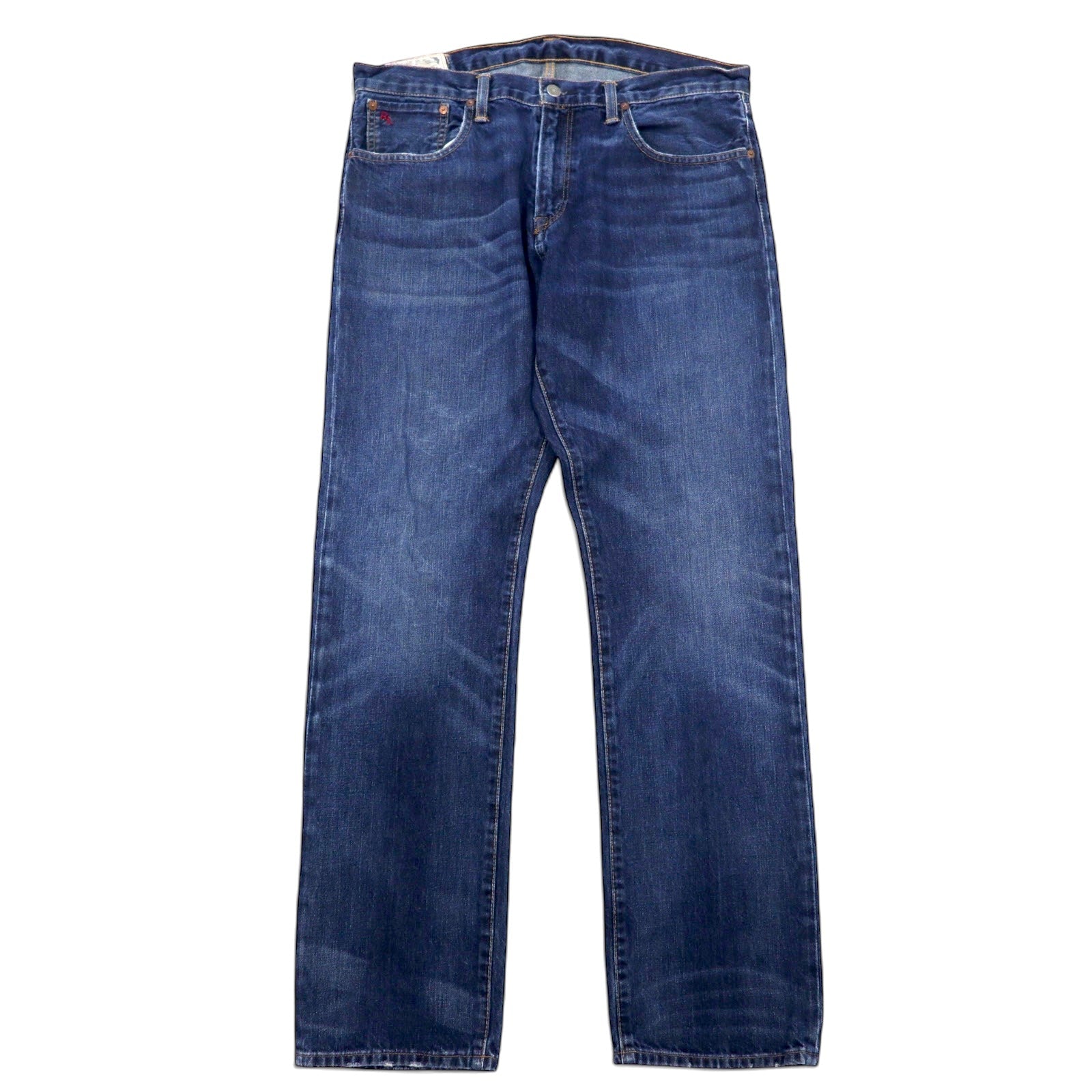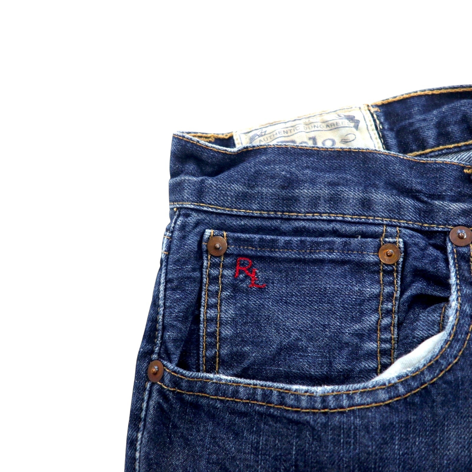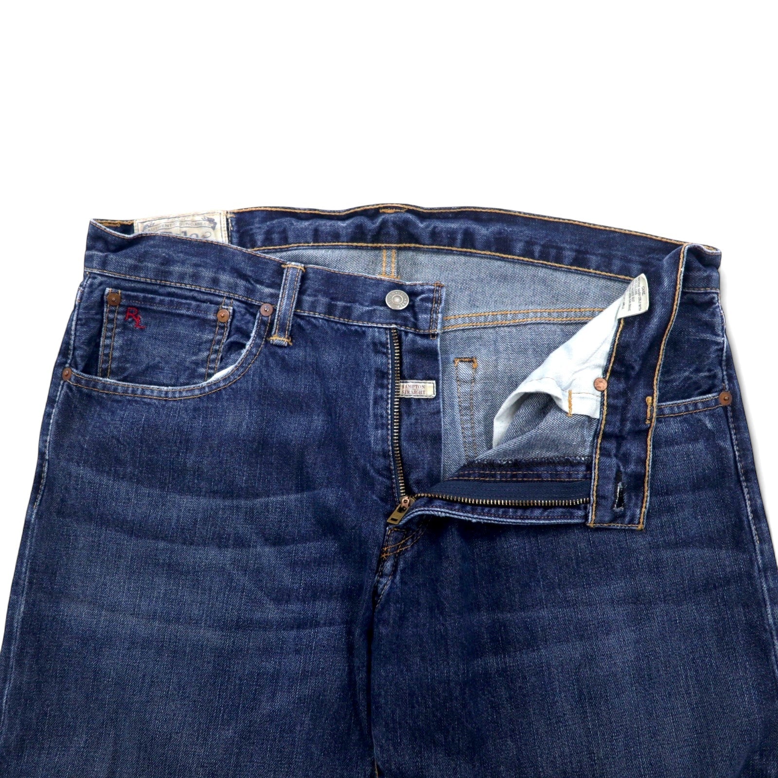 POLO RALPH LAUREN デニムパンツ 34 ブルー コットン レザーパッチ ジッパーフライ RL ロゴ 刺繍 メキシコ製