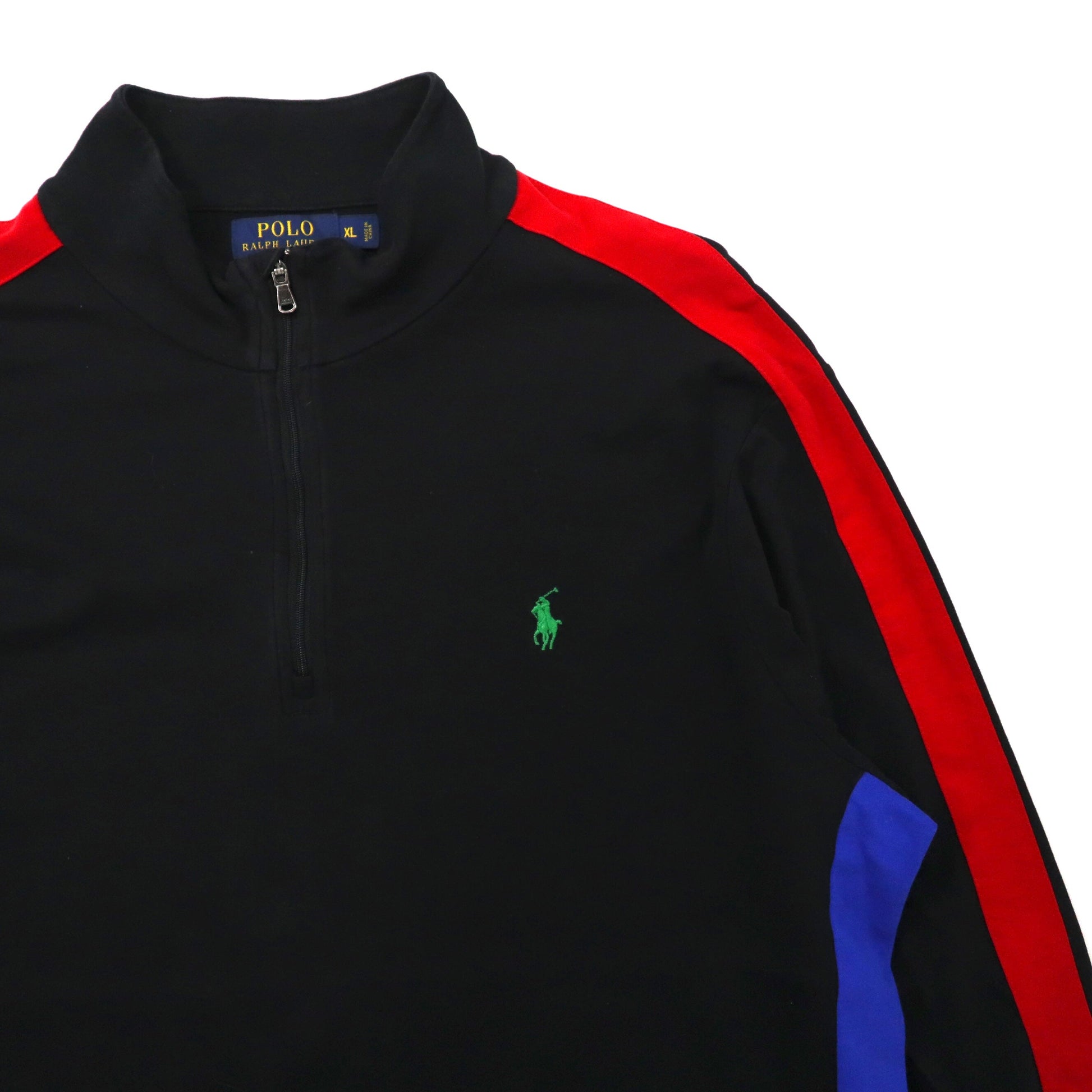 POLO RALPH LAUREN ハーフジップ トラックシャツ XL ブラック コットン PIMA SOFT TOUCH サイドライン スモールポニー刺繍