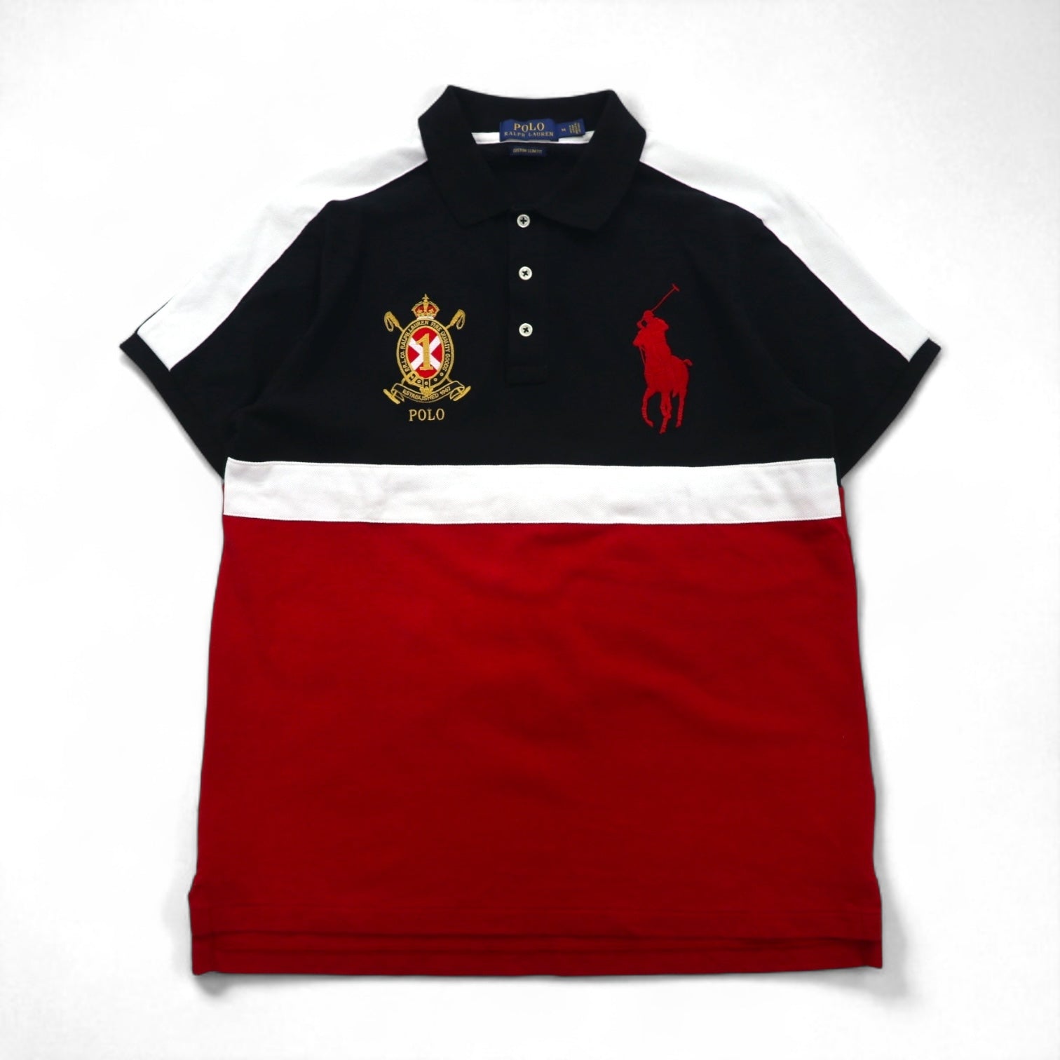 POLO RALPH LAUREN ビッグポニー刺繍 ポロシャツ M ブラック レッド 鹿の子 エンブレム ワッペン