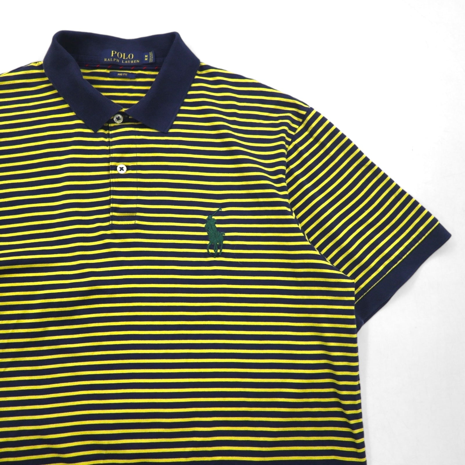 POLO RALPH LAUREN ピマコットン ボーダー ポロシャツ M イエロー ネイビー ポニー刺繍 PRO FIT