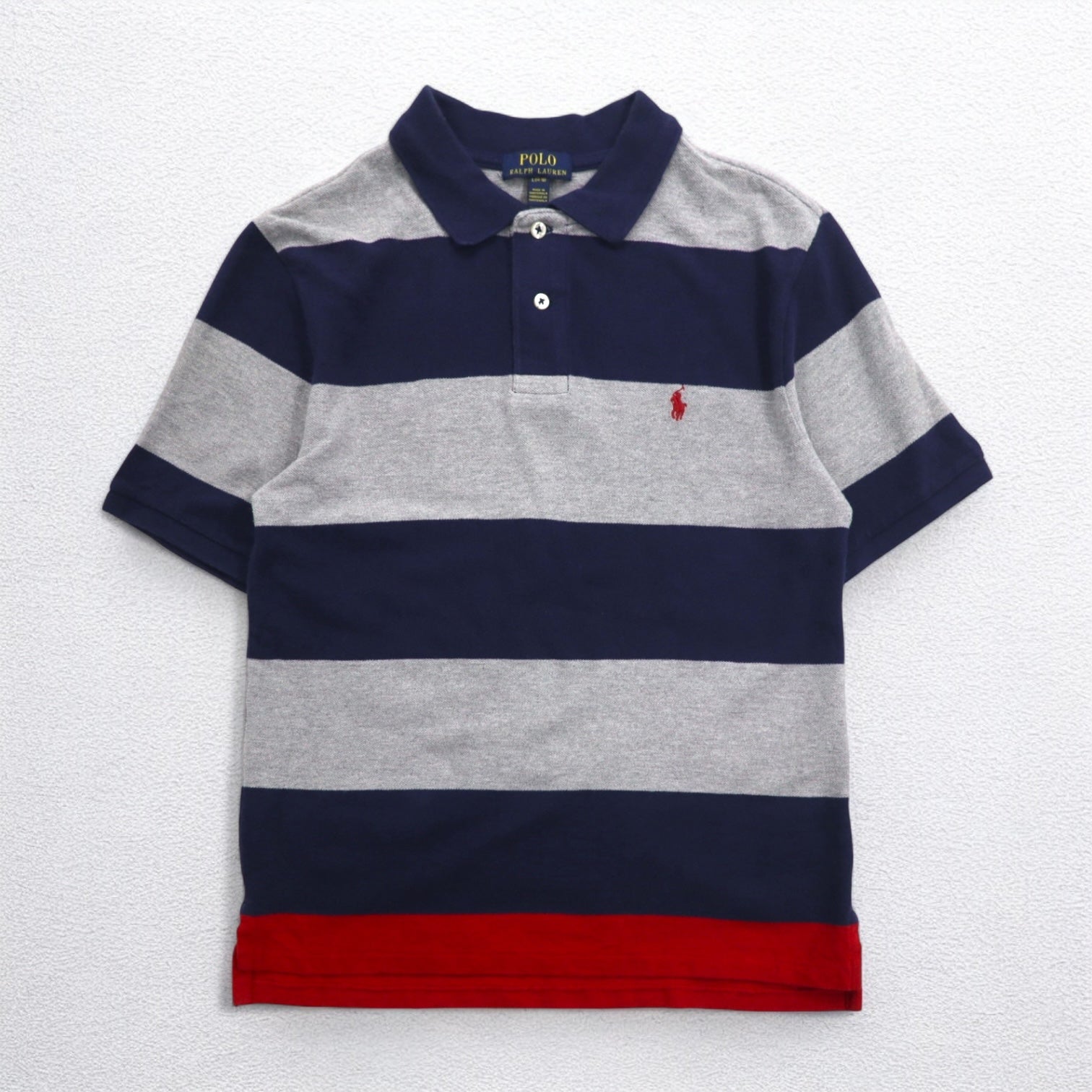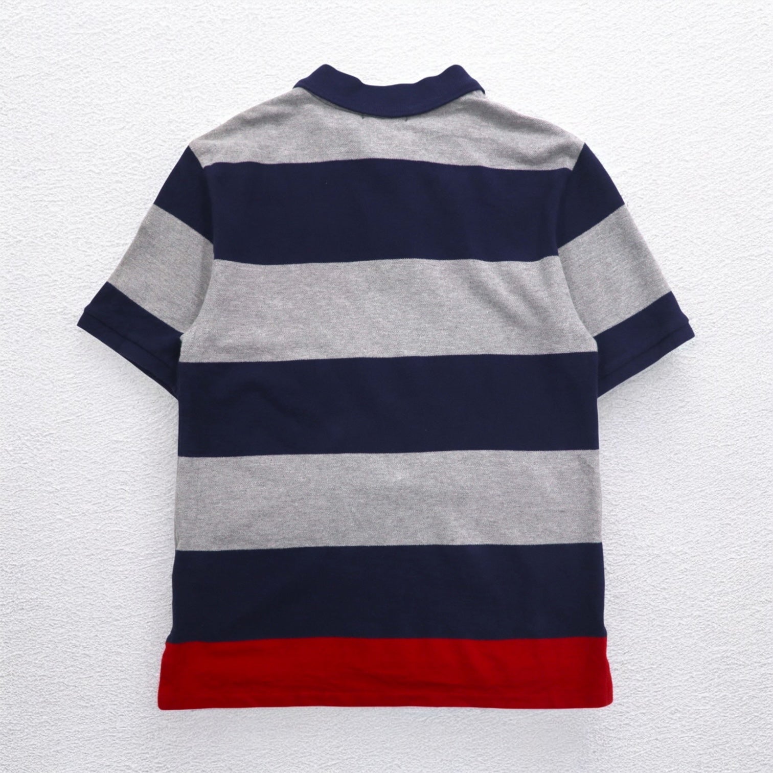 POLO RALPH LAUREN ボーダー ポロシャツ L グレー ネイビー コットン 鹿の子 スモールポニー刺繍