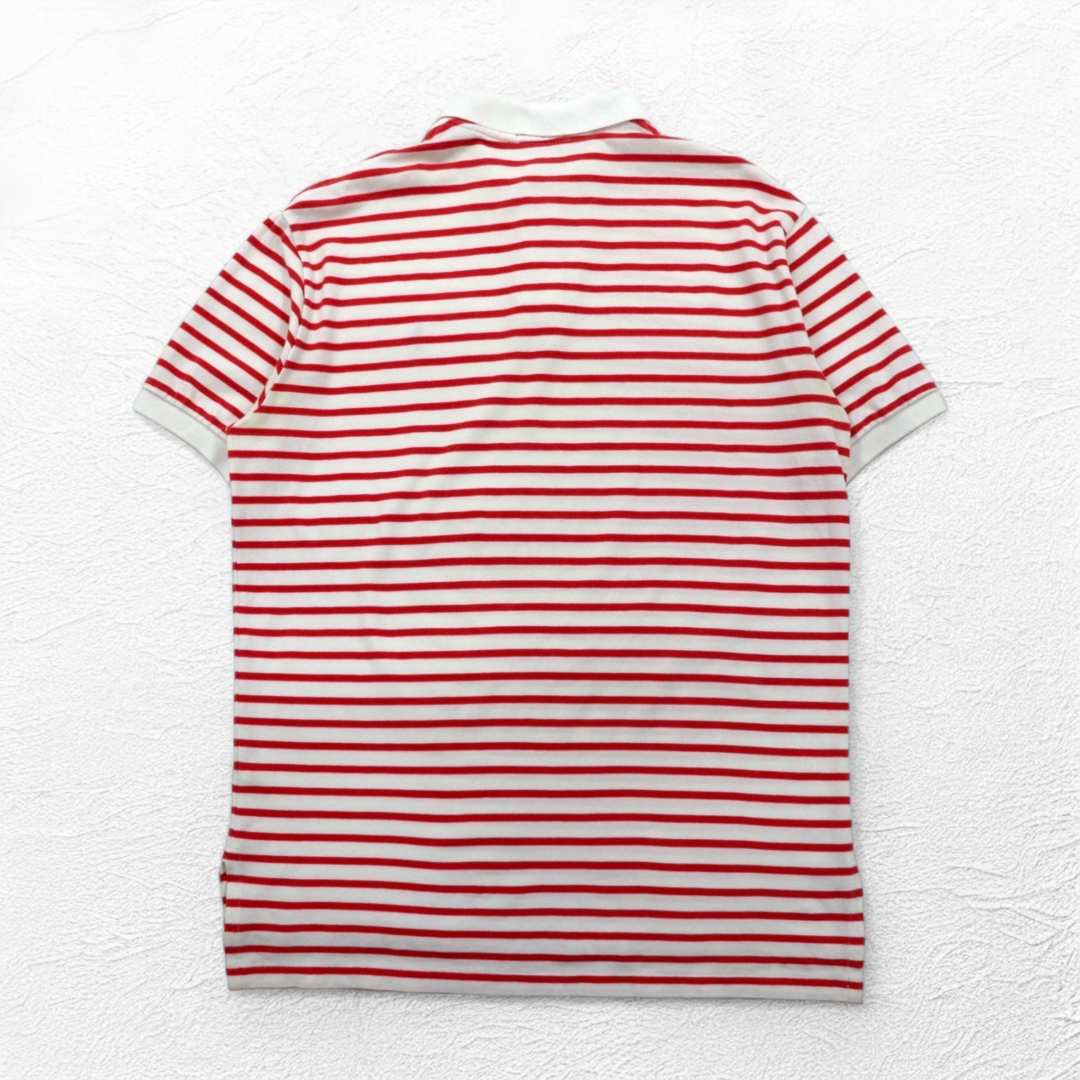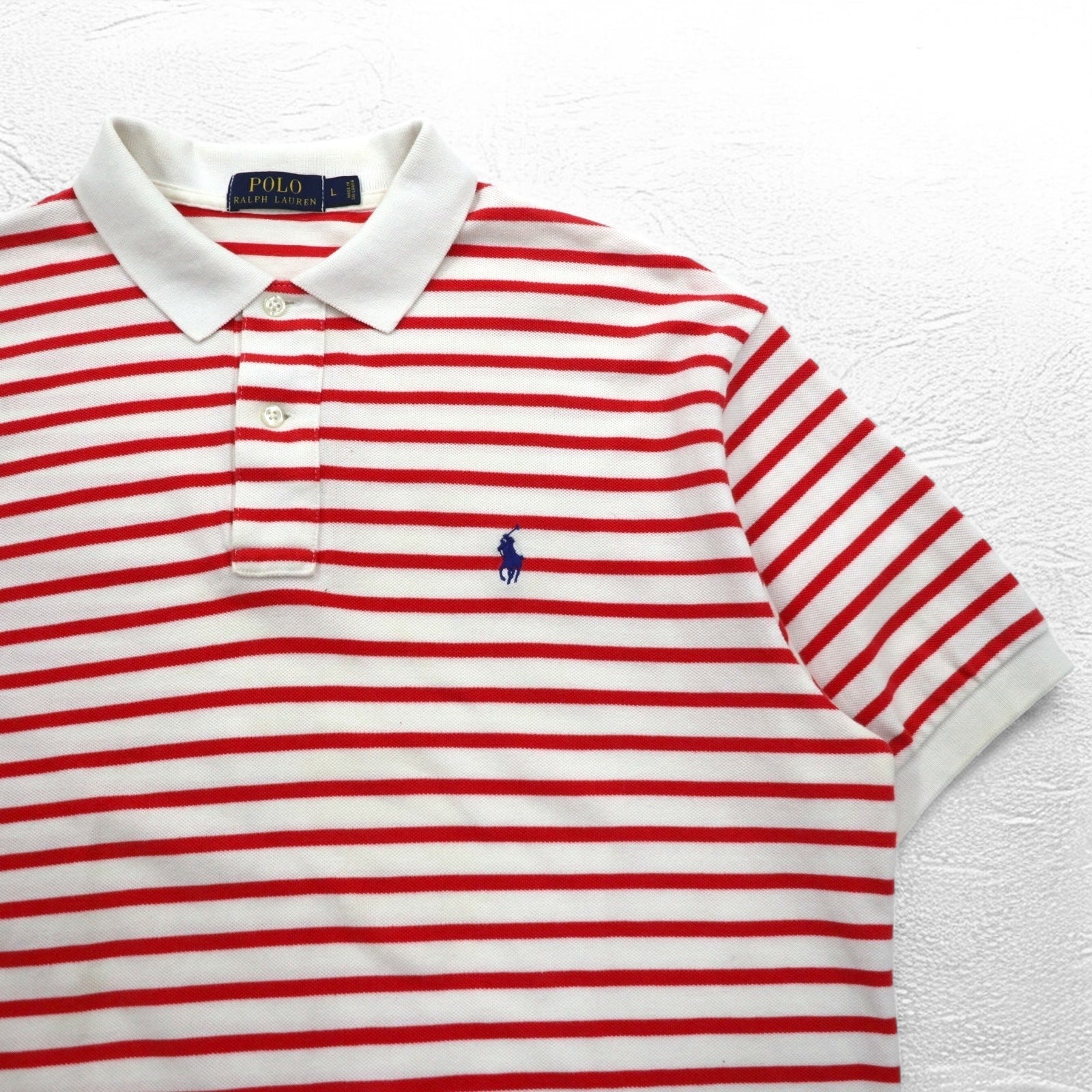 POLO RALPH LAUREN ボーダー ポロシャツ L ホワイト オレンジ コットン スモールポニー刺繍