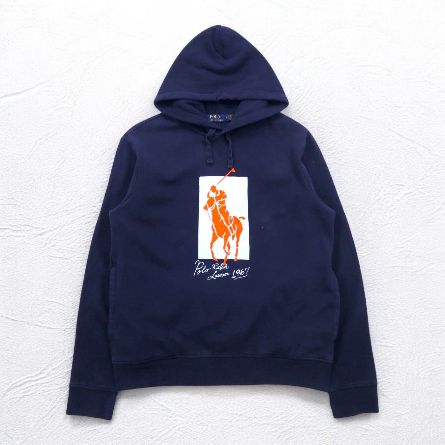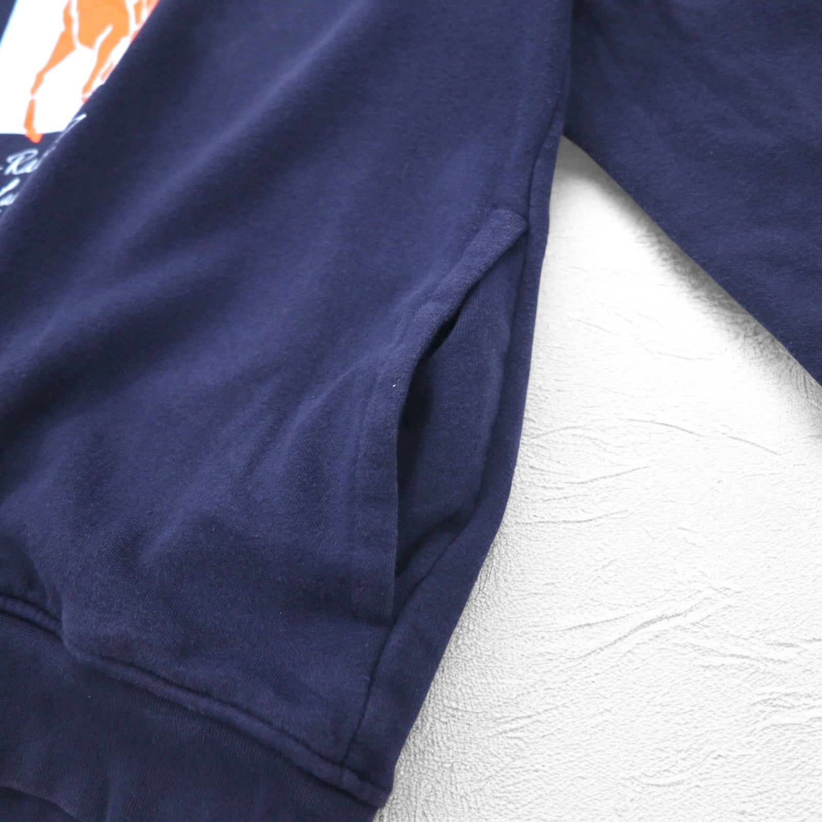 POLO RALPH LAUREN ポニー プリント プルオーバー パーカー M ネイビー 裏起毛 サイドポケット