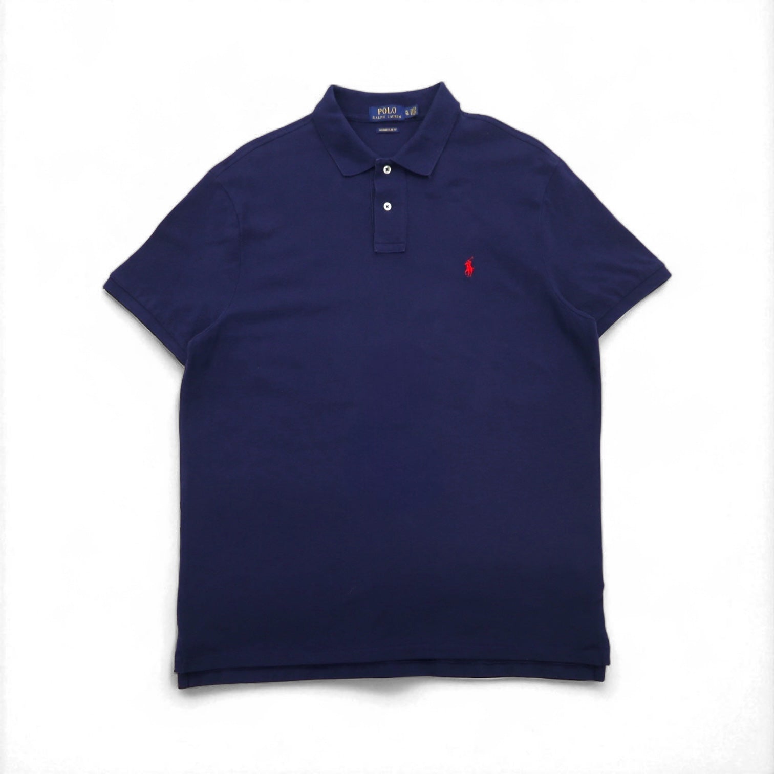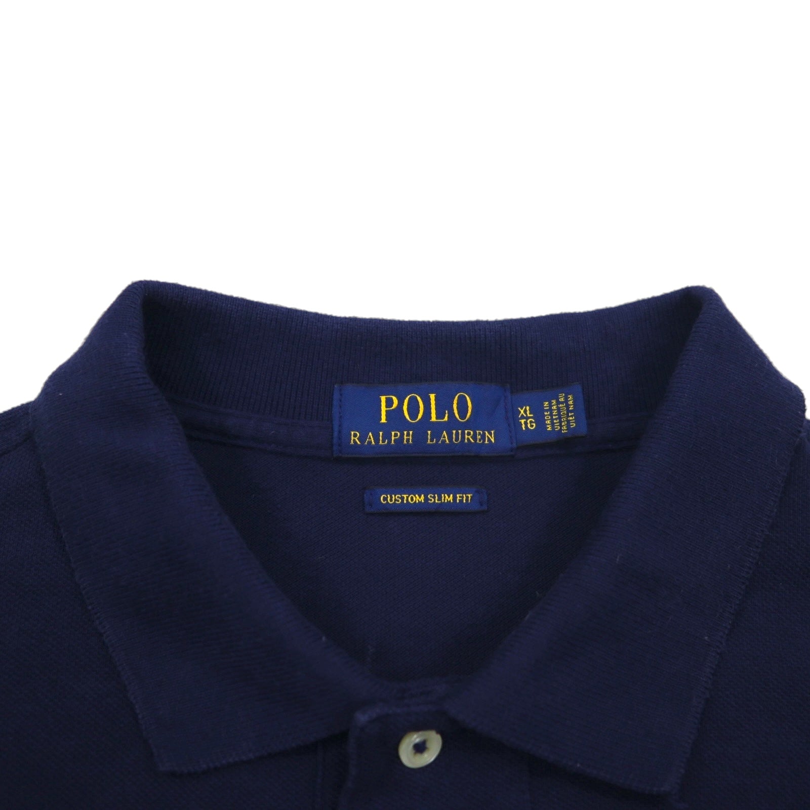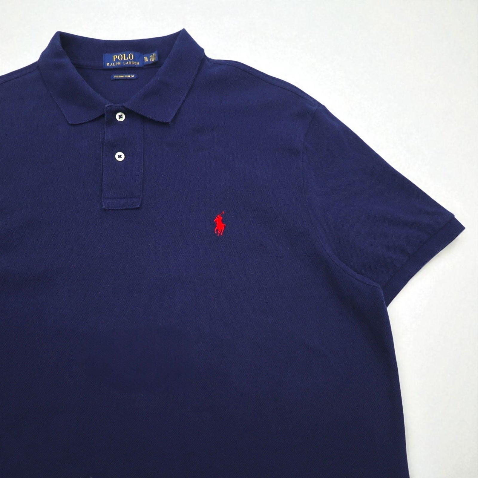 POLO RALPH LAUREN ポロシャツ XL ネイビー コットン 鹿の子 CUSTOM SLIM FIT スモールポニー刺繍
