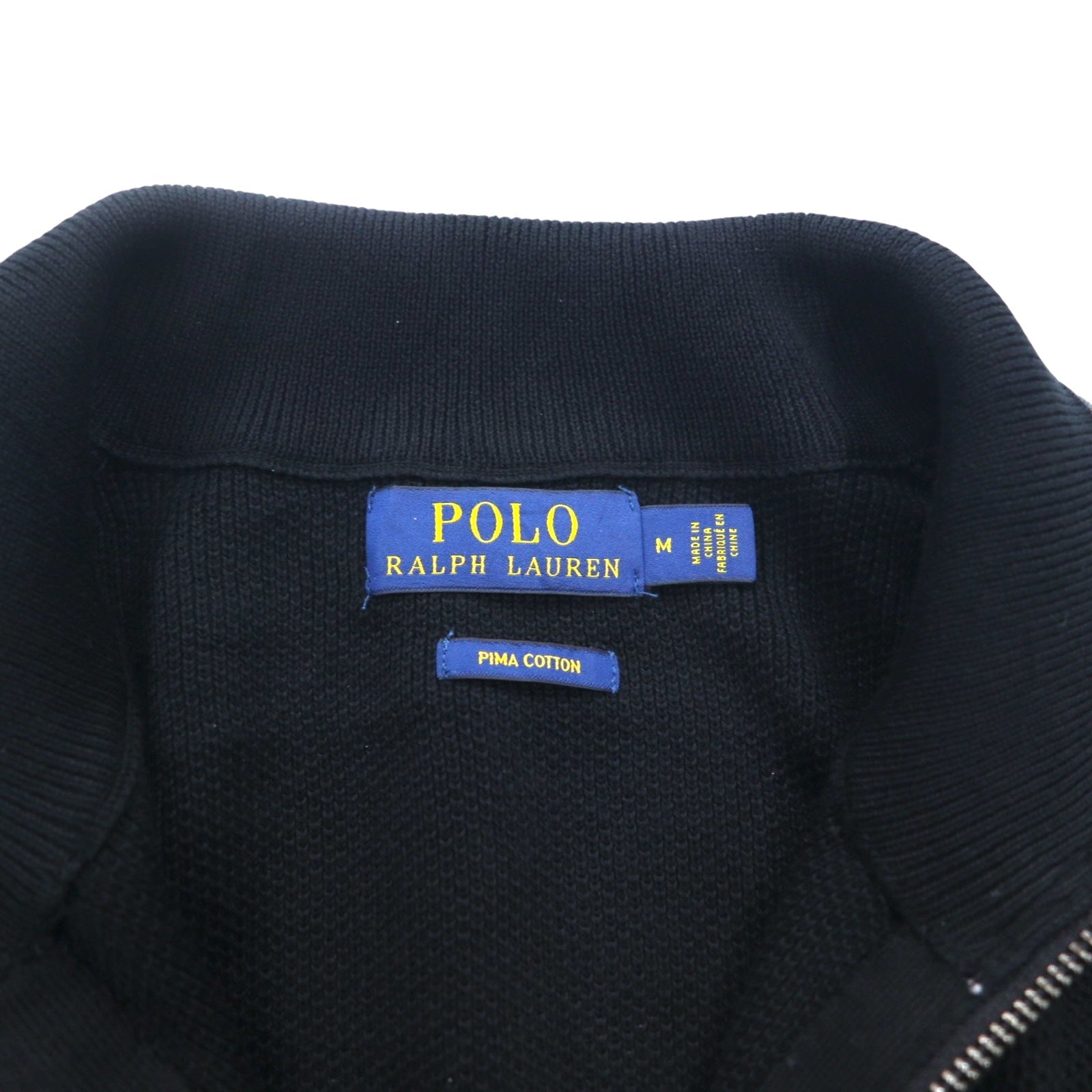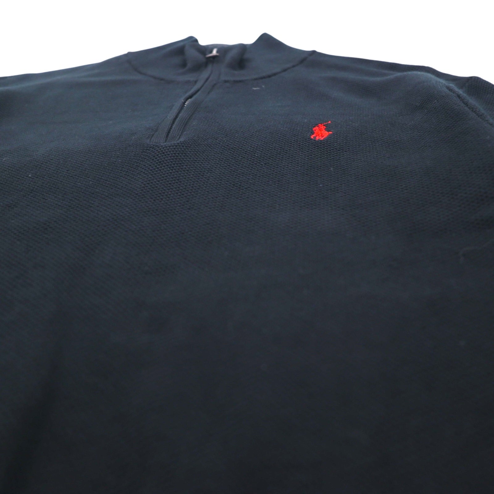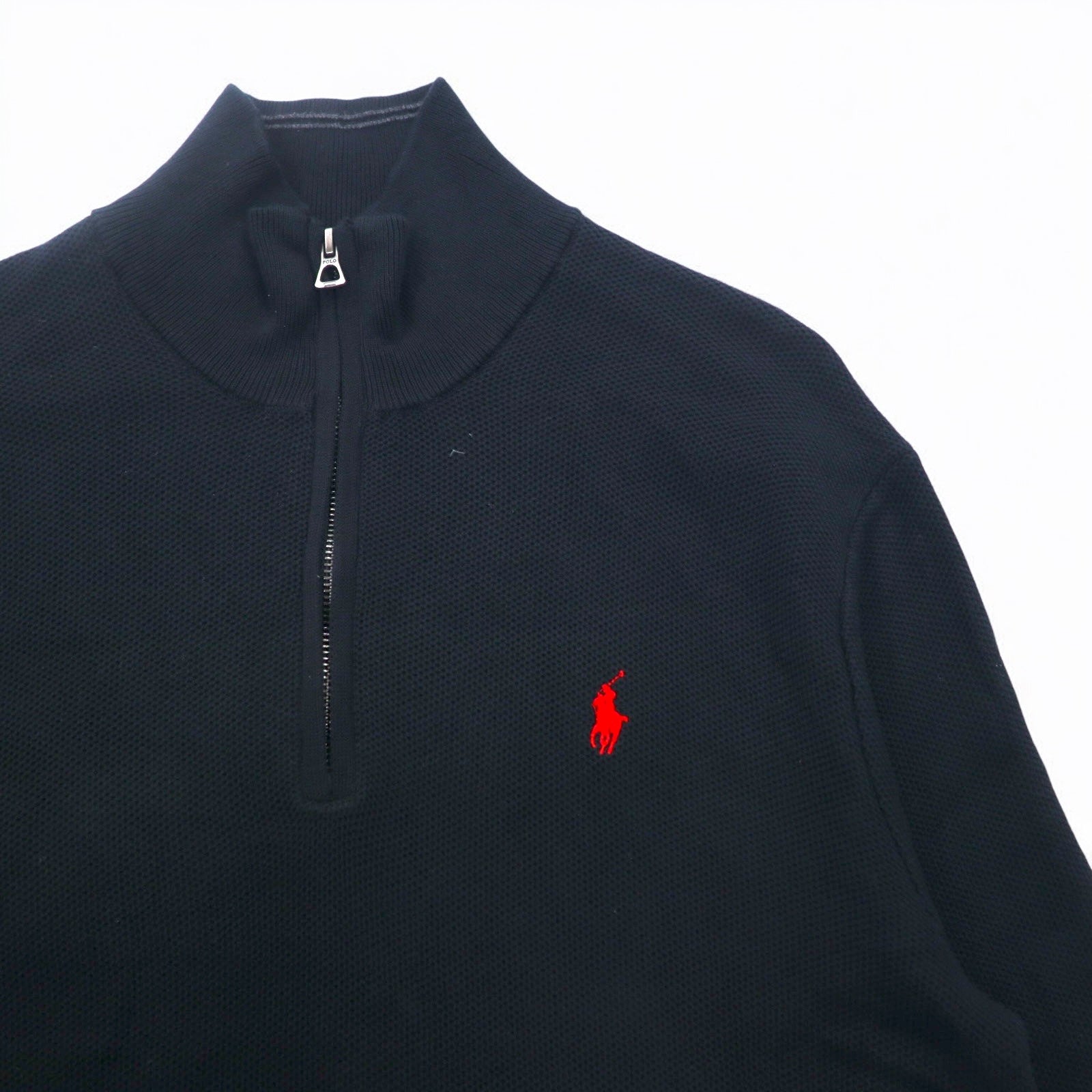 POLO RALPH LAUREN メッシュニット ピマコットン ハーフジップ セーター M ブラック スモールポニー刺繍