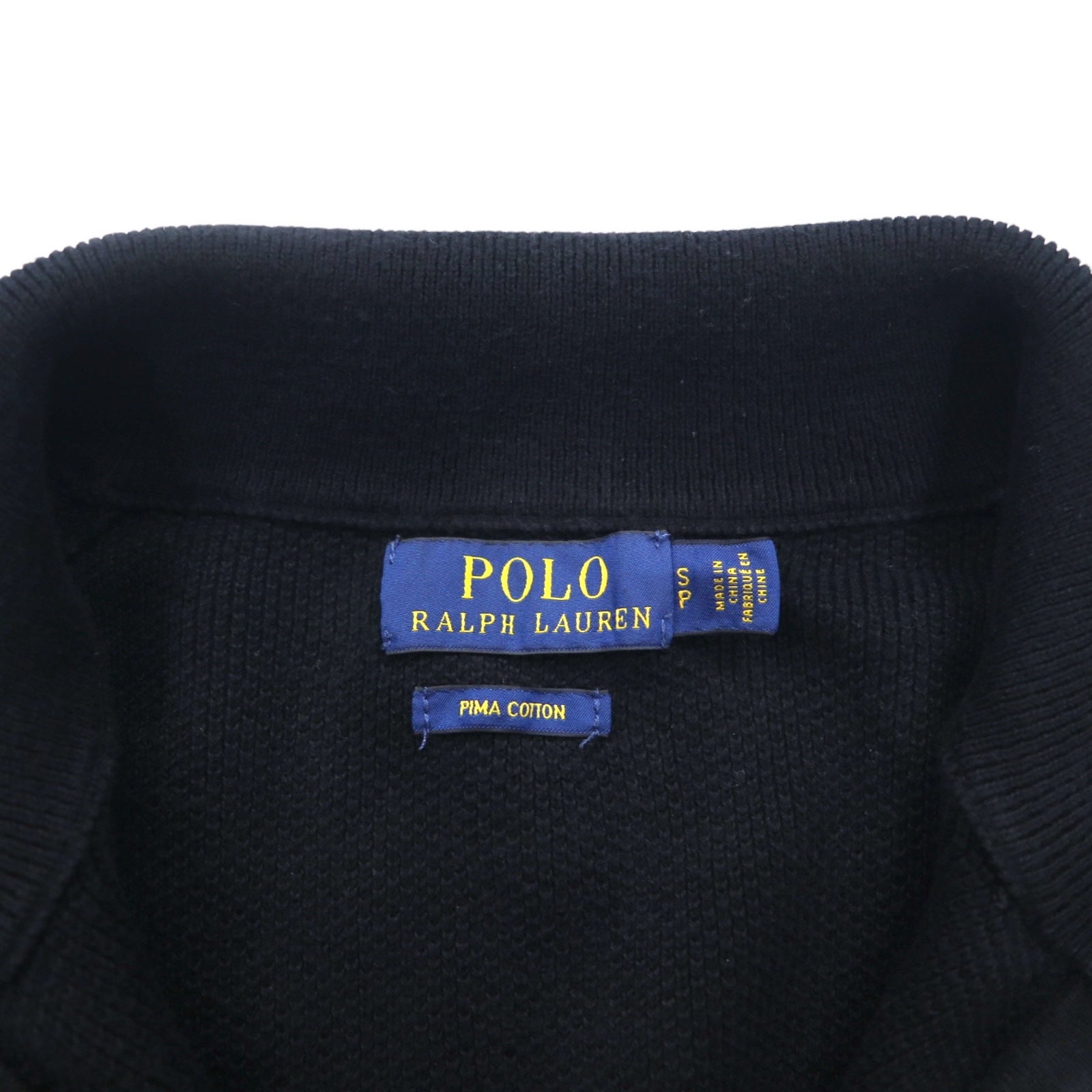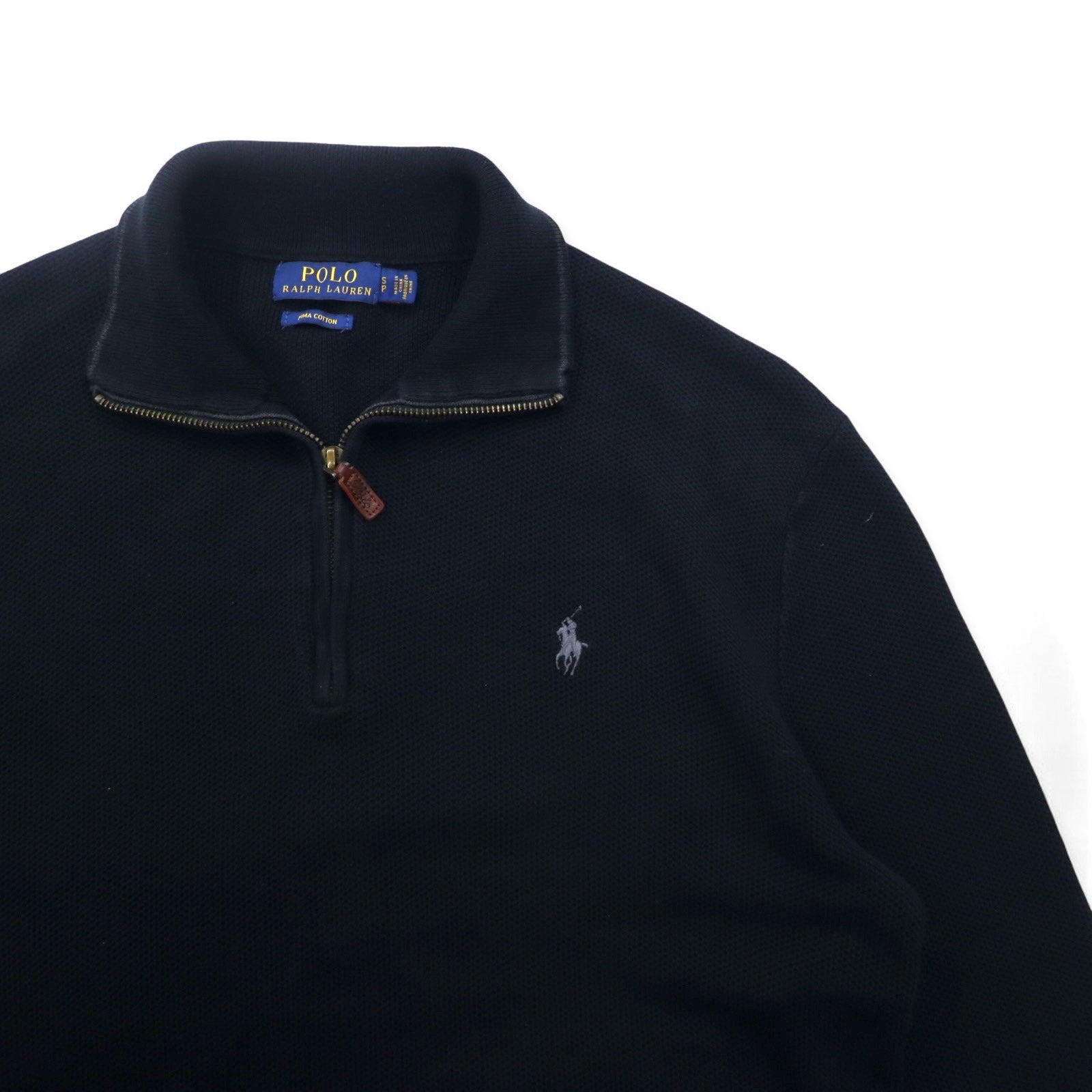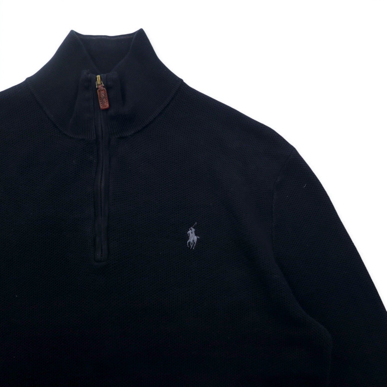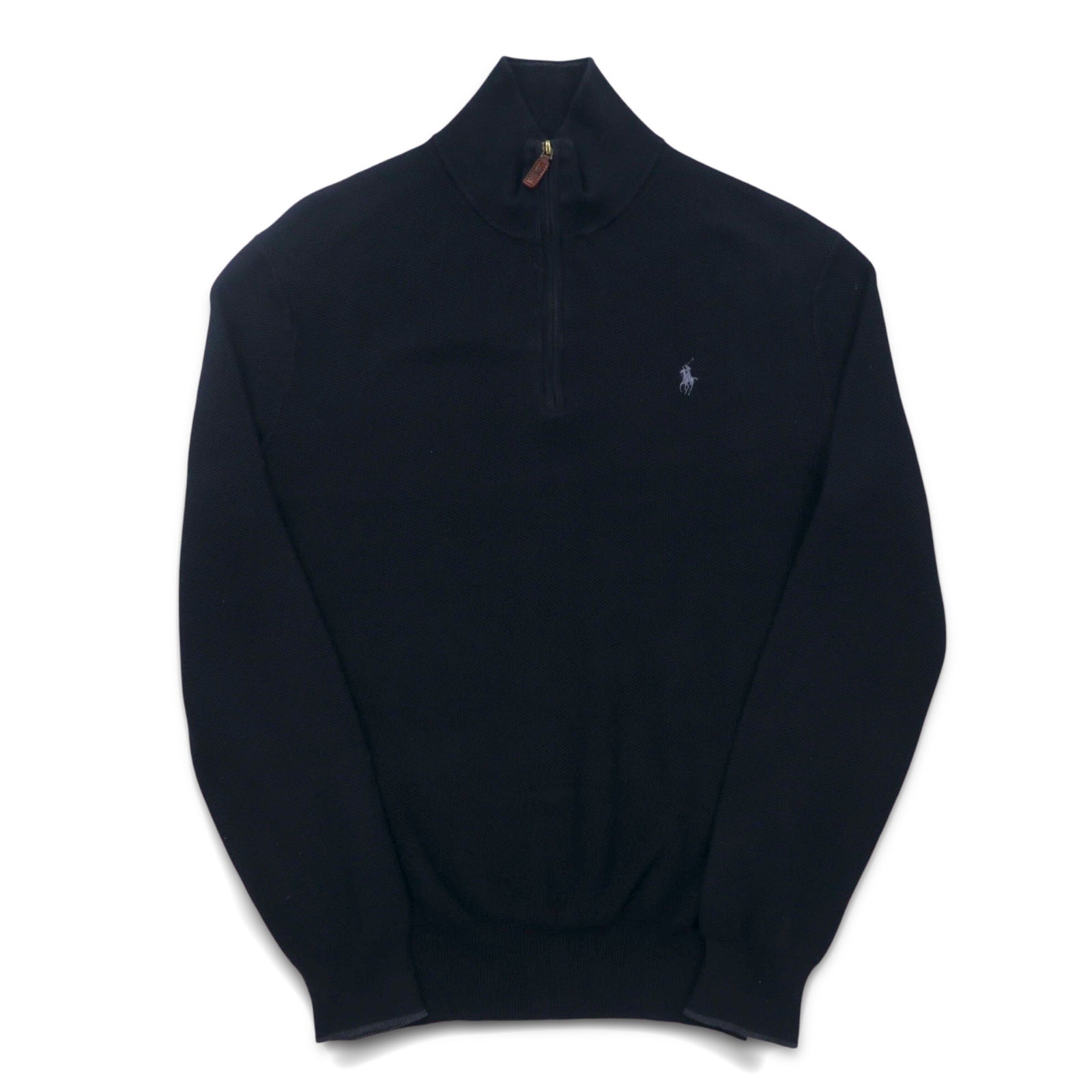 POLO RALPH LAUREN メッシュニット ピマコットン ハーフジップ セーター S ブラック スモールポニー刺繍