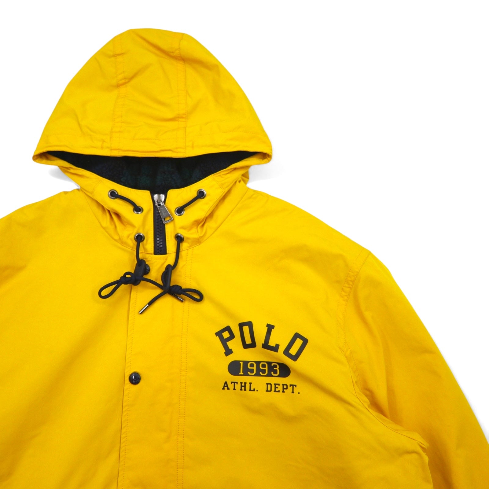 POLO RALPH LAUREN モッズコート ベンチコート XL イエロー ポリエステル ボアライナー 中綿 ドローコード カレッジ ロゴプリント バックロゴ