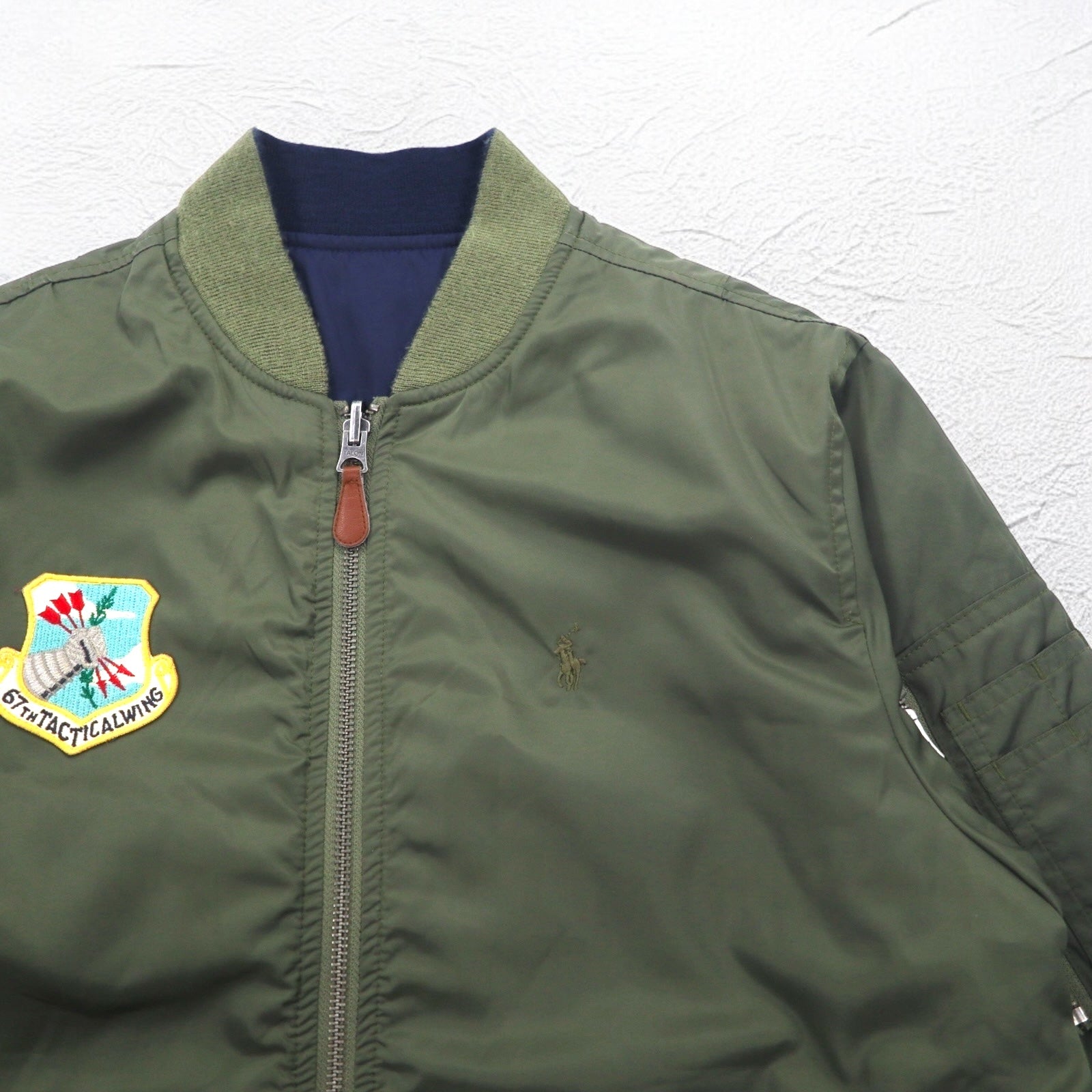 POLO RALPH LAUREN リバーシブル MA-1 フライトジャケット L カーキ ネイビー ポリエステル ワッペン スモールポニー刺繍 TALONジップ