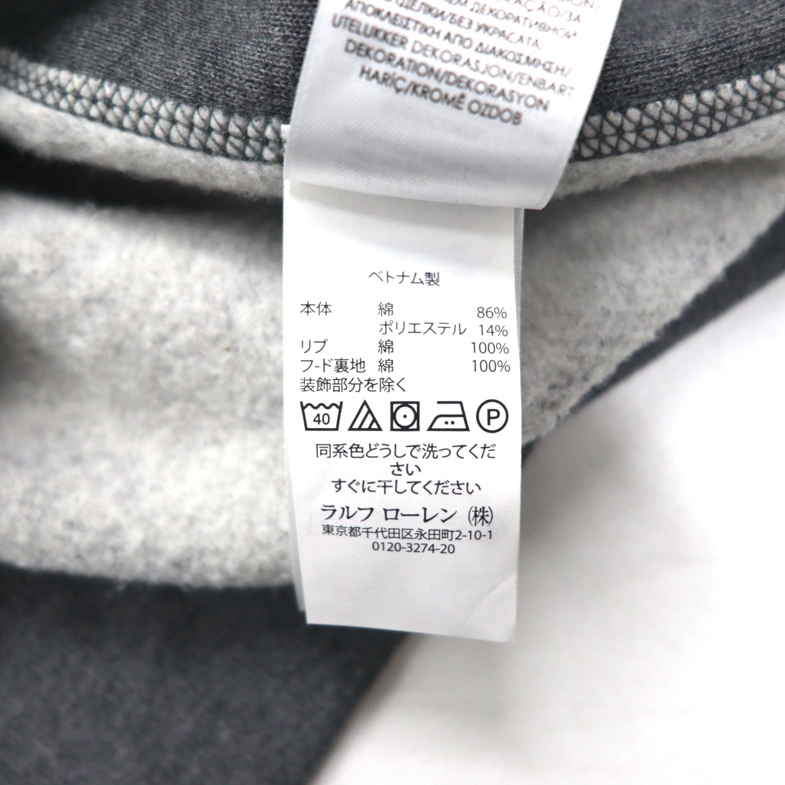 Polo Ralph Lauren リバースウィーブ フルジップパーカー L グレー コットン スモールポニー刺繍