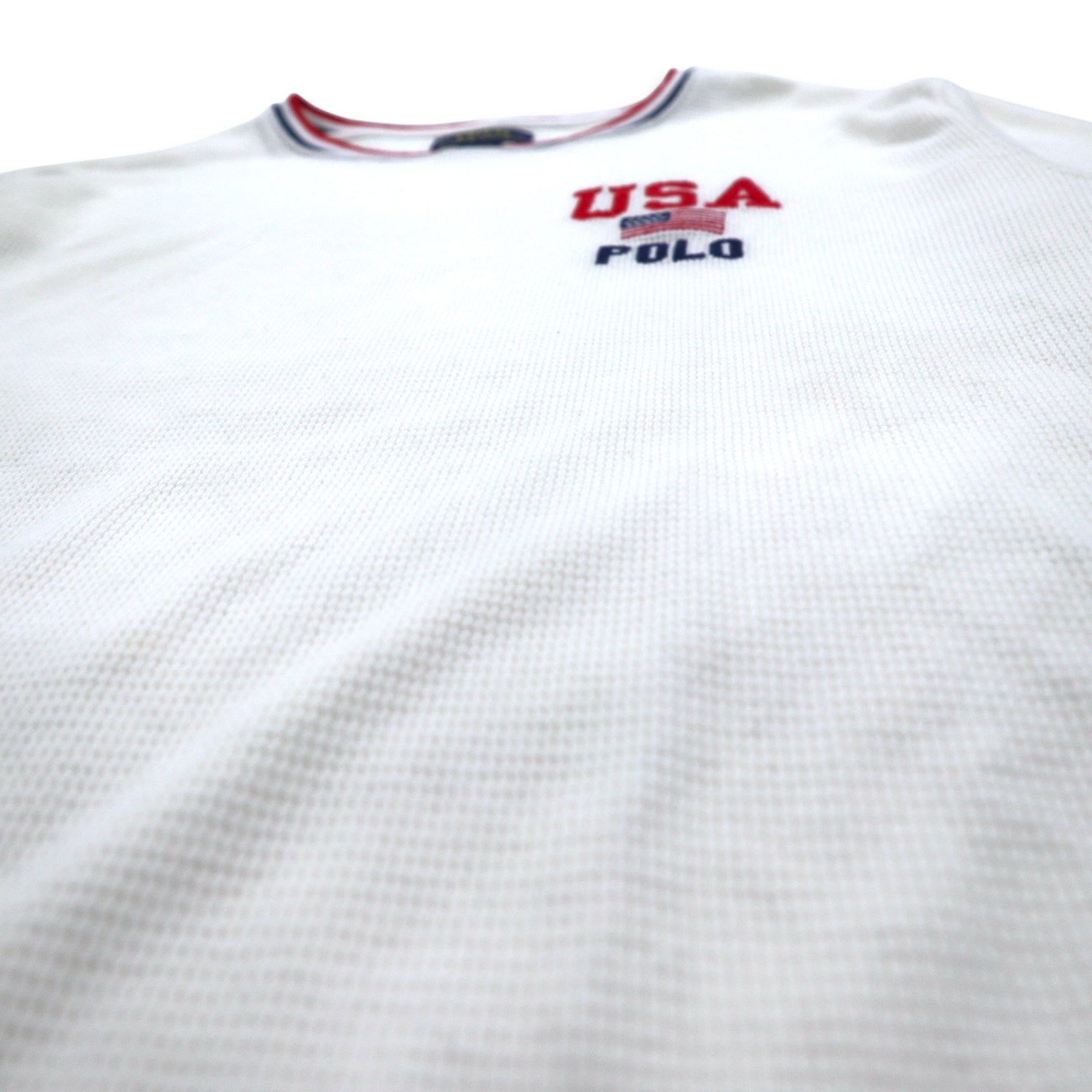POLO RALPH LAUREN リブライン サーマル ロングスリーブTシャツ ロンT L ホワイト トリコロール USA POLO 星条旗