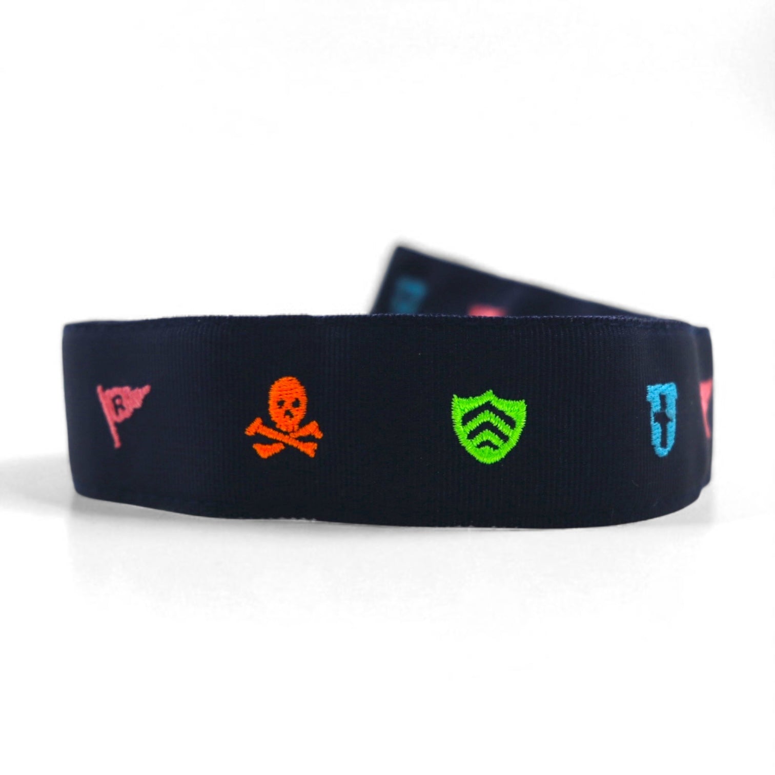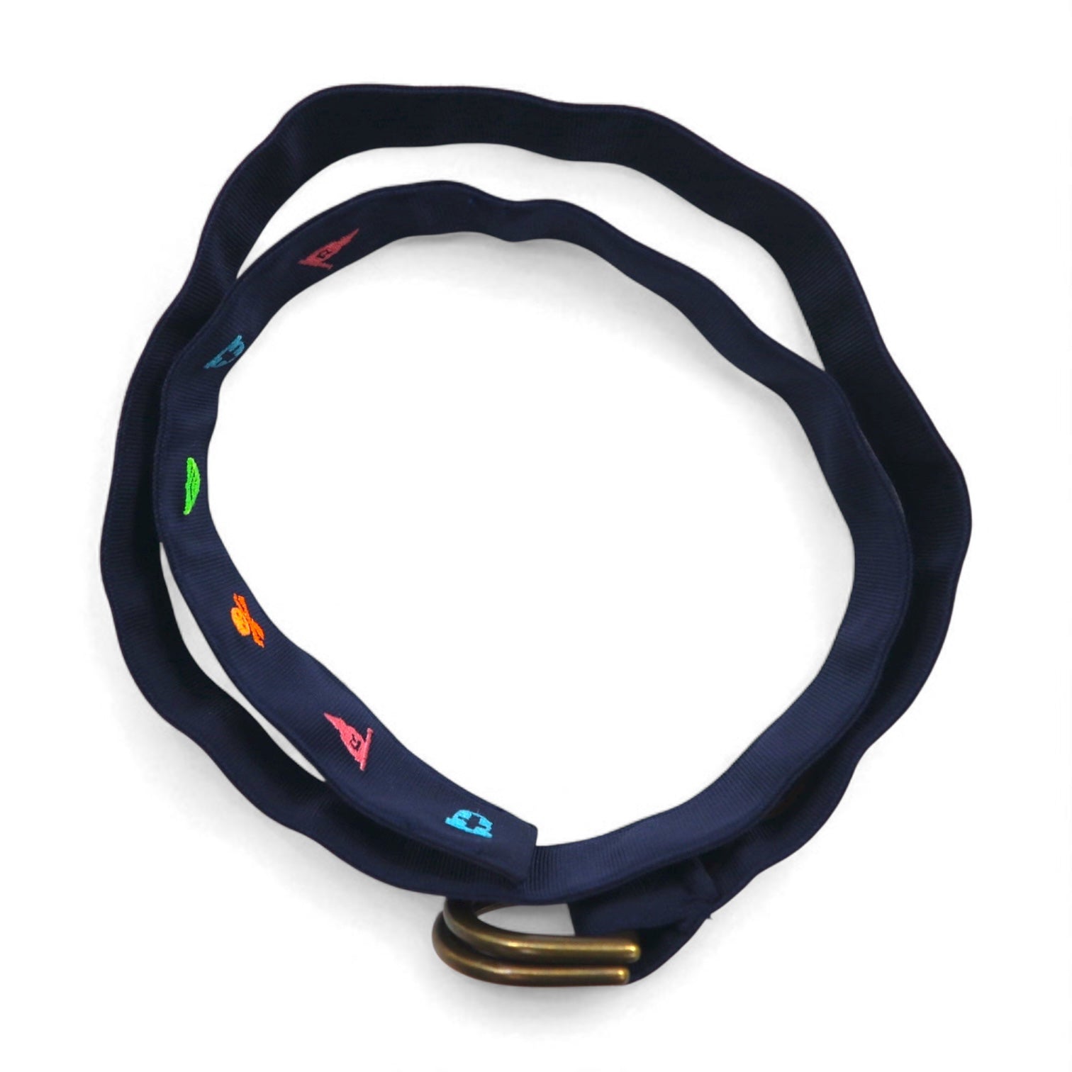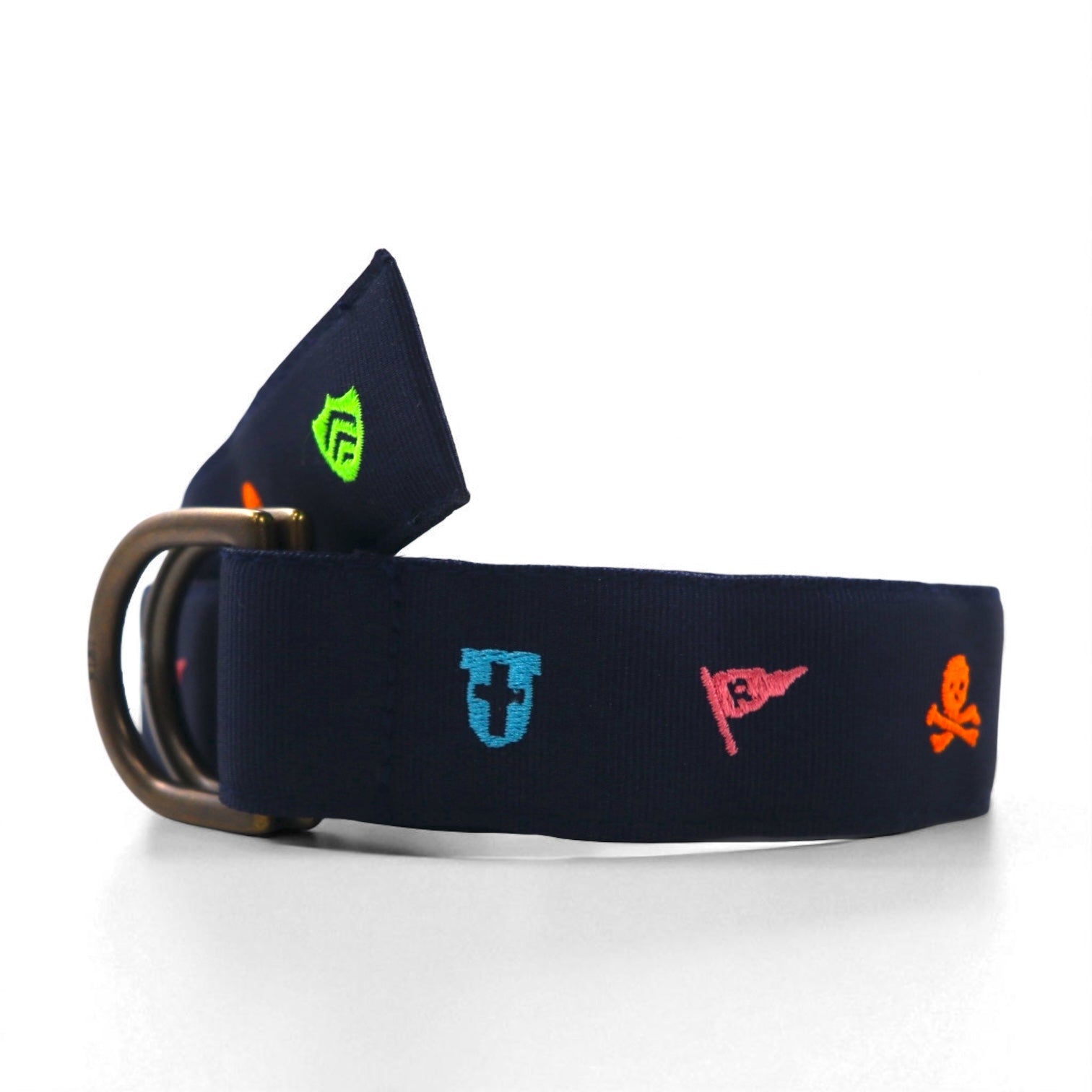 POLO RALPH LAUREN リングベルト L ネイビー ナイロン スカル ロゴ エンブレム 刺繍