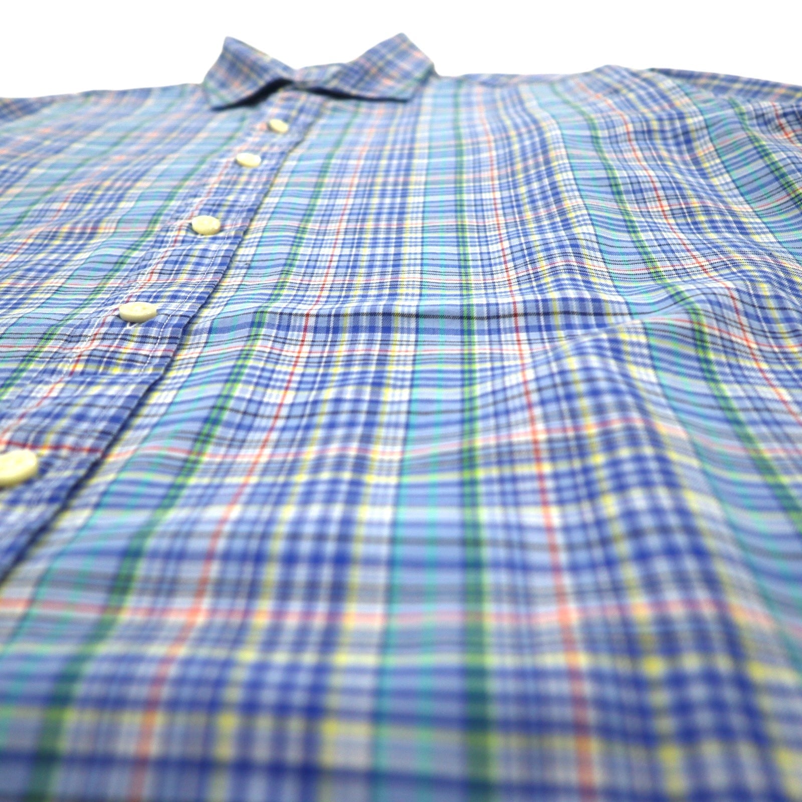 POLO RALPH LAUREN ワイドカラー ドレスシャツ L ブルー チェック コットン