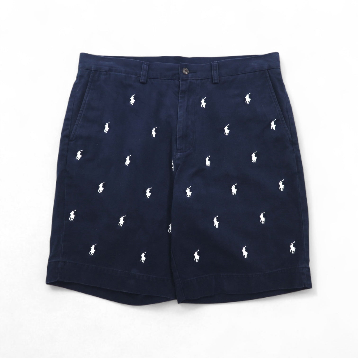 POLO RALPH LAUREN クラシックフィット ショート チノパンツ ハーフパンツ L ネイビー オールオーバーポニー 刺繍