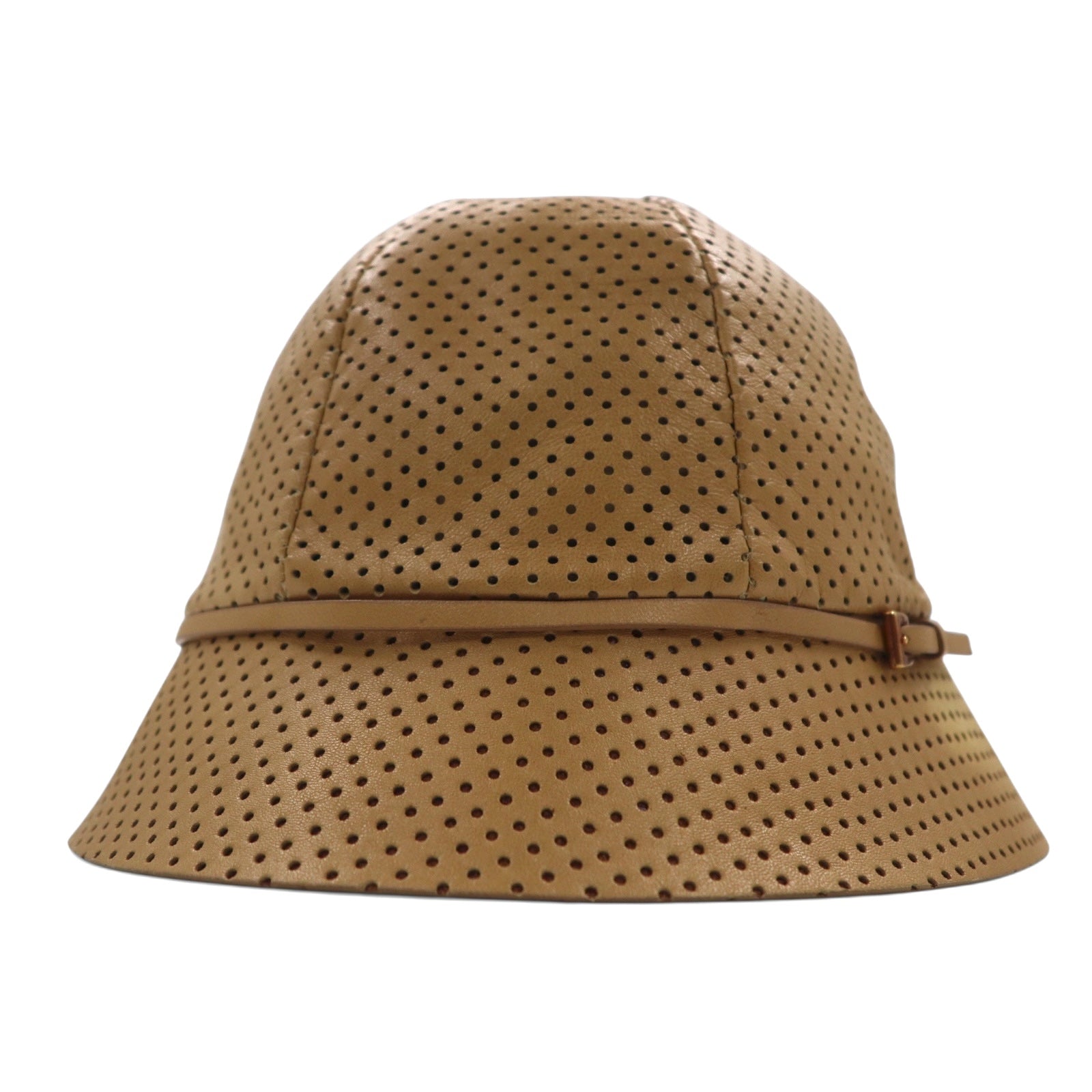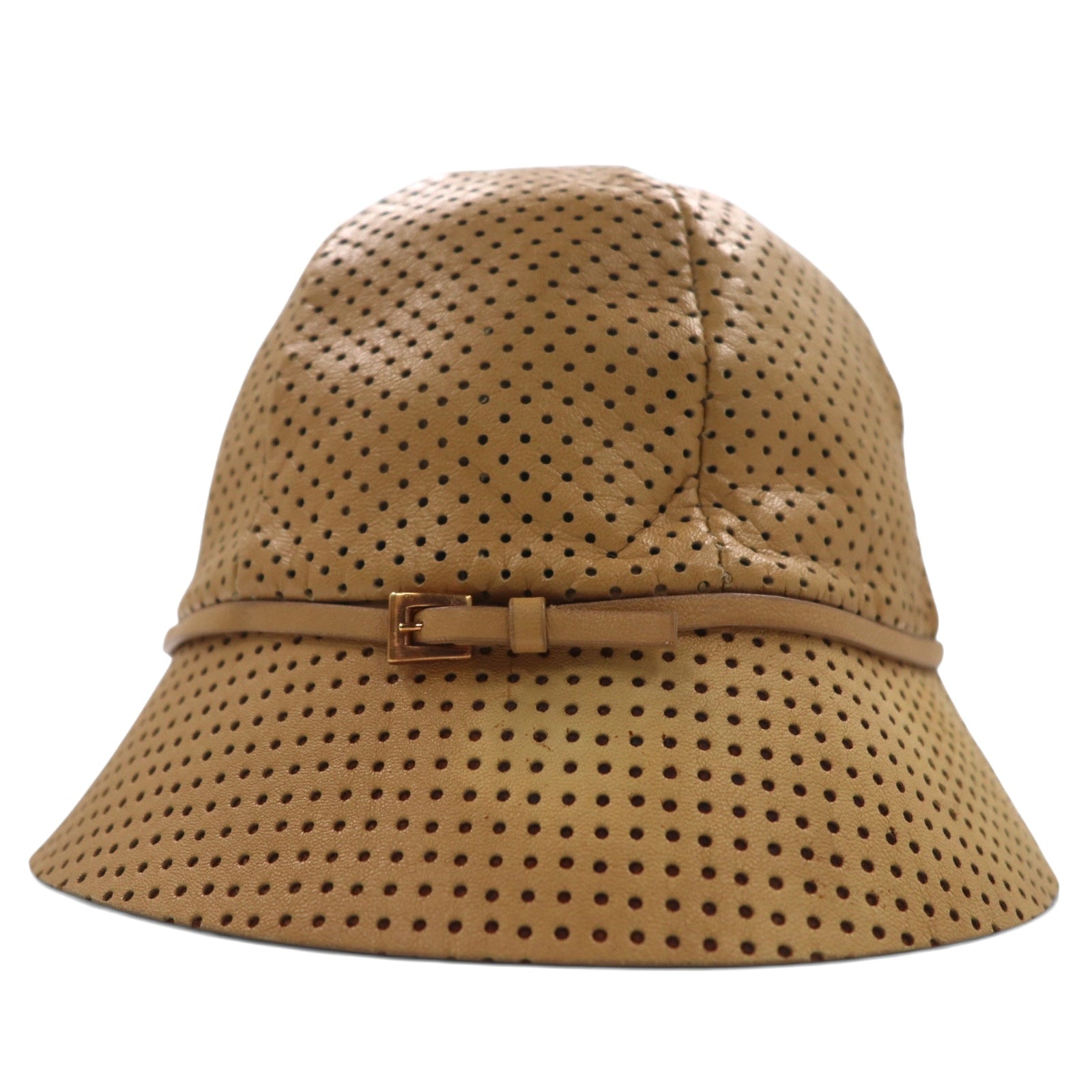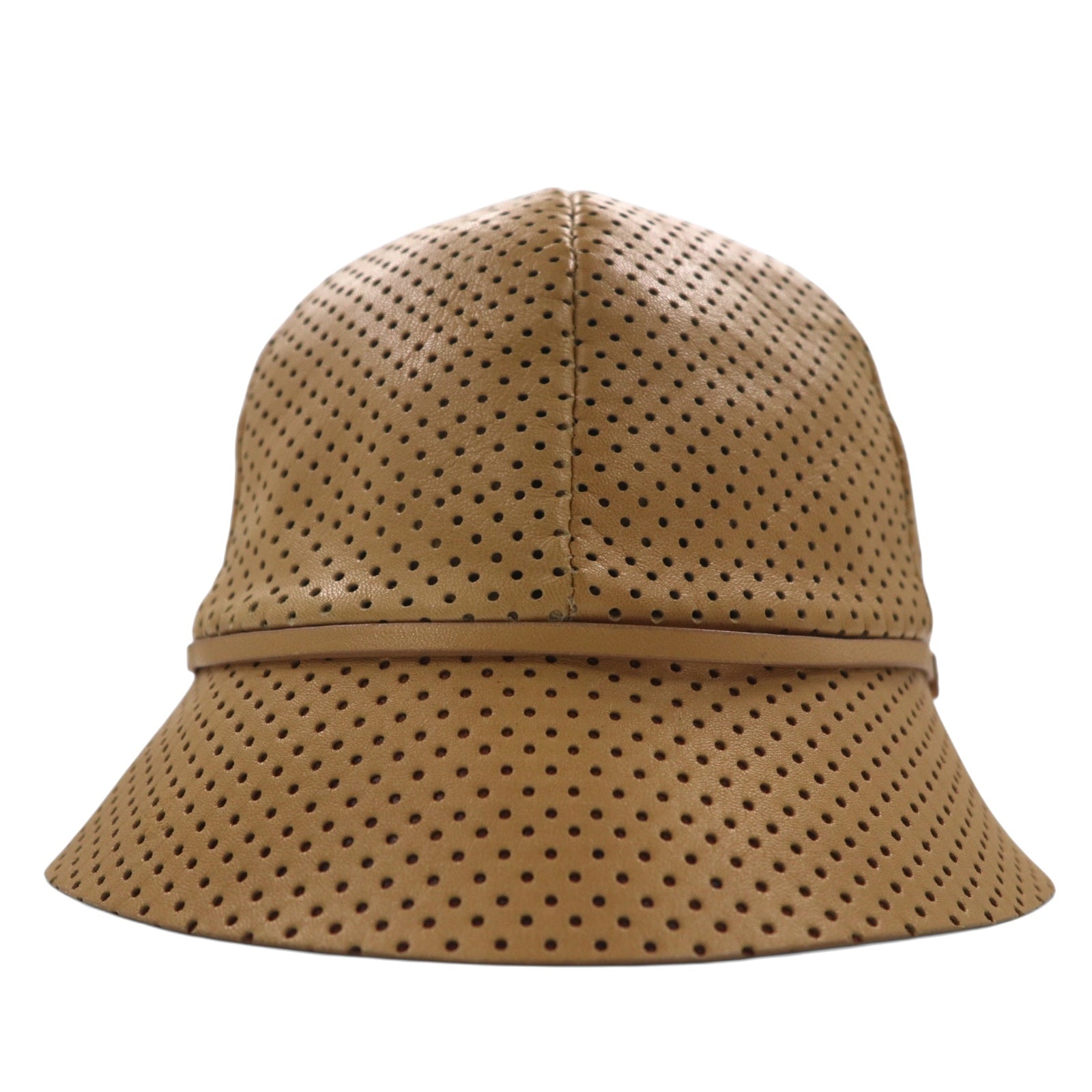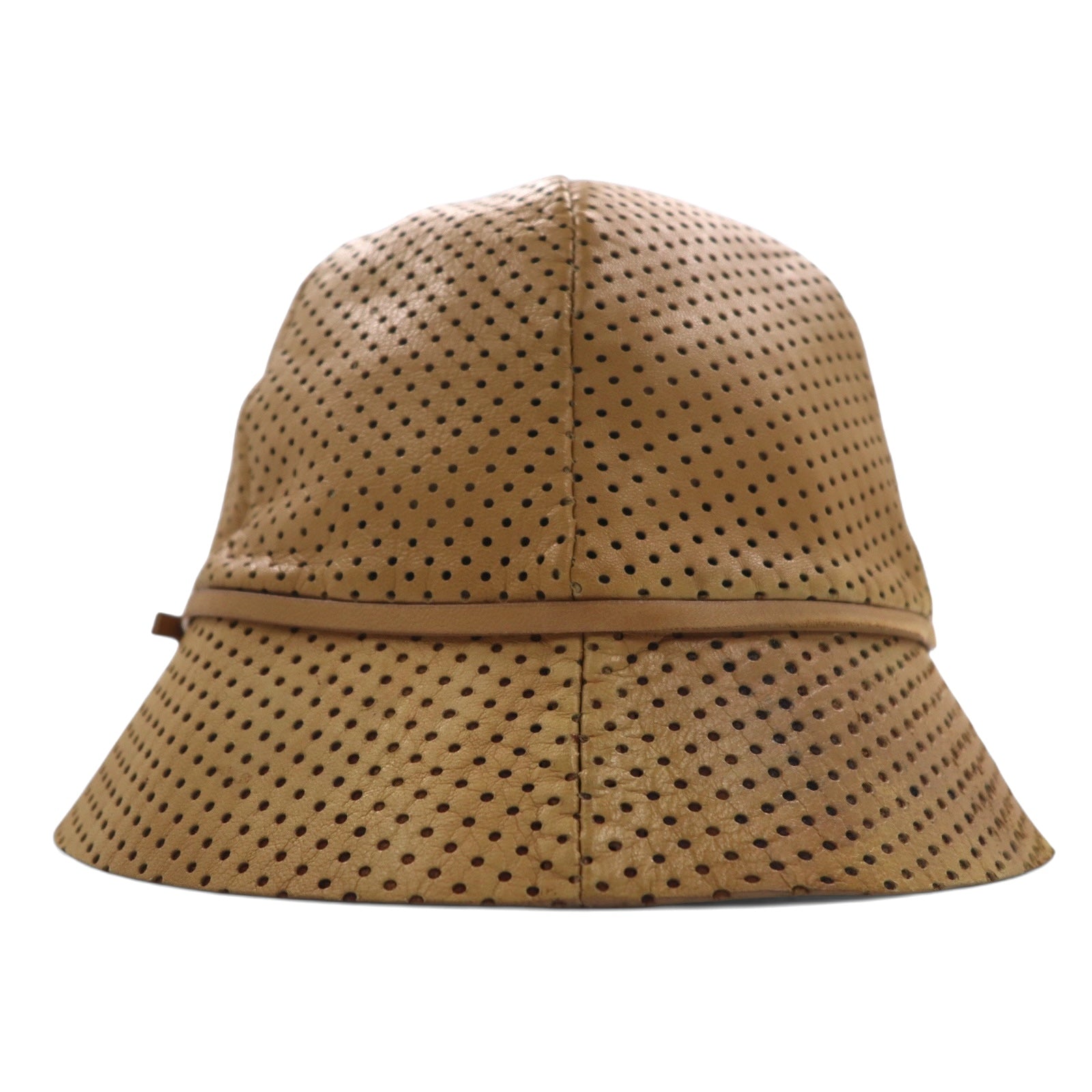 PRADA イタリア製 ラムスキン パンチングレザー バケットハット M ベージュ 羊革