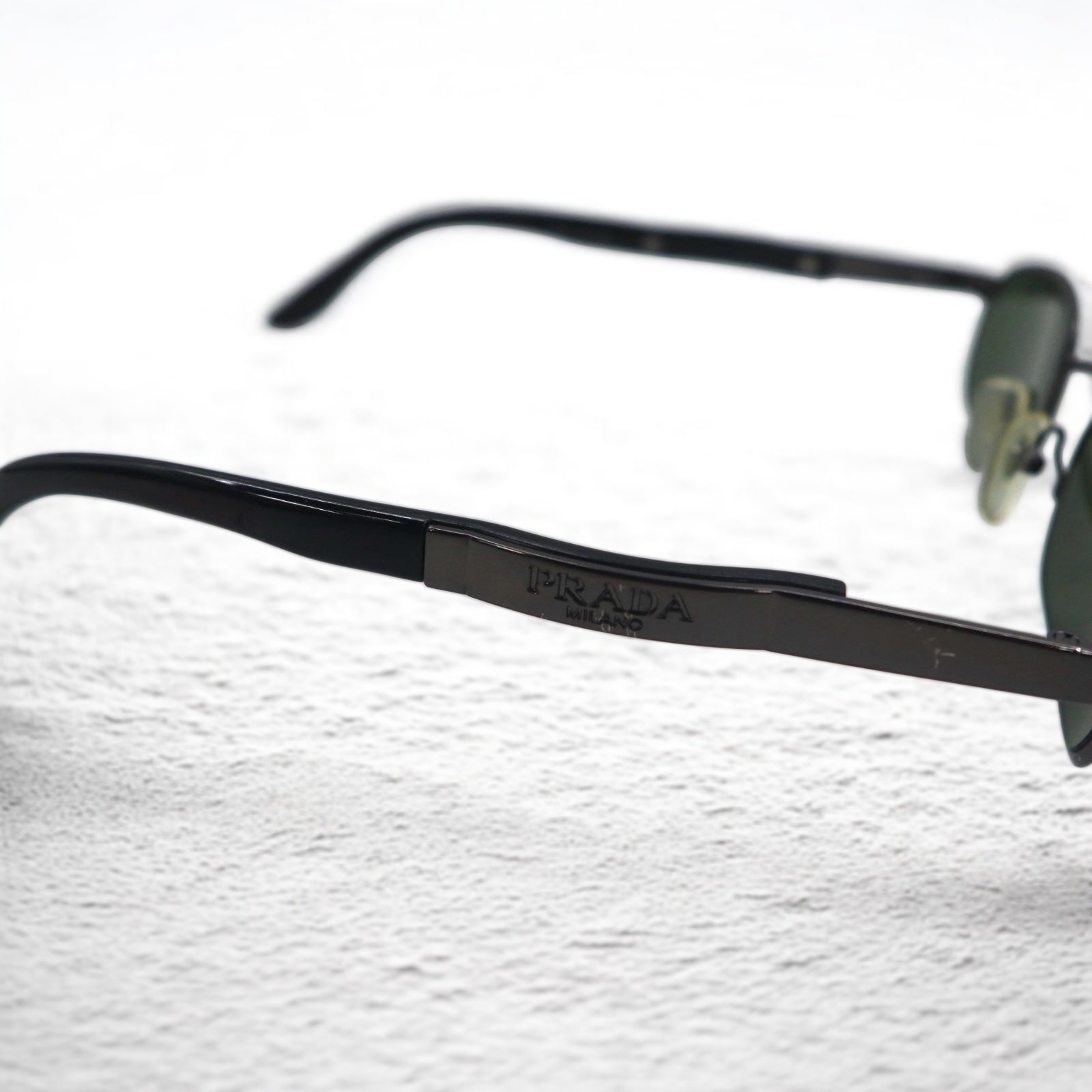 PRADA オーバル ミニマル フレーム サングラス ブラック メタル モード P302 イタリア製